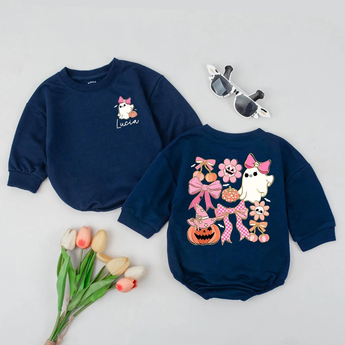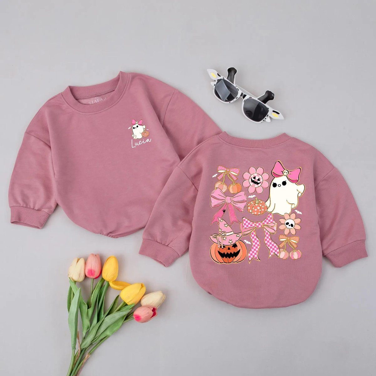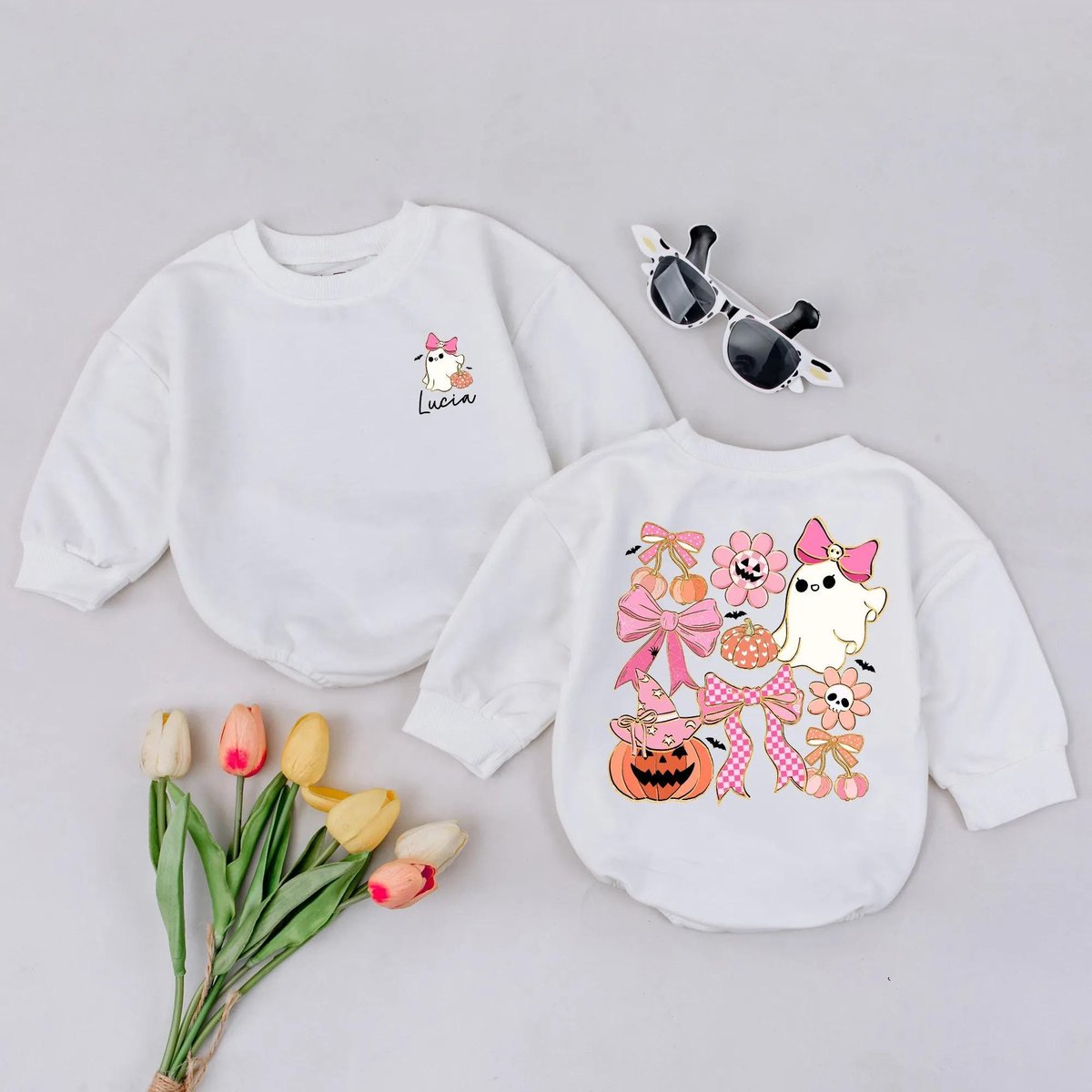 Personalized Pastel Halloween Baby Bubble Romper Cute Ghost Baby Girl Outfit Spooky Autumn Baby Clot 435