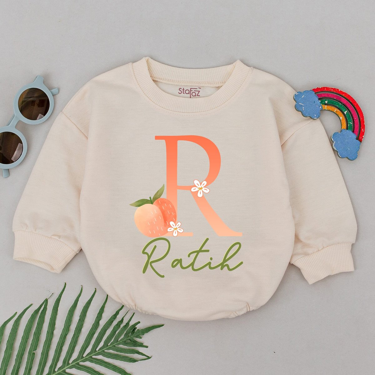 Personalized Peach Romper Little Peach Baby Romper Custom Name Letter First Birthday Girl Outfit Sma