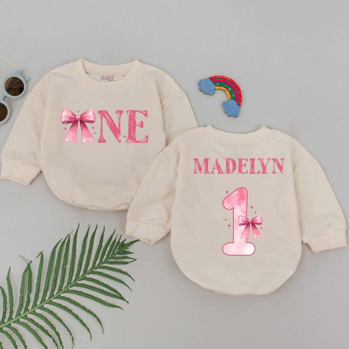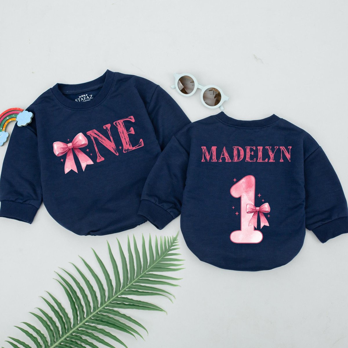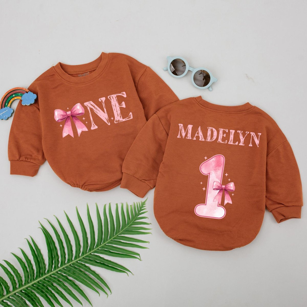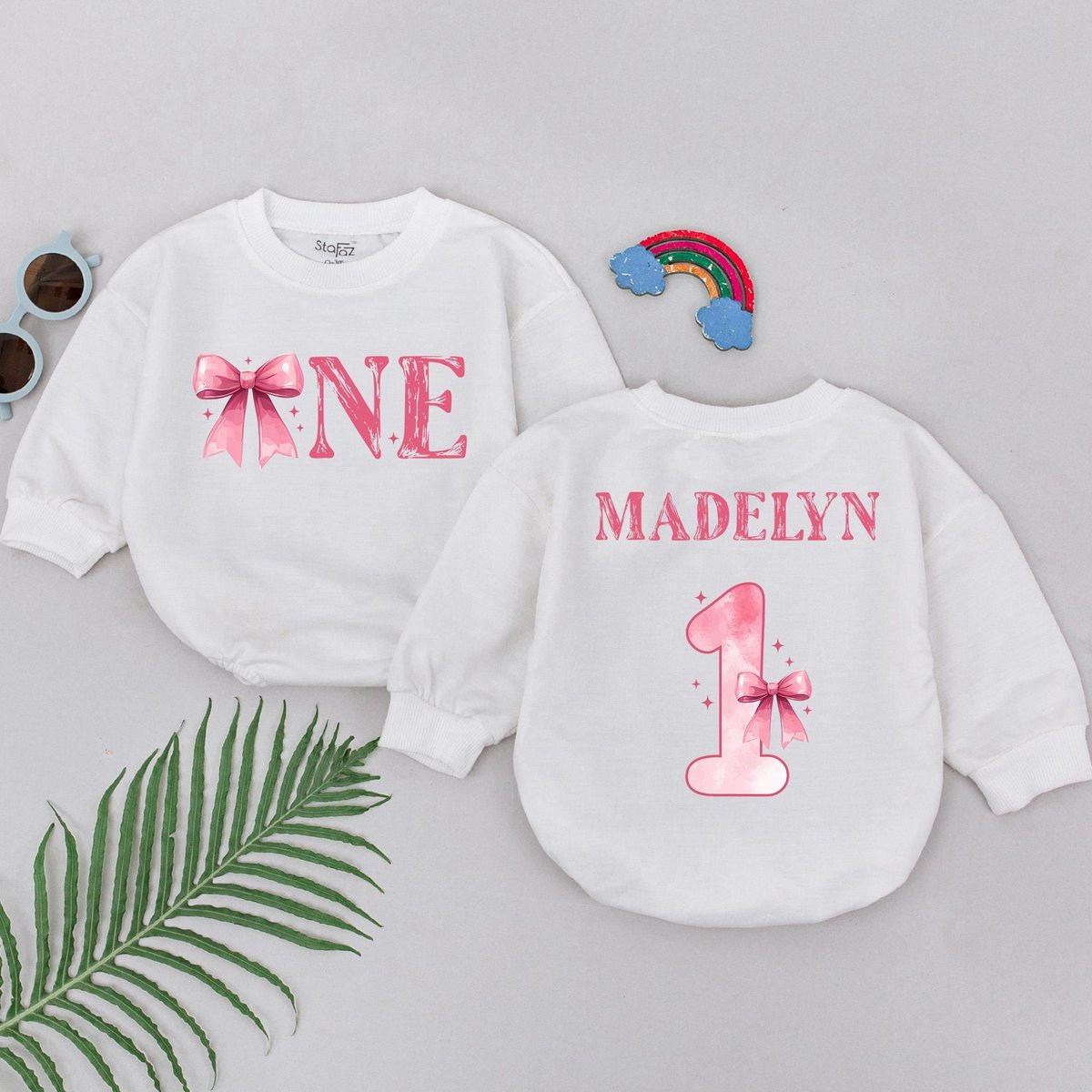 Personalized Pink Bow Birthday Romper First Birthday Girl Outfit 1st Birthday Theme Bodysuit One Yea