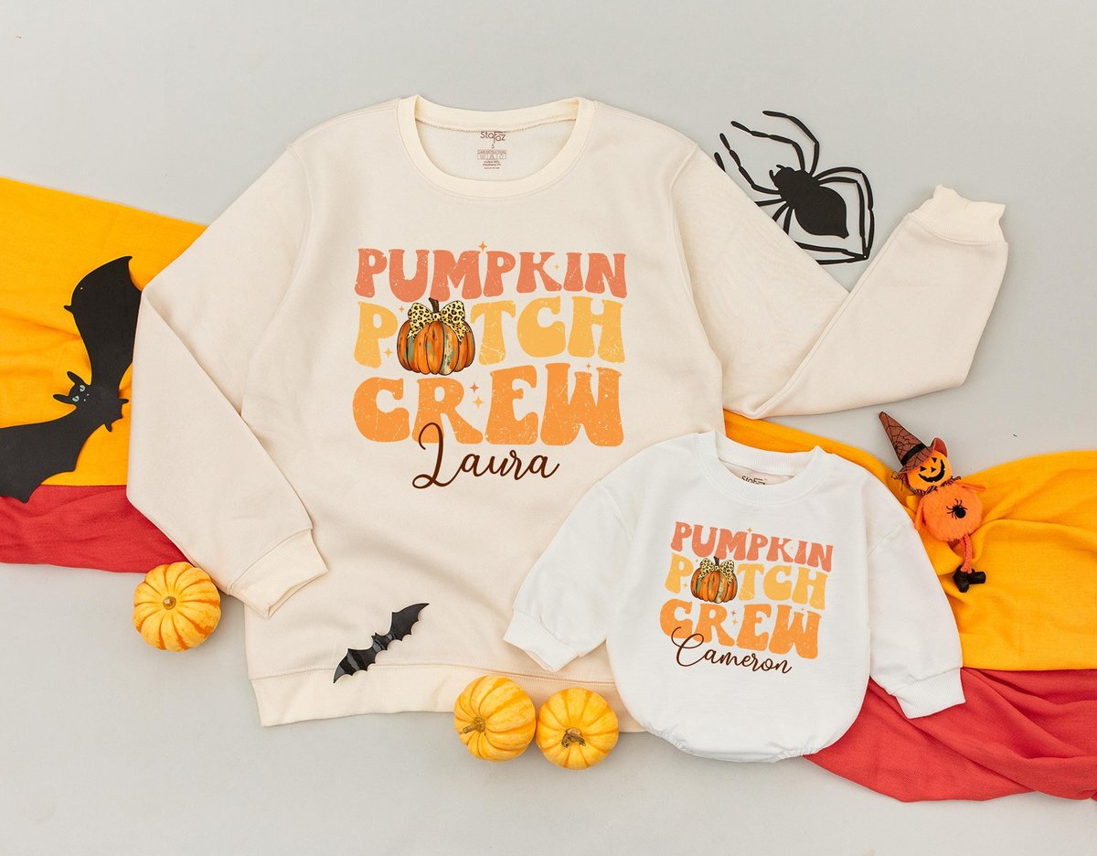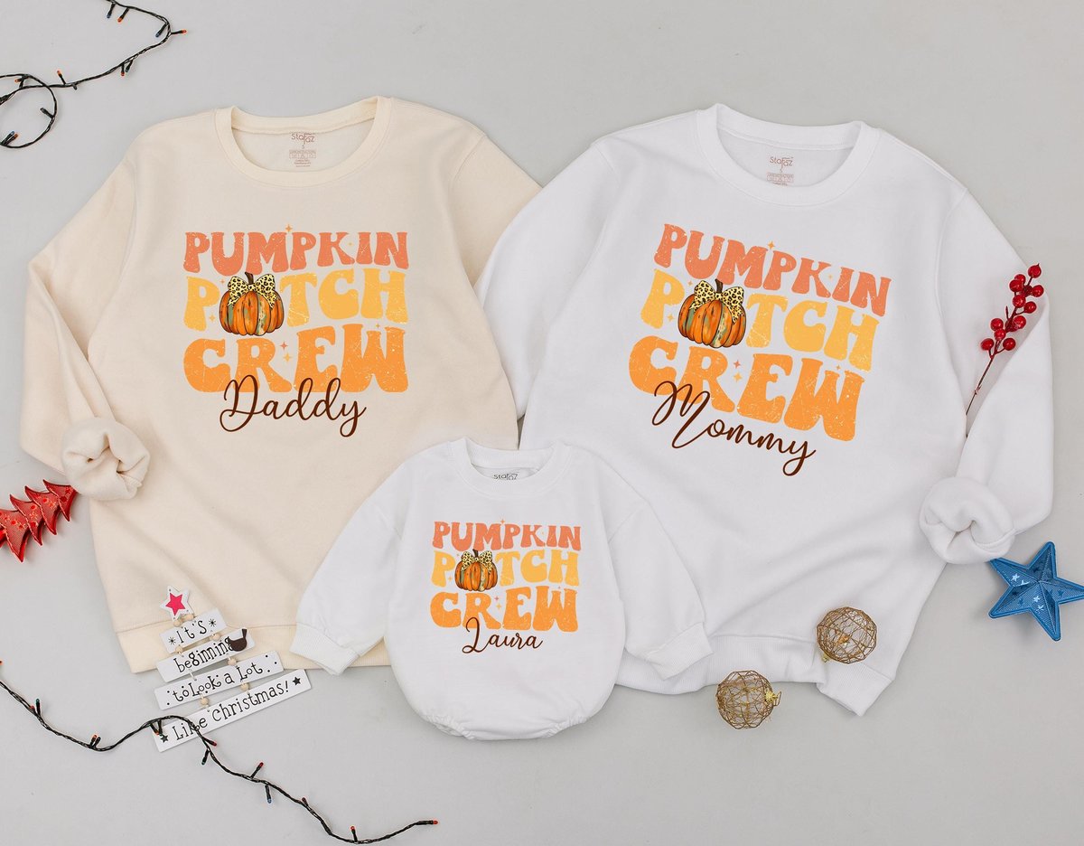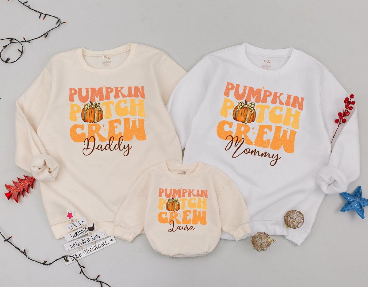 Personalized Pumpkin Patch Crew Sweatshirt Family Pumpkin Sweater Retro Fall Kid Toddler Matching Fa 437