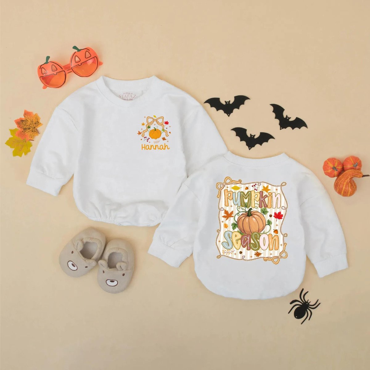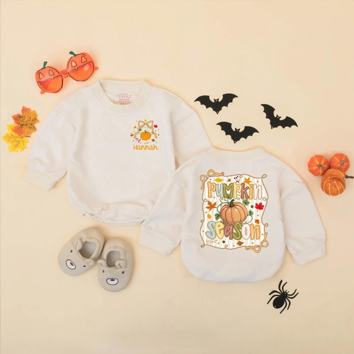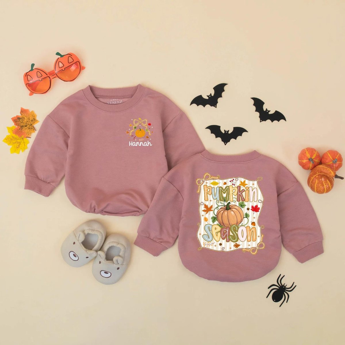 Personalized Pumpkin Season Bubble Romper Autumn Baby Girl Bodysuit Cute Fall Outfit Thanksgiving Ba 433