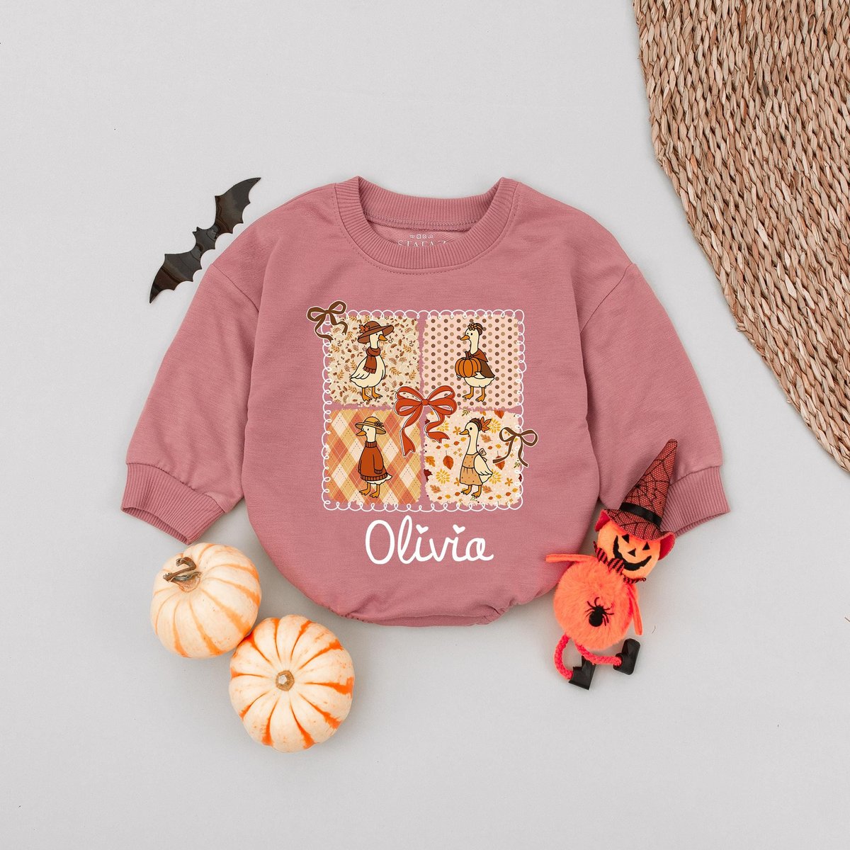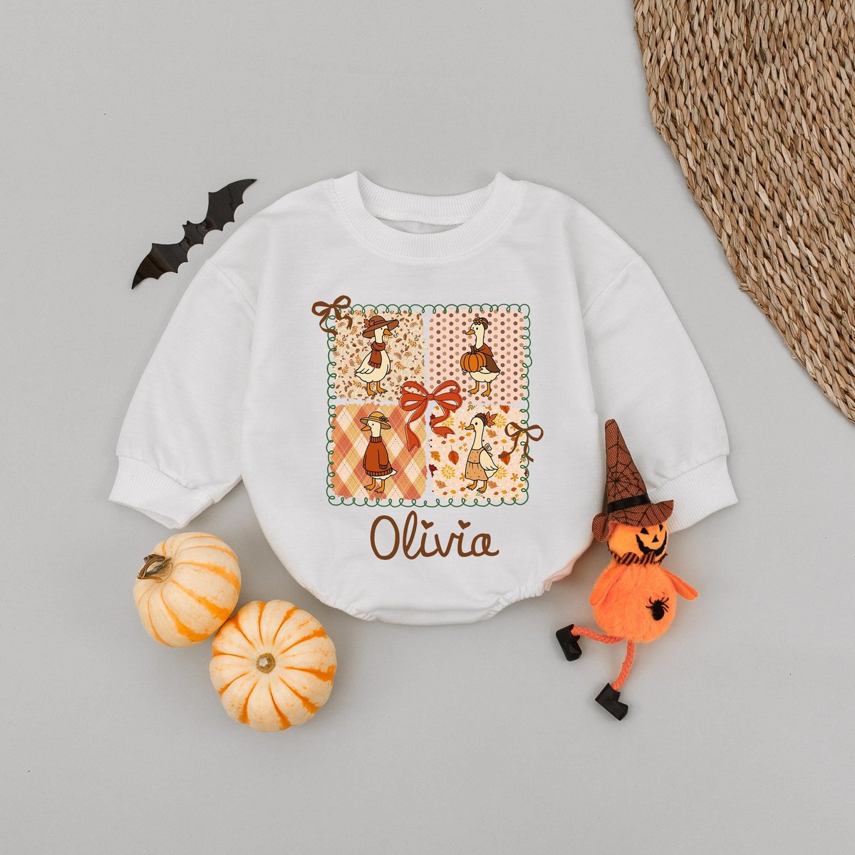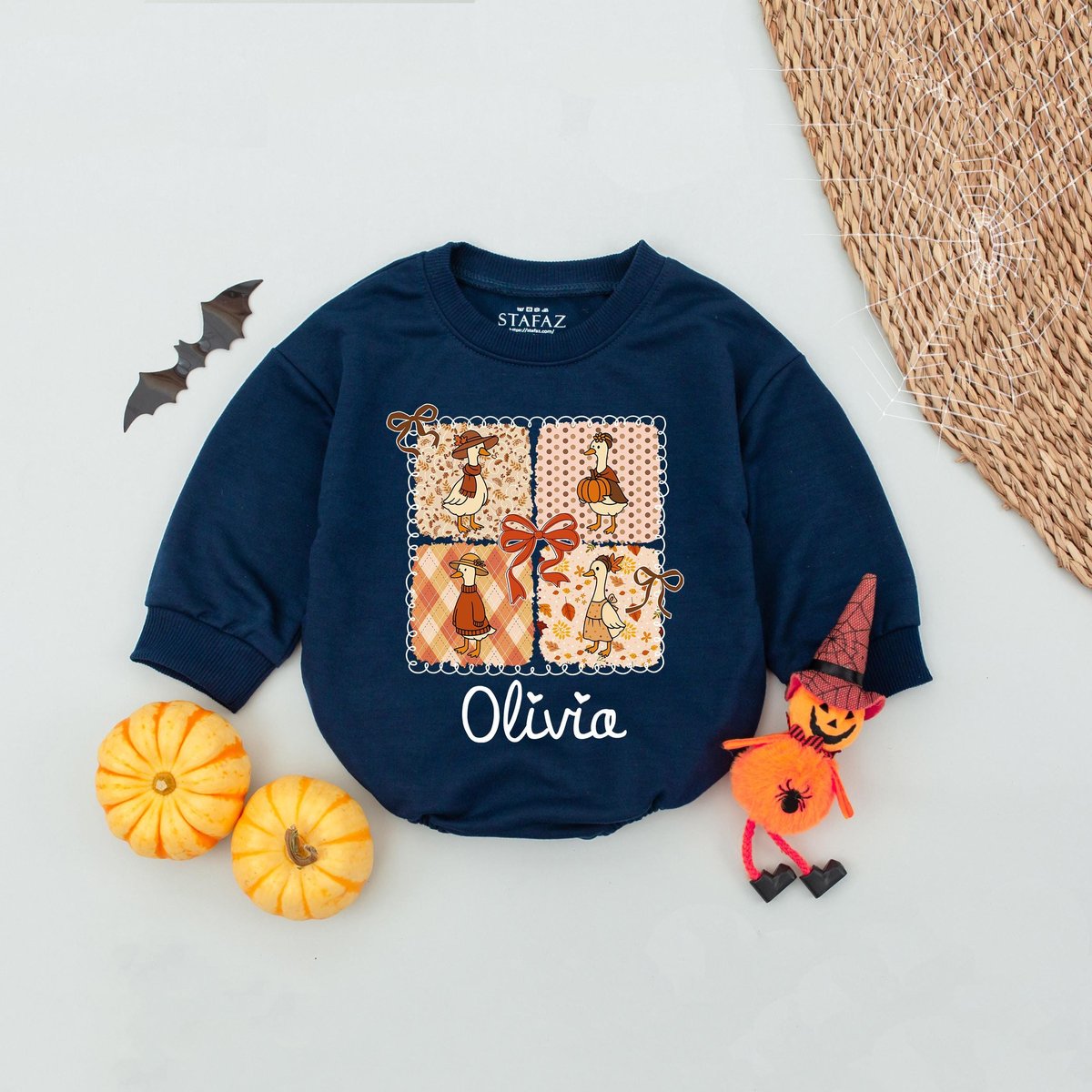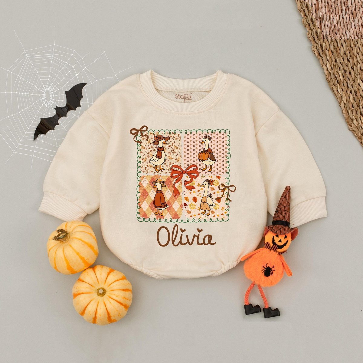 Personalized Pumpkin Spice Goose Baby Romper Fall Baby Clothes Spooky Goose Baby Bodysuit Halloween