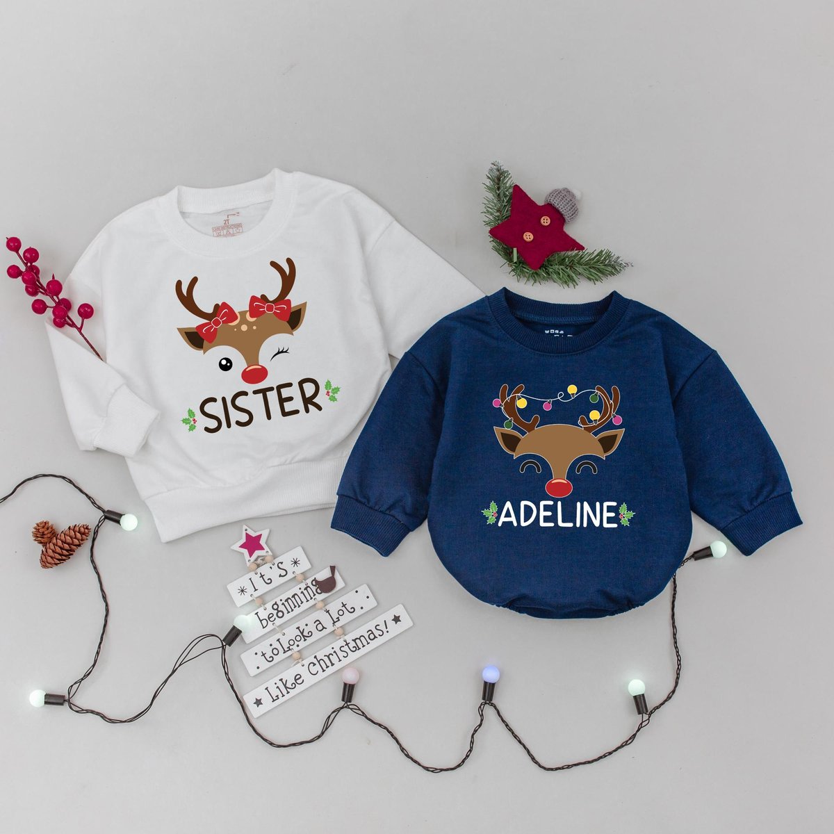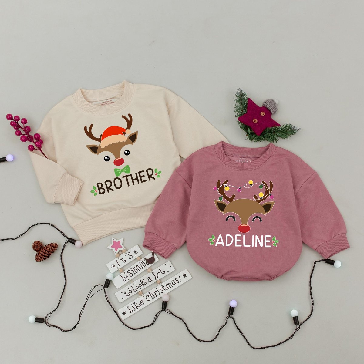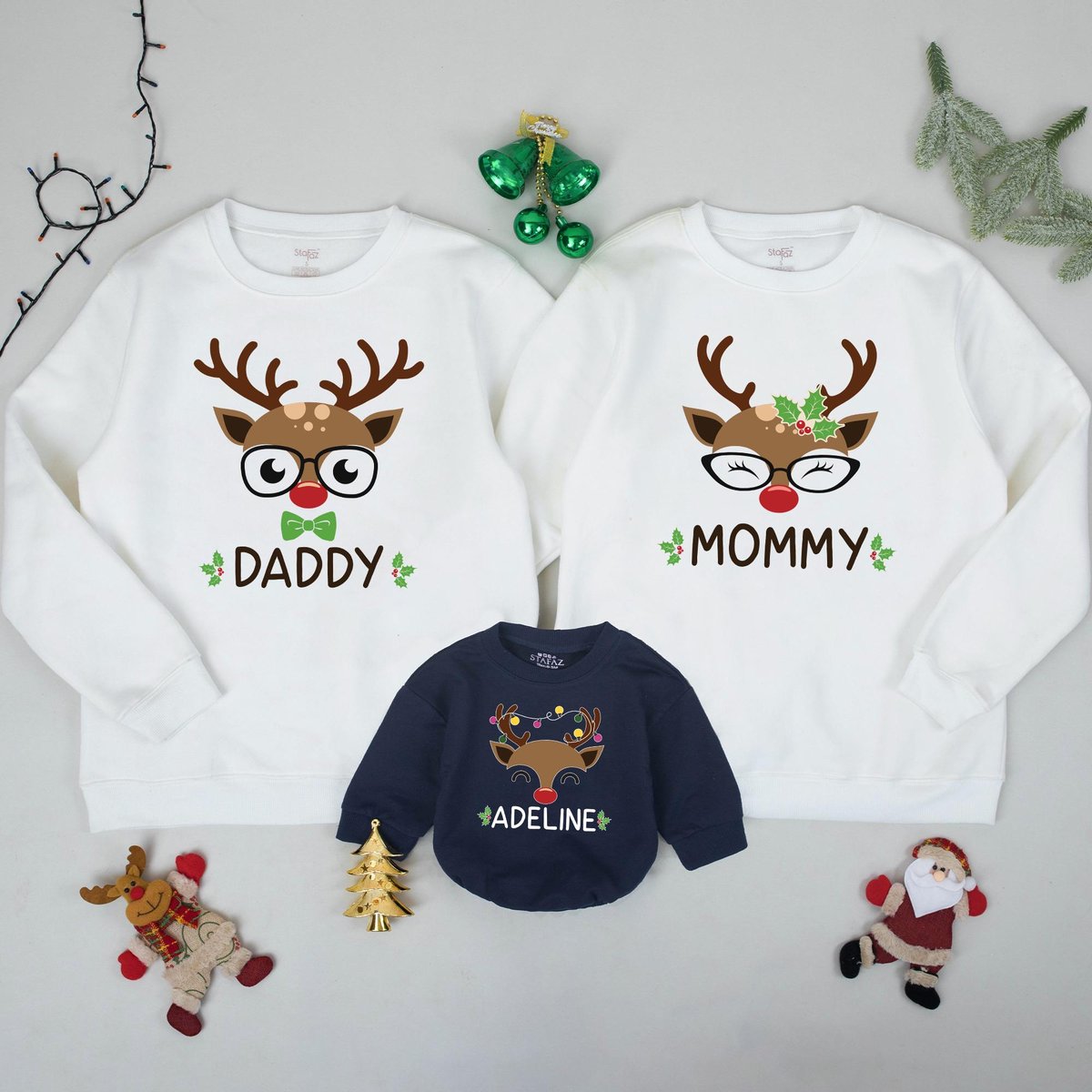 Personalized Reindeer Family Christmas Sweatshirts Matching Xmas Sweaters Custom Family Name Outfits 437