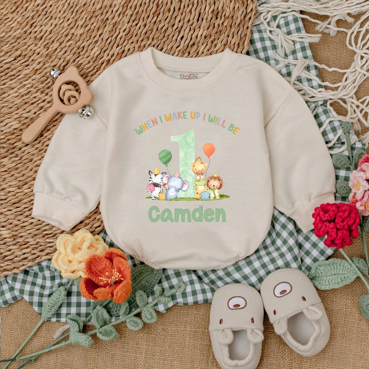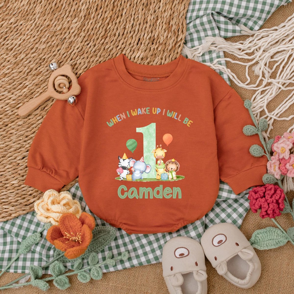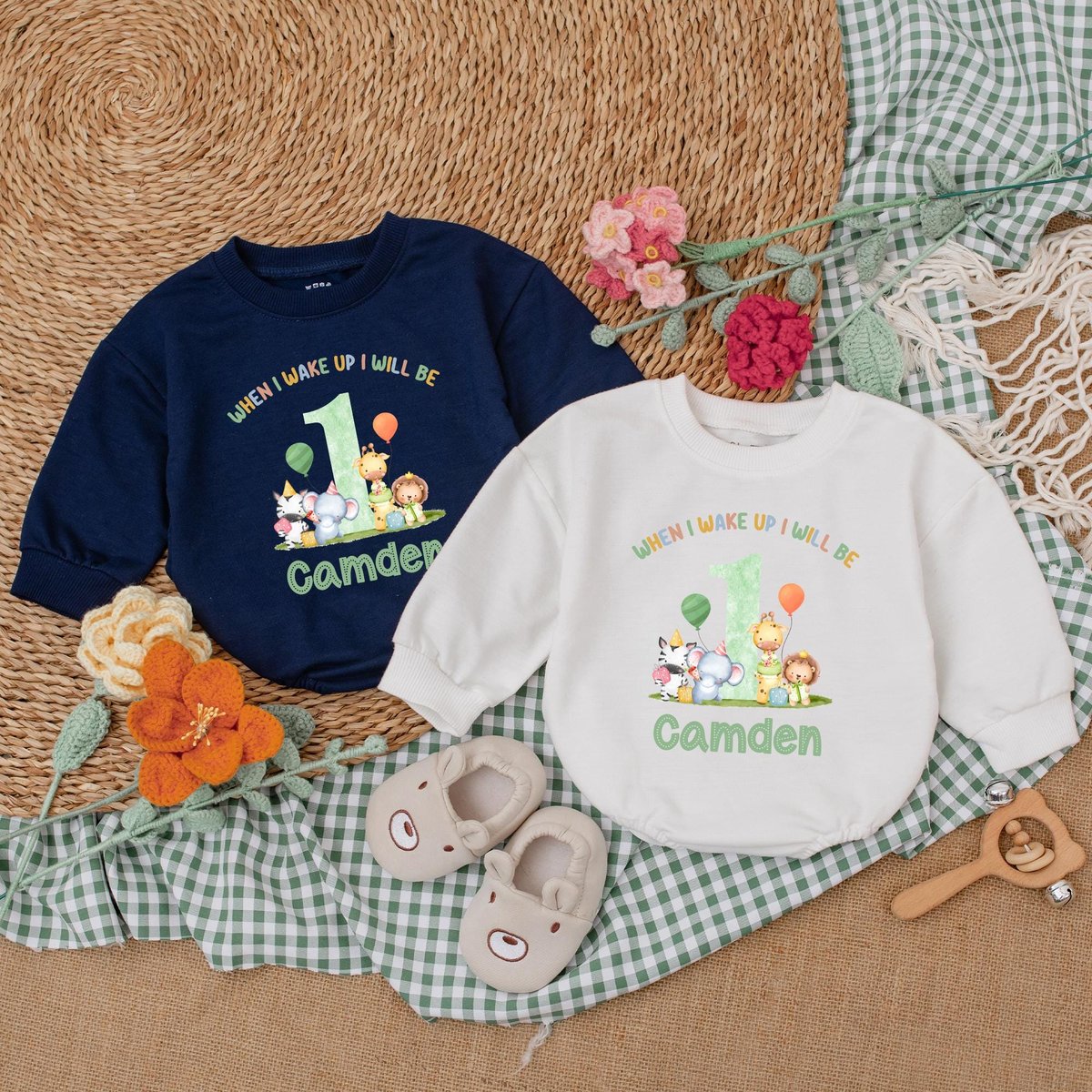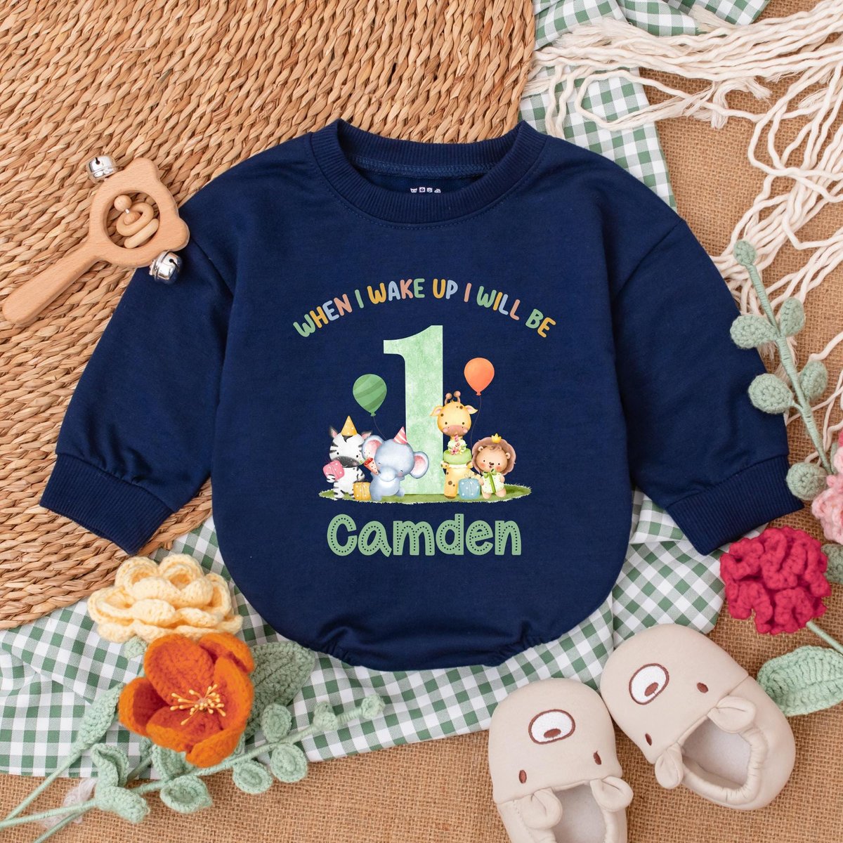Be the first to review “Personalized Safari Animals Birthday Romper Wild One Baby Bodysuit Safari 1st Birthday Outfit Baby B 186”