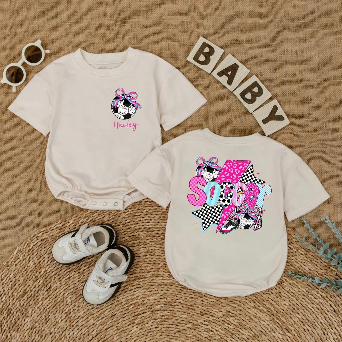 Personalized Soccer Bow Baby Romper Soccer Game Day Bodysuit Baby Girl Soccer Outfit Baby Girl Cloth 430