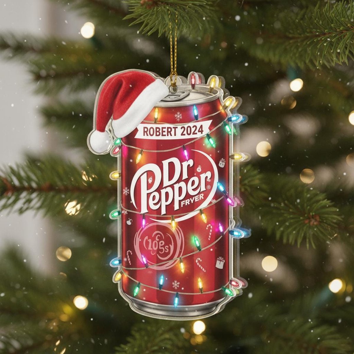 Personalized Soda Can Ornament Custom Name Acrylic Ornament 2025 Funny Christmas Tree Decor Beverage Lover Gift Holiday Lights Keepsake