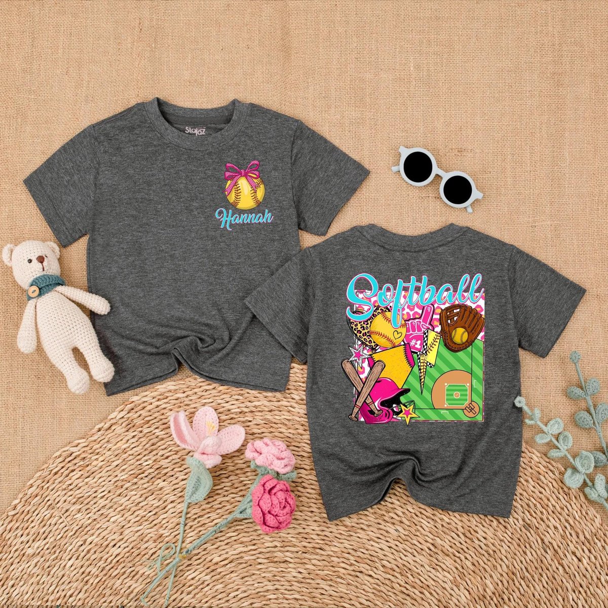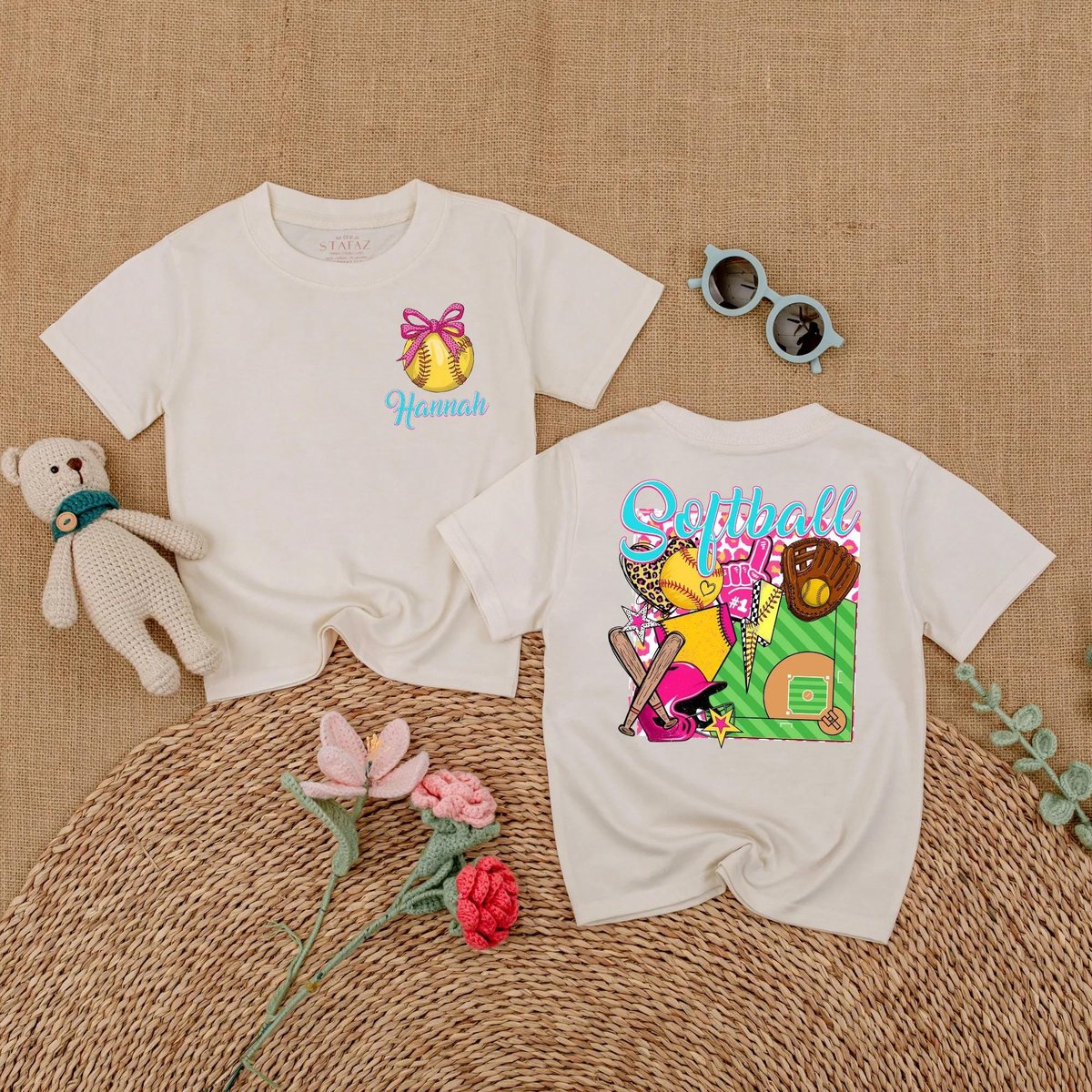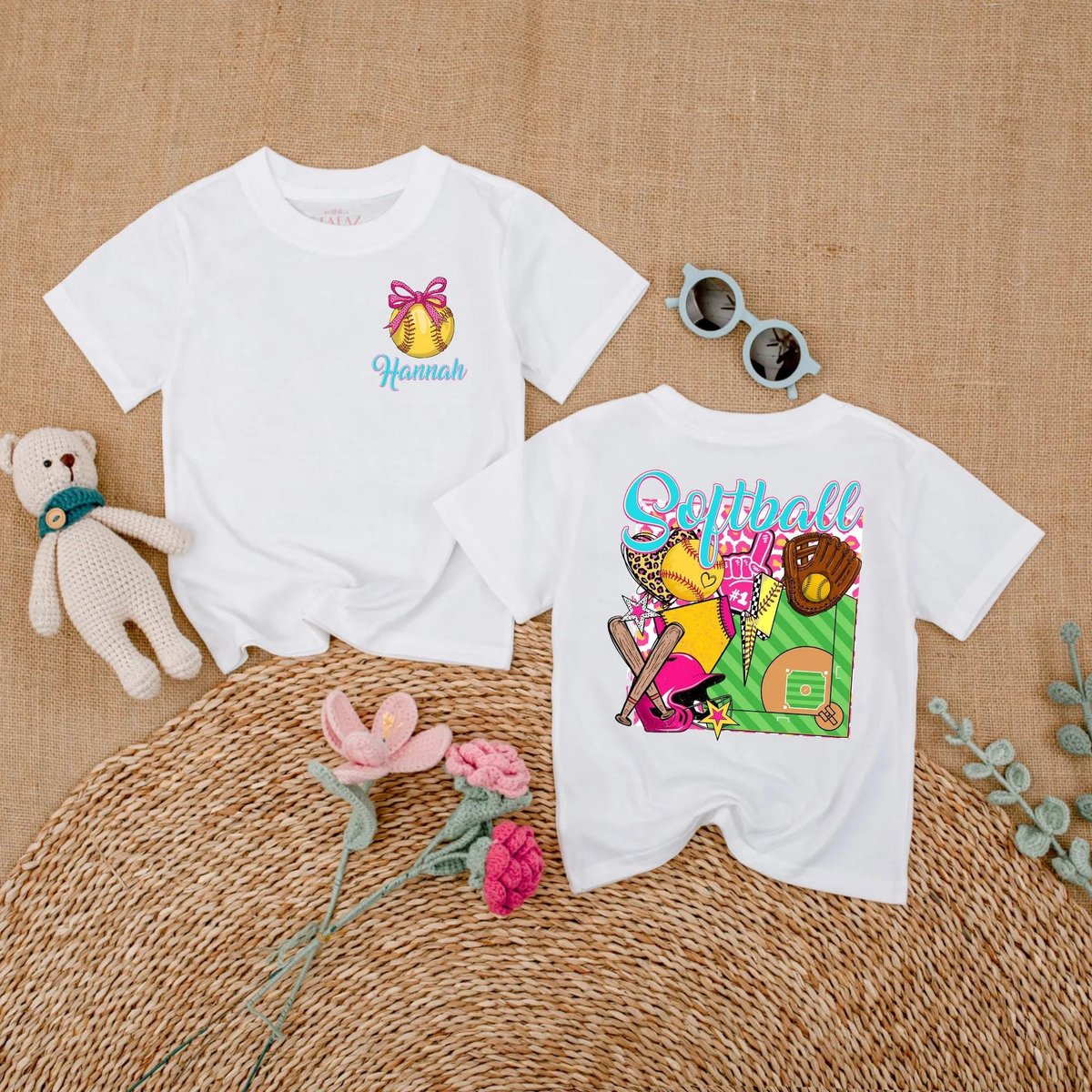 Personalized Softball Baby Girl Bubble Romper Softball Pink Bow Baby Bodysuit Game Day Outfit for Gi 189