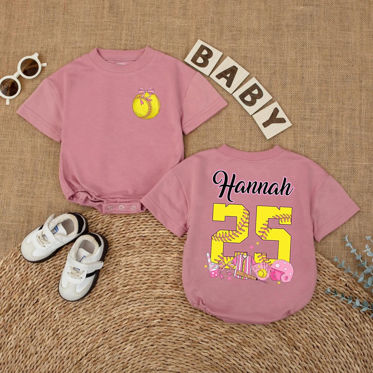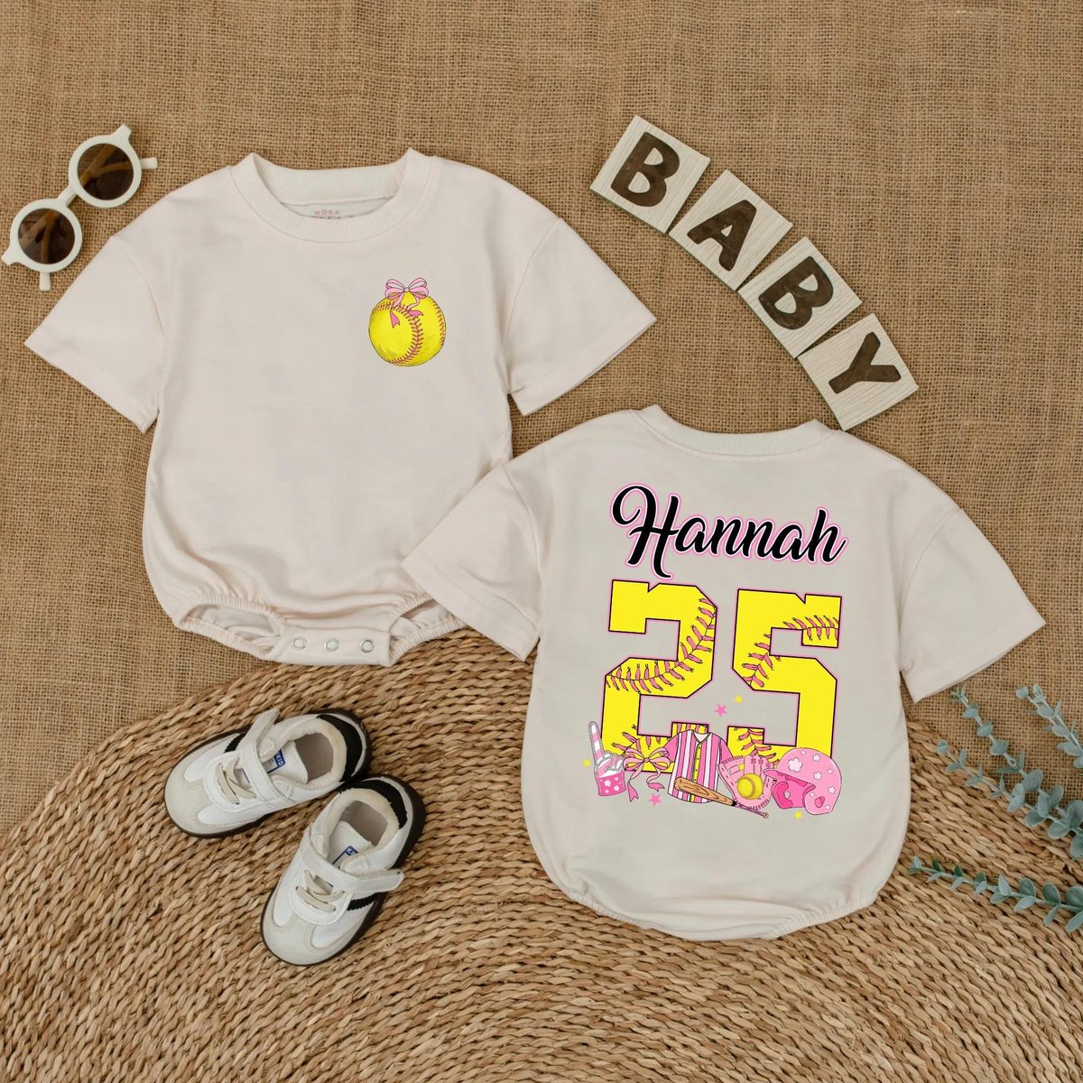 Personalized Softball Baby Romper Custom Softball Gameday Bodysuit Baby Girl Outfit Sports Themed Ba 430