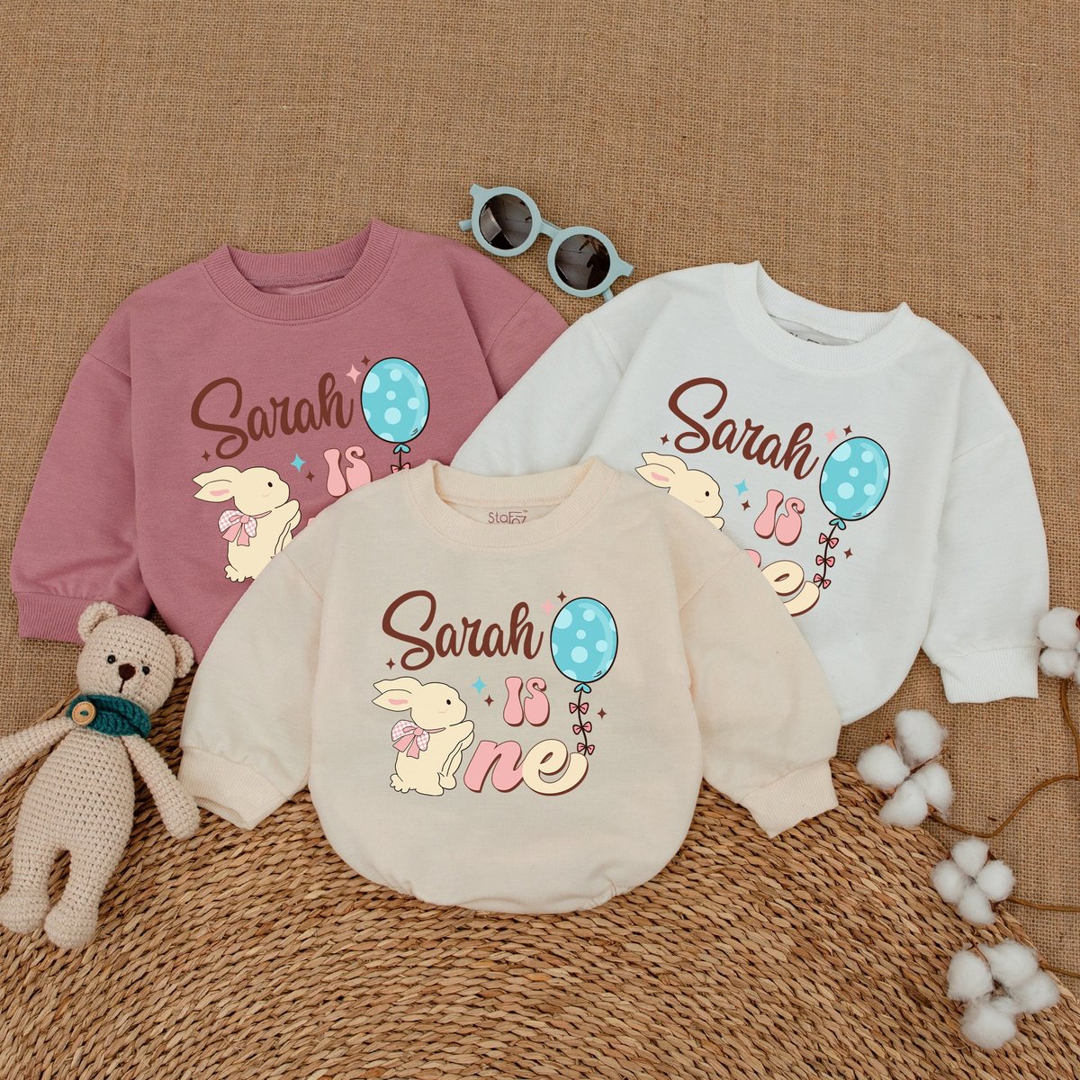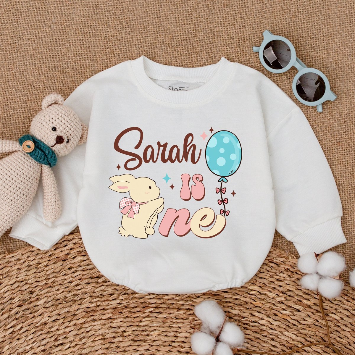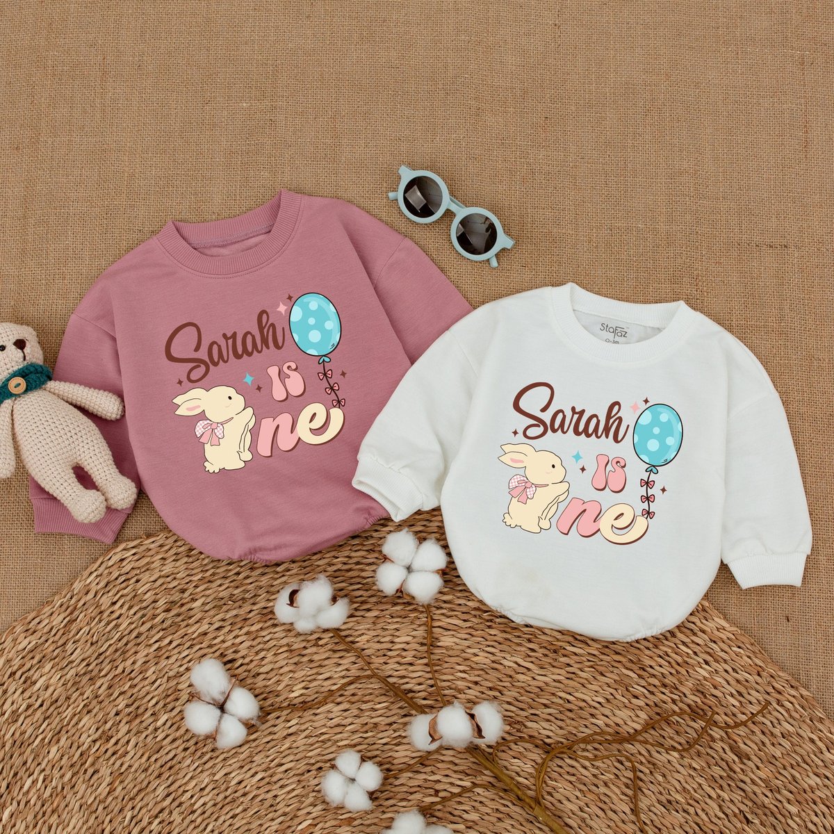 Personalized Some Bunny Is One Romper Custom Name Bunny Birthday Bodysuit Baby Girl Birthday Outfit 170