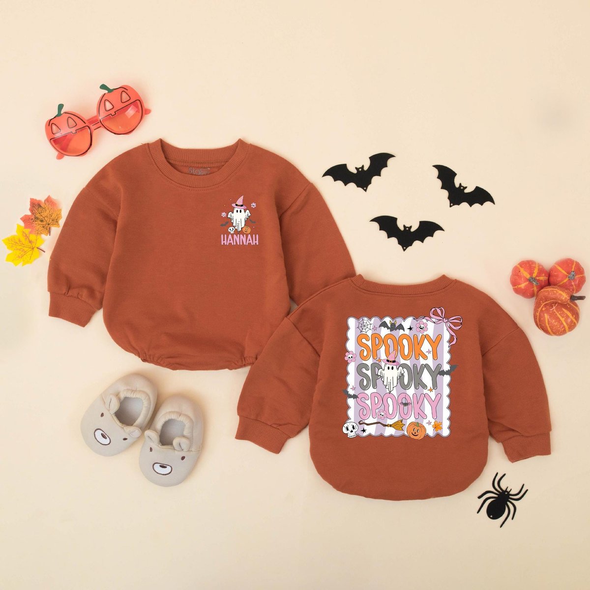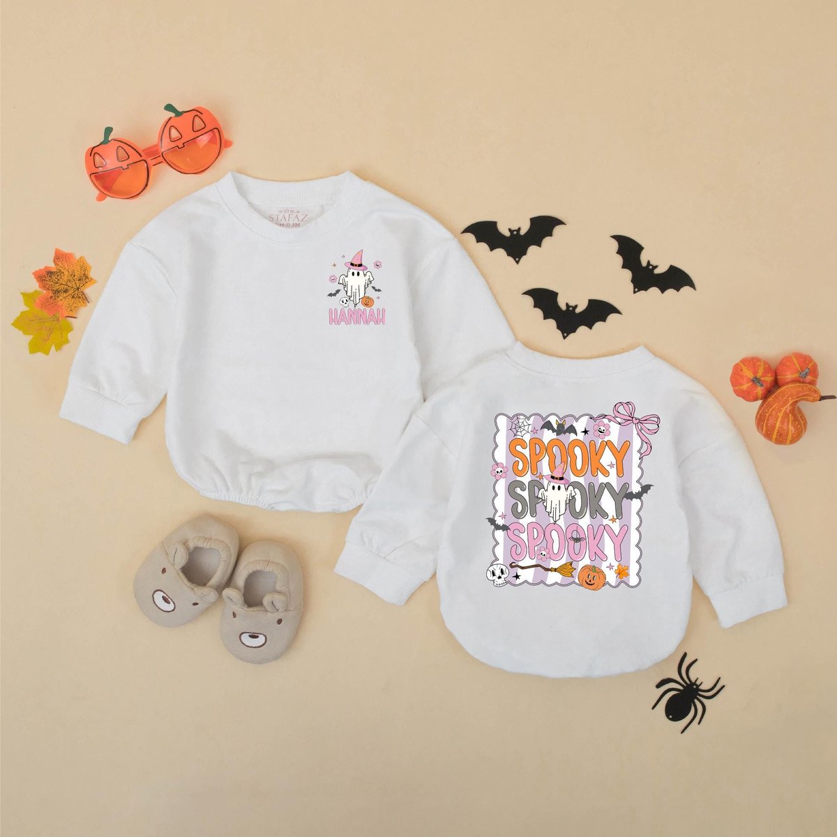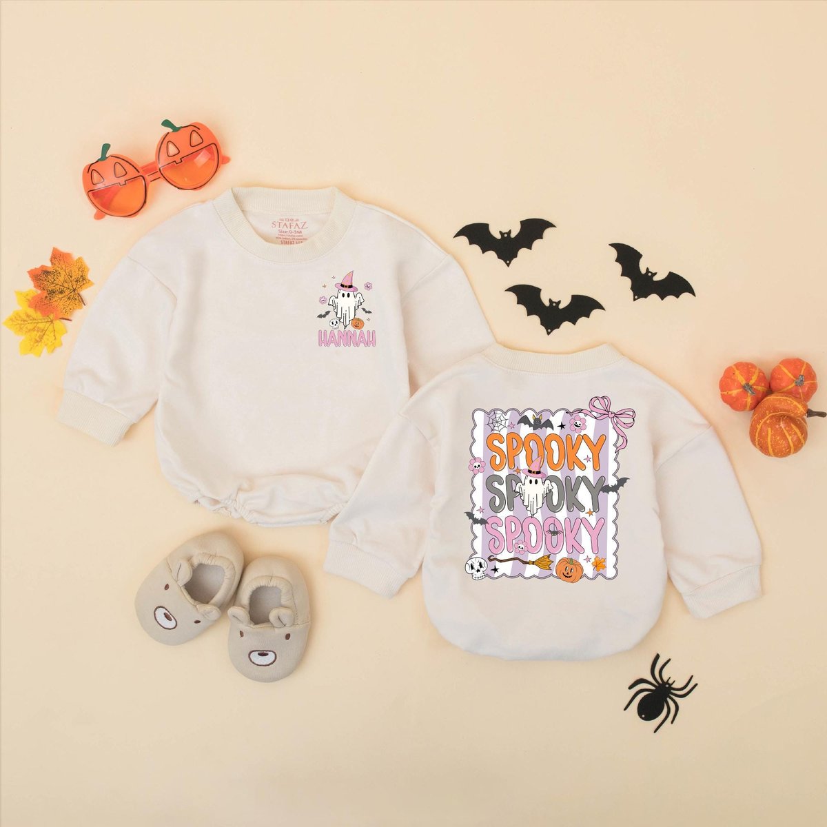 Personalized Spooky Halloween Baby Romper Cute Ghost Baby Outfit Custom Name Spooky Season Baby Swea 432