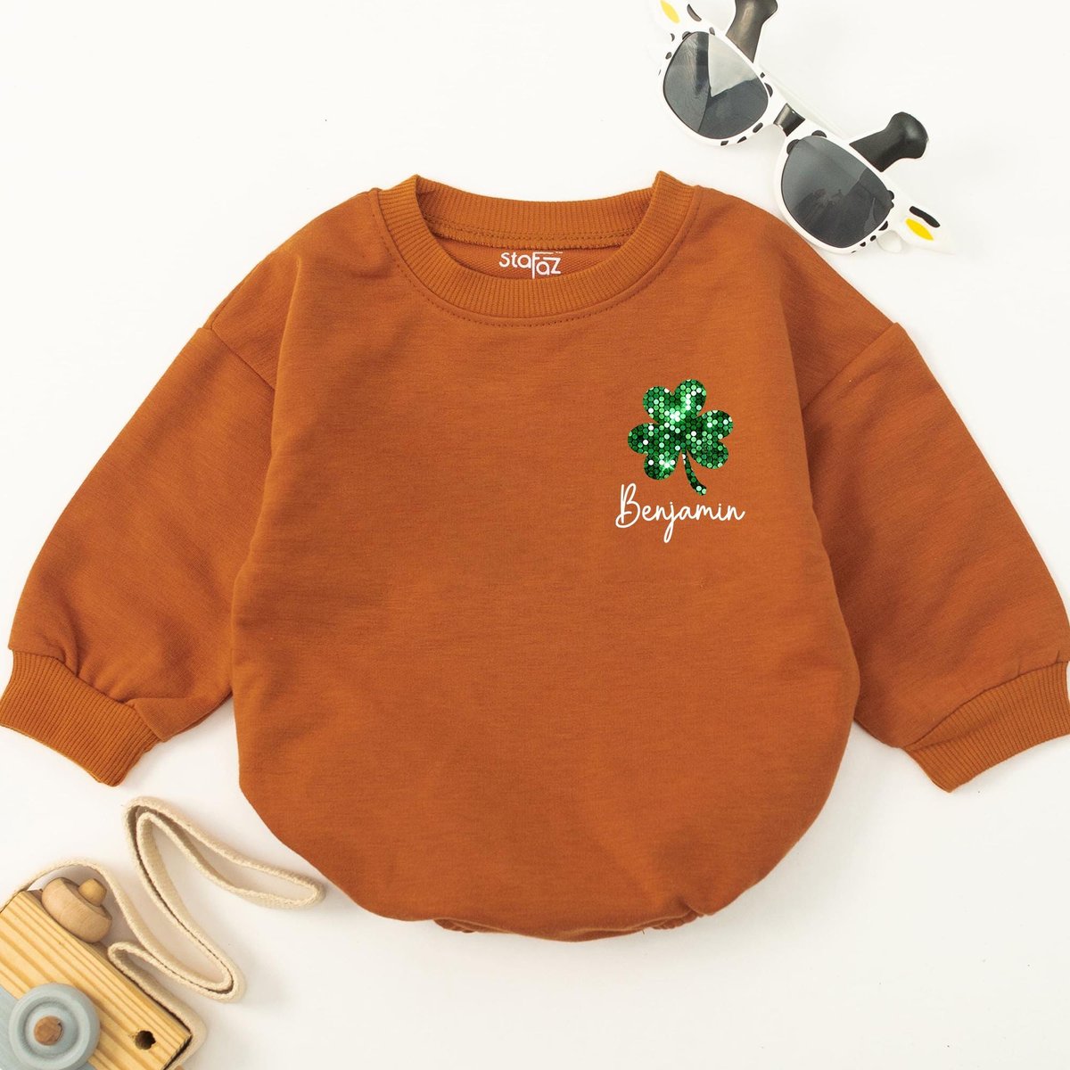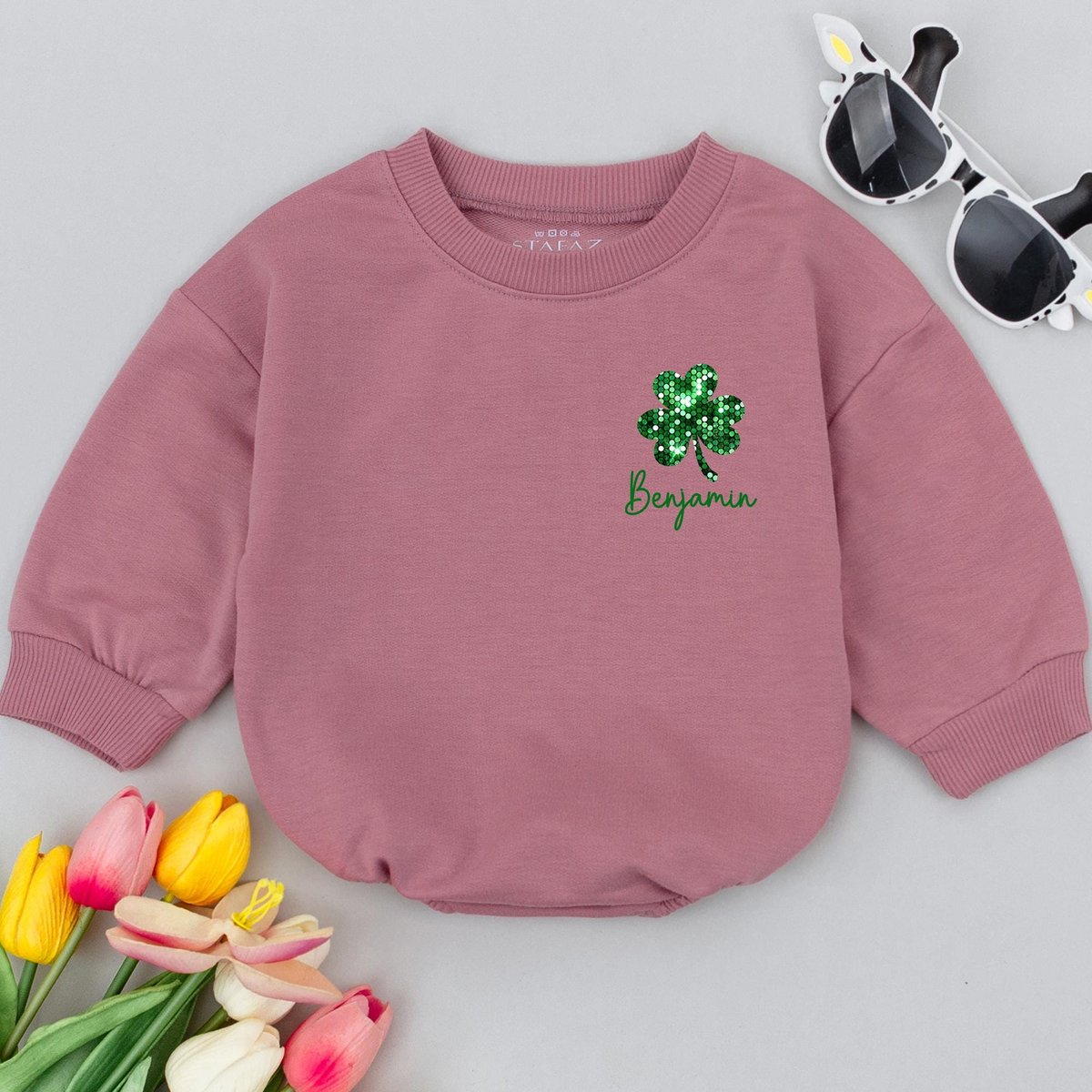 Personalized St. Patrick Day Clover Baby Romper Mix Sequin Real Glittery Sparkle Bling Bling Shamroc 184