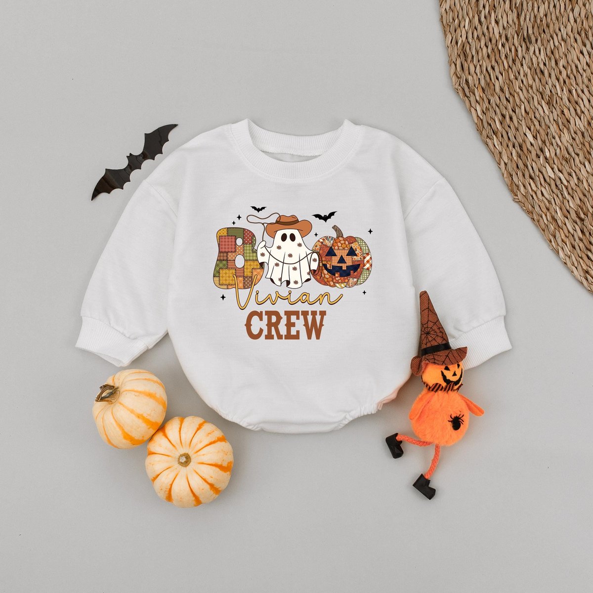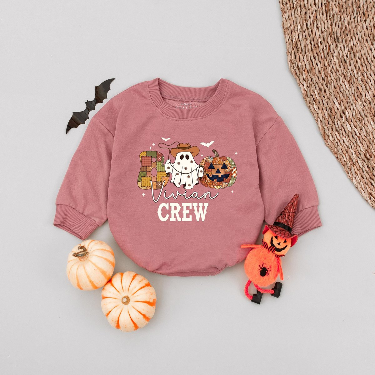 Personalized Team Boo Crew Baby Romper Cowboy Kids Halloween Bubble Romper Western Halloween Party S