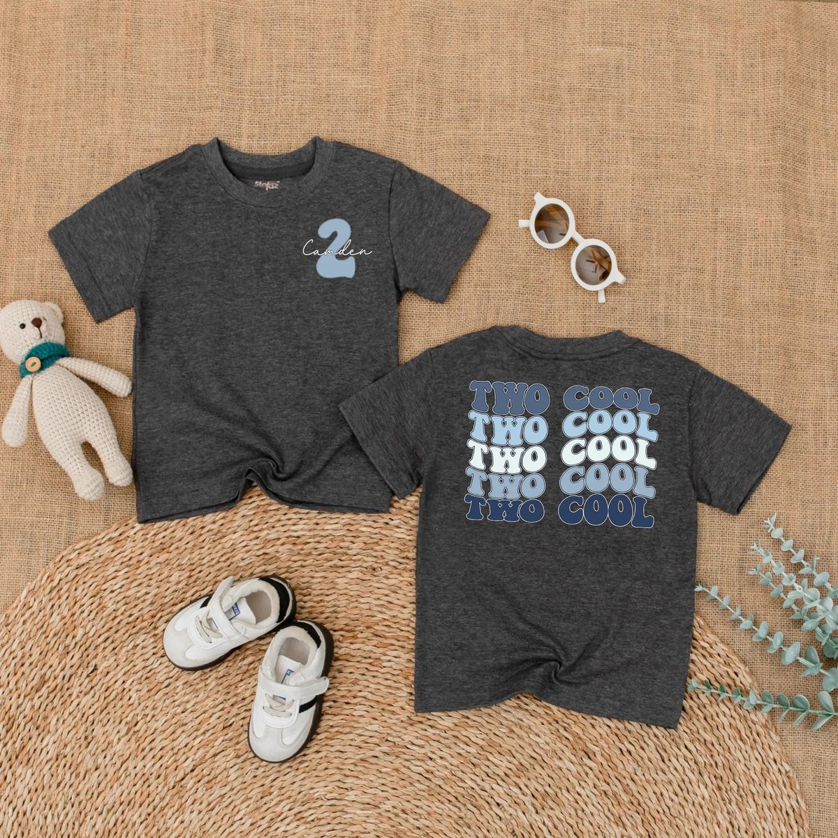 Personalized Two Cool Toddler Birthday Shirt Custom Name 2nd Birthday Outfit Baby Boy Clothes Birthd 433