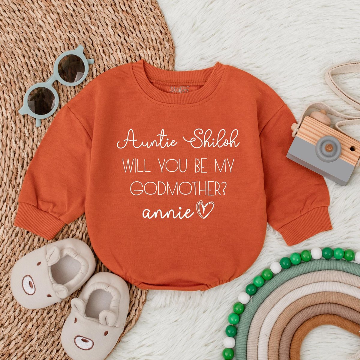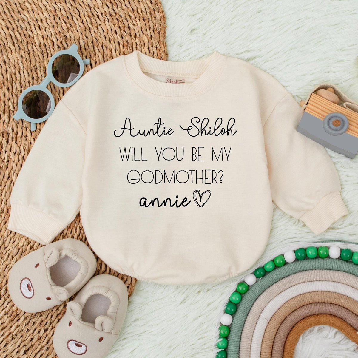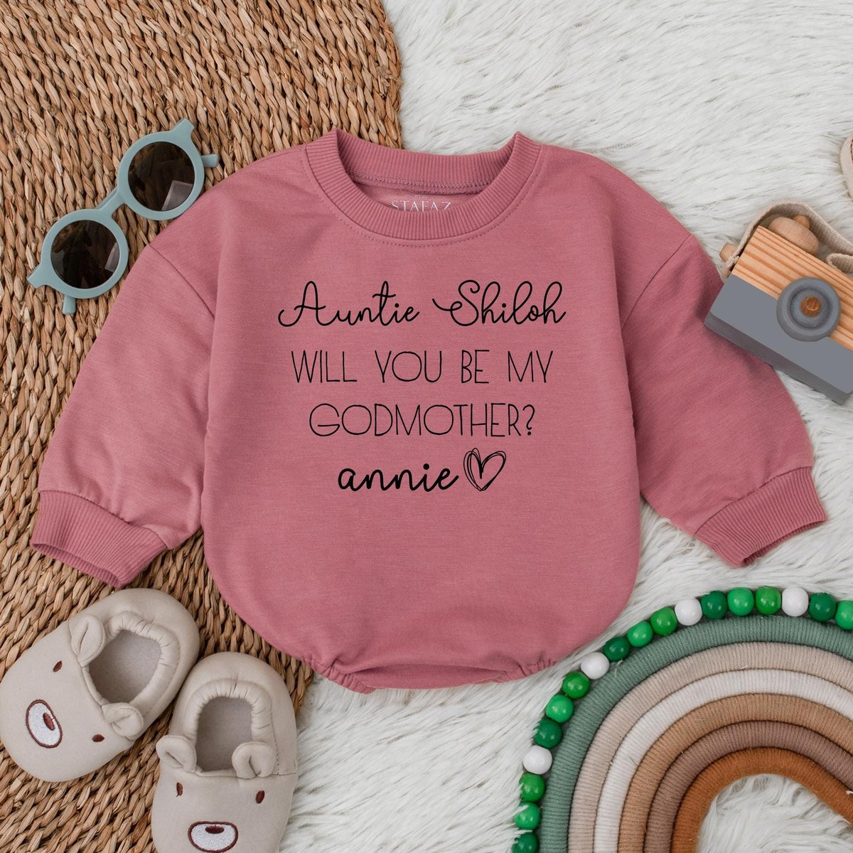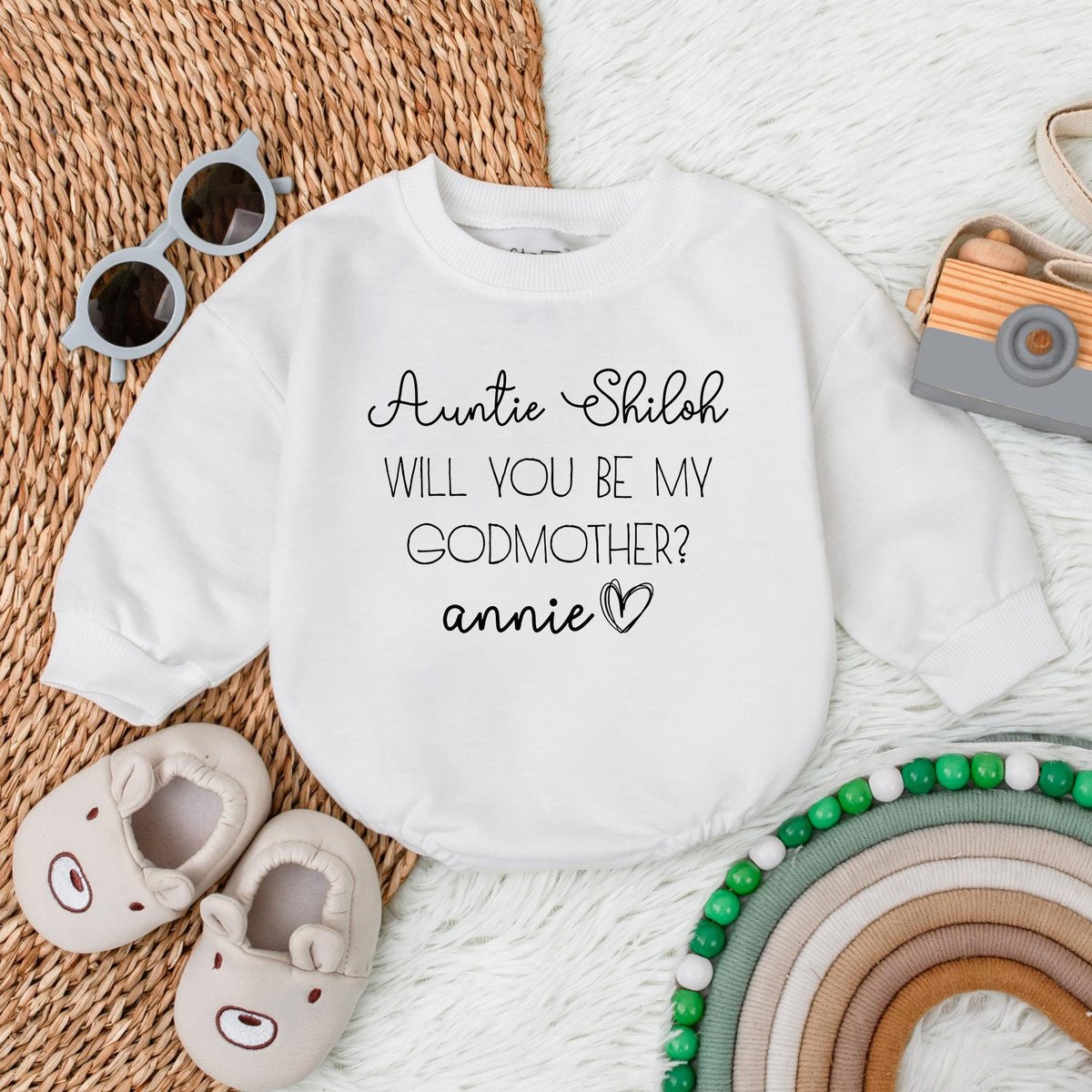 Personalized Will You Be My Godmother Bubble Romper Pregnancy Announcement to Aunt Baby Shower Gift 184