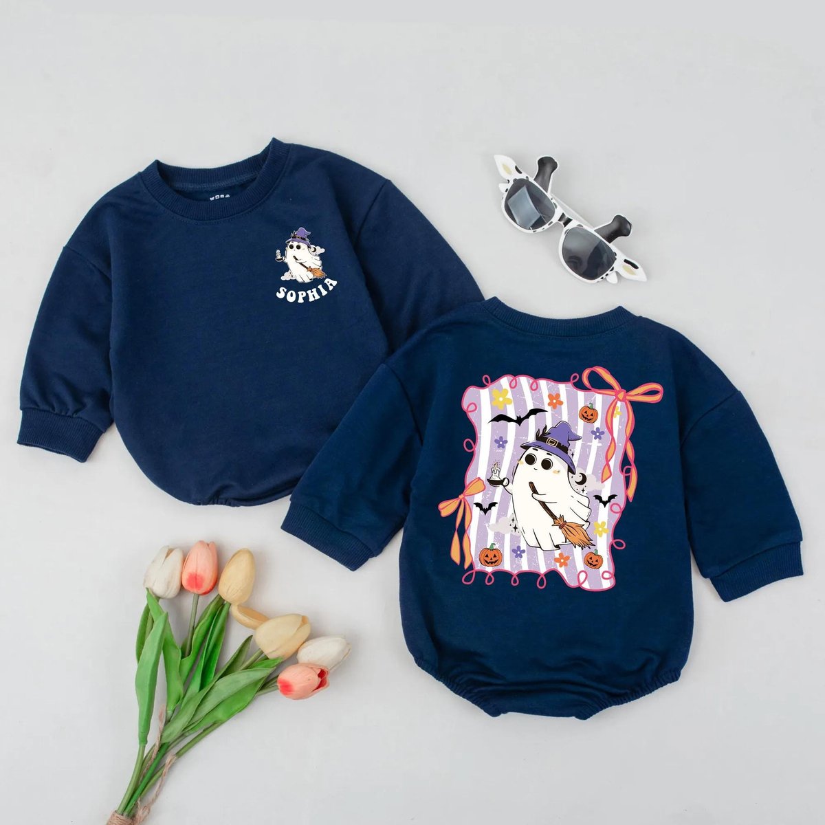 Personalized Witchy Ghost Baby Romper Custom Baby Halloween Outfit with Name First Halloween Bodysui 434
