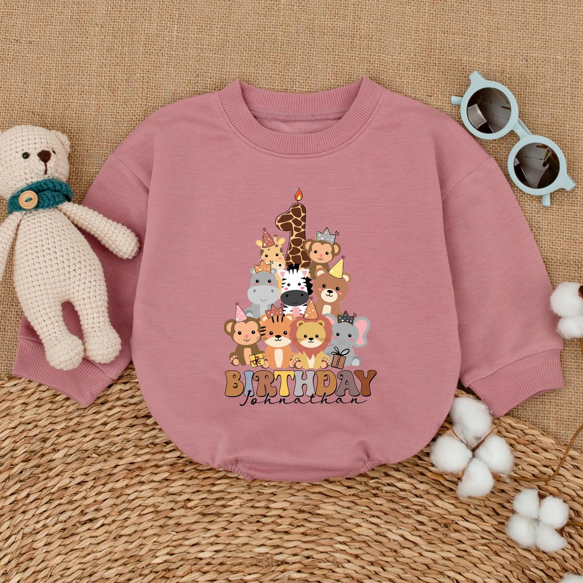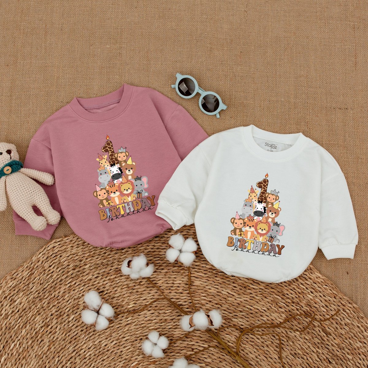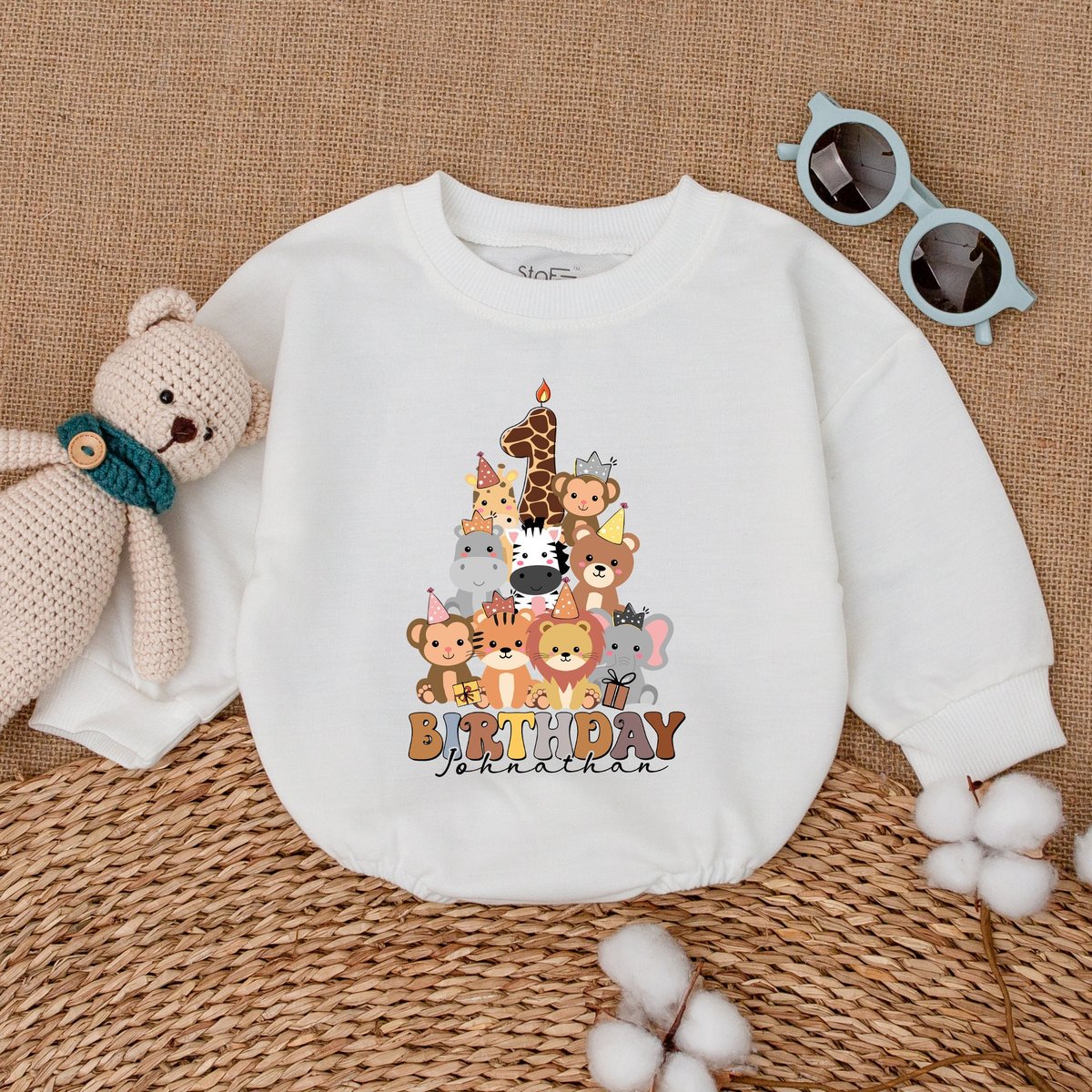 Personalized Zoo Animals Birthday Romper Safari Animals Birthday Bodysuit First Birthday Outfit Newb 169