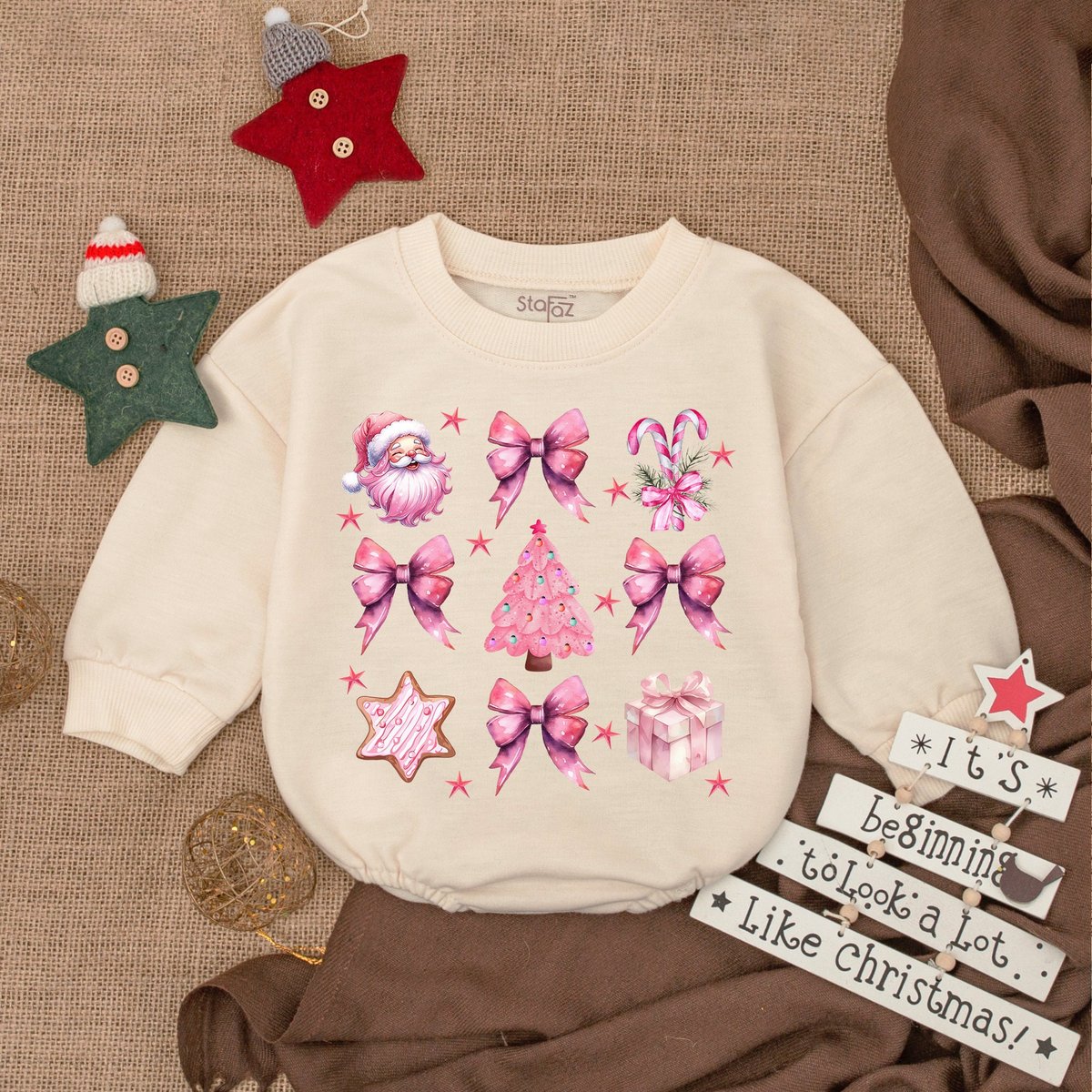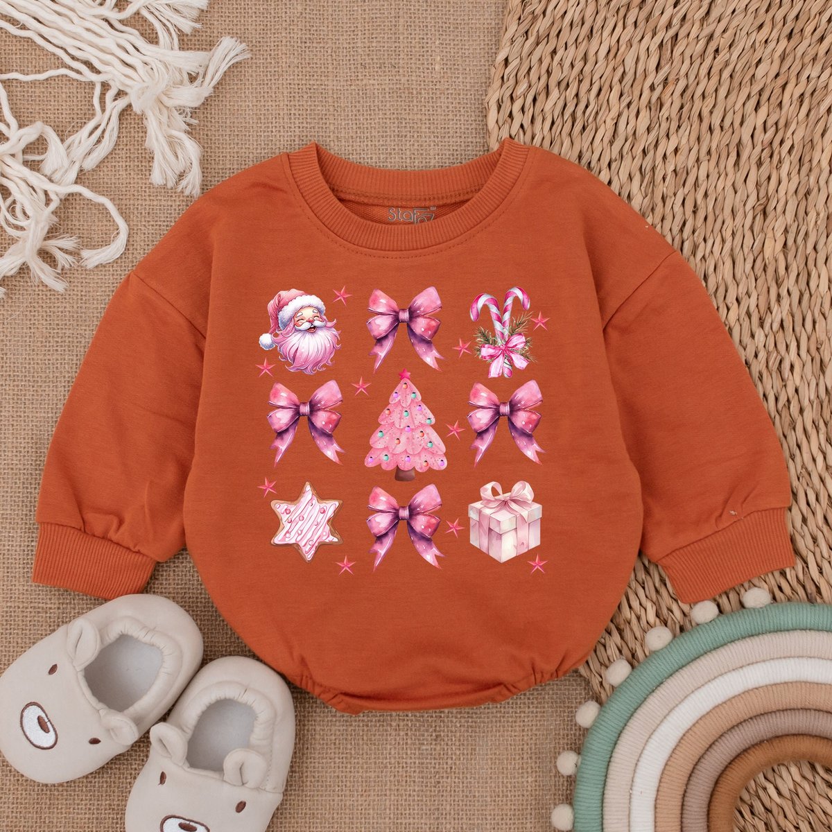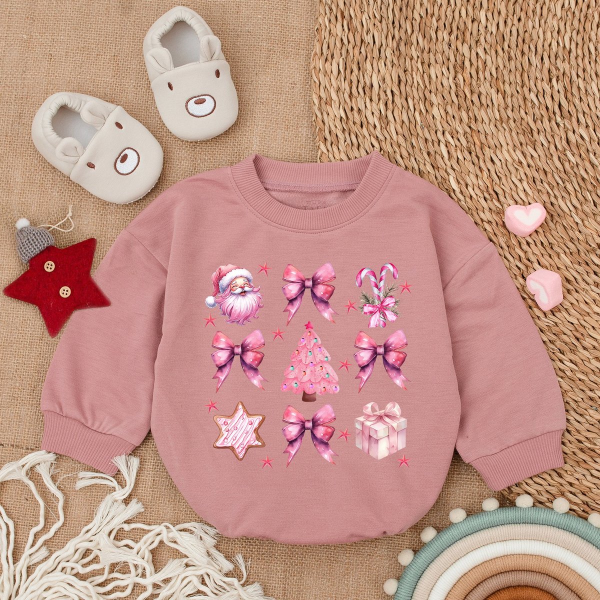 Pink Santa Christmas Baby RomperMy First Christmas Christmas Bodysuit Baby Christmas OutfitOversized
