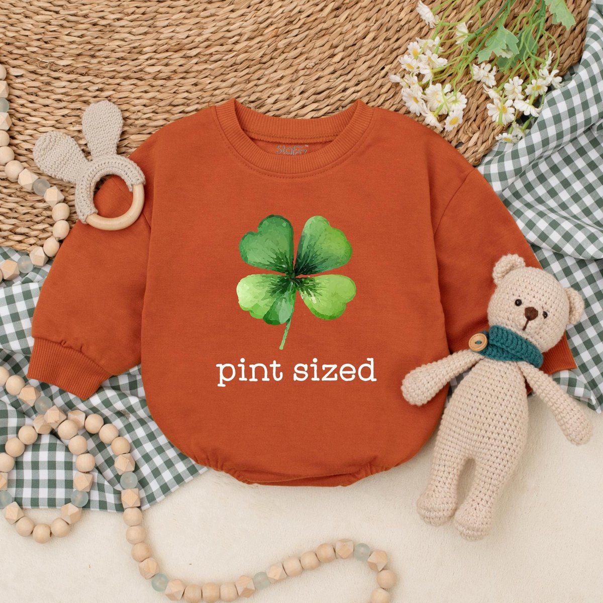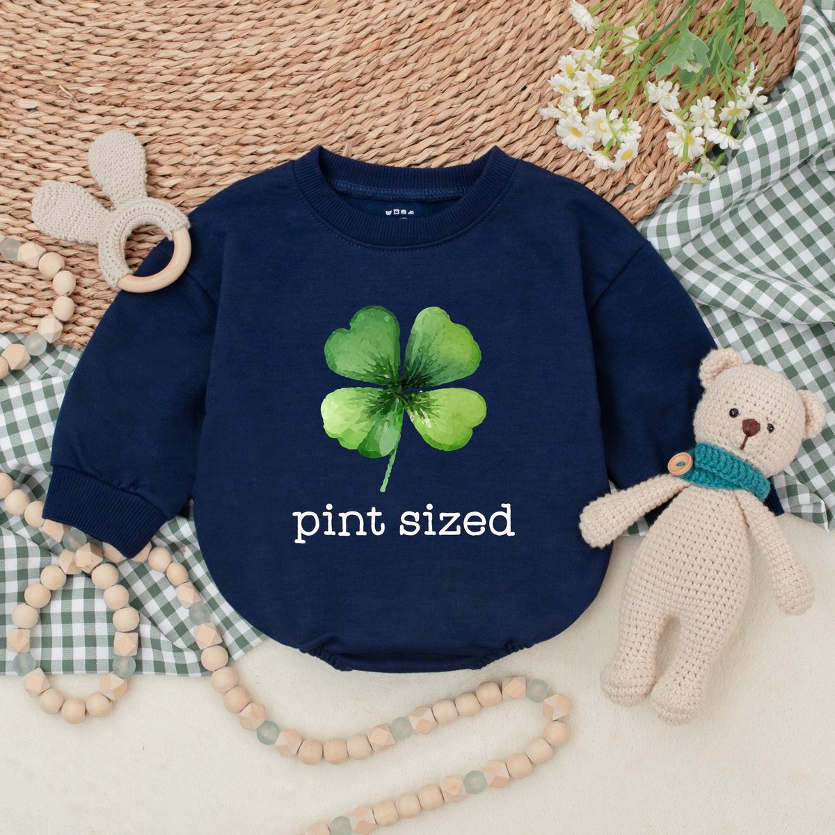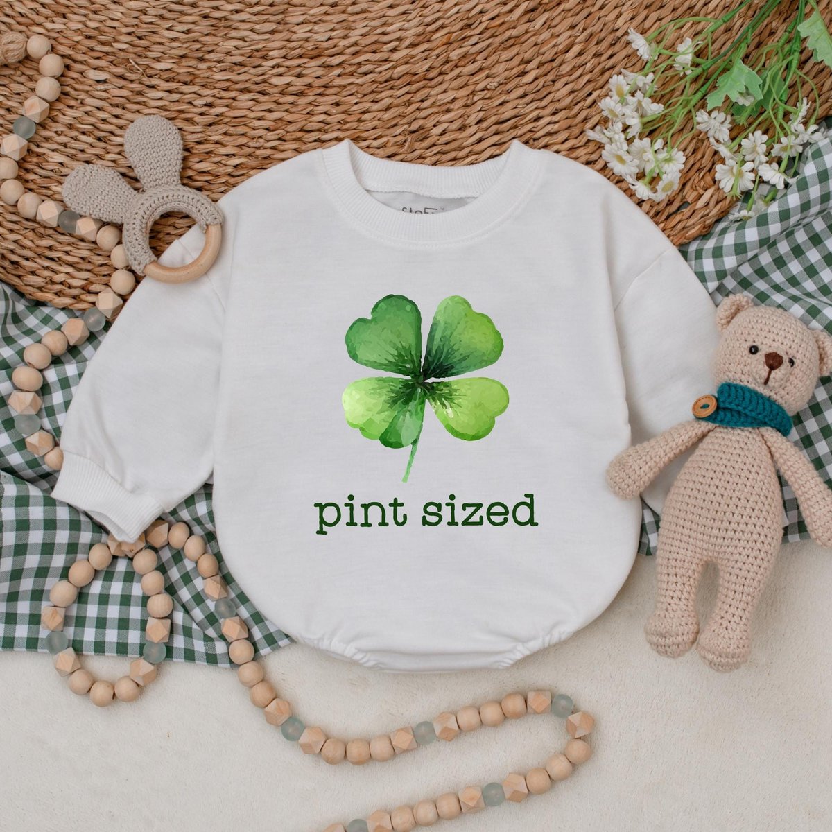 Pint Sized Baby Romper Green Clover Baby Bodysuit Baby Patricks Day Outfit First St Patricks Day Gif 183