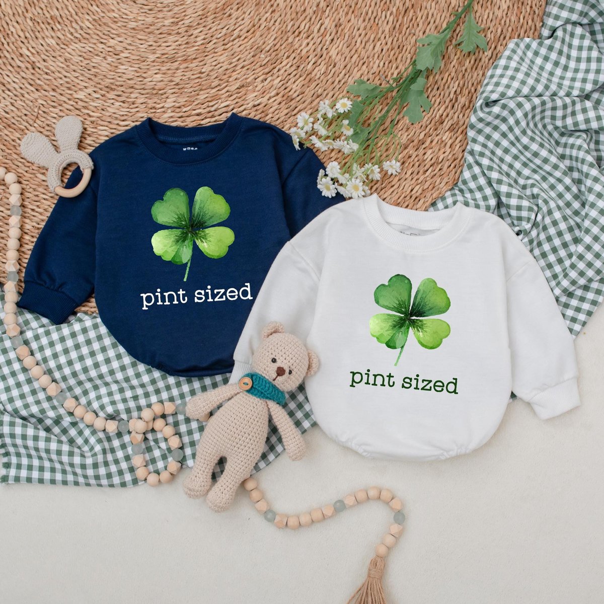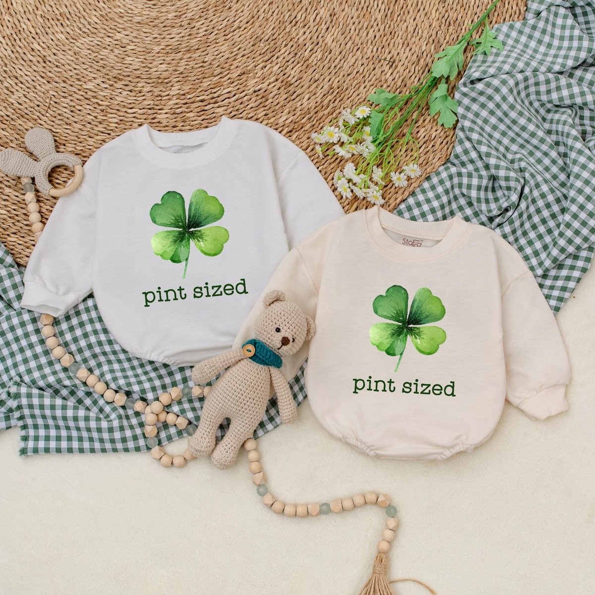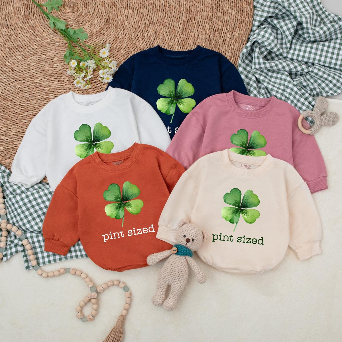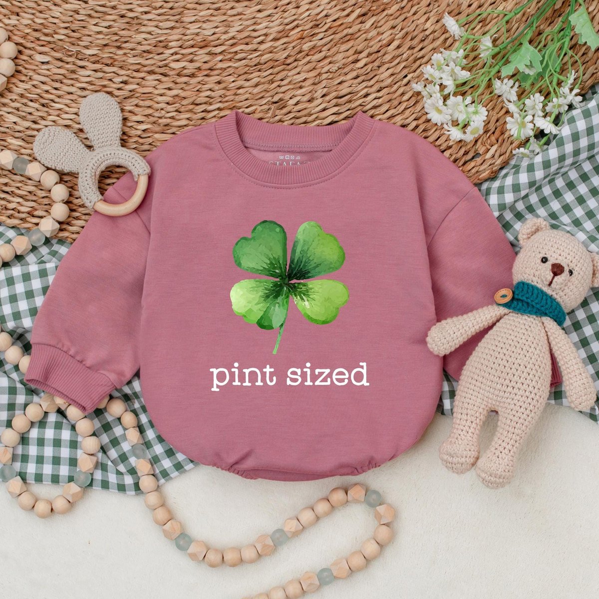Pint Sized Baby Romper Green Clover Baby Bodysuit Baby Patricks Day Outfit First St Patricks Day Gif 183