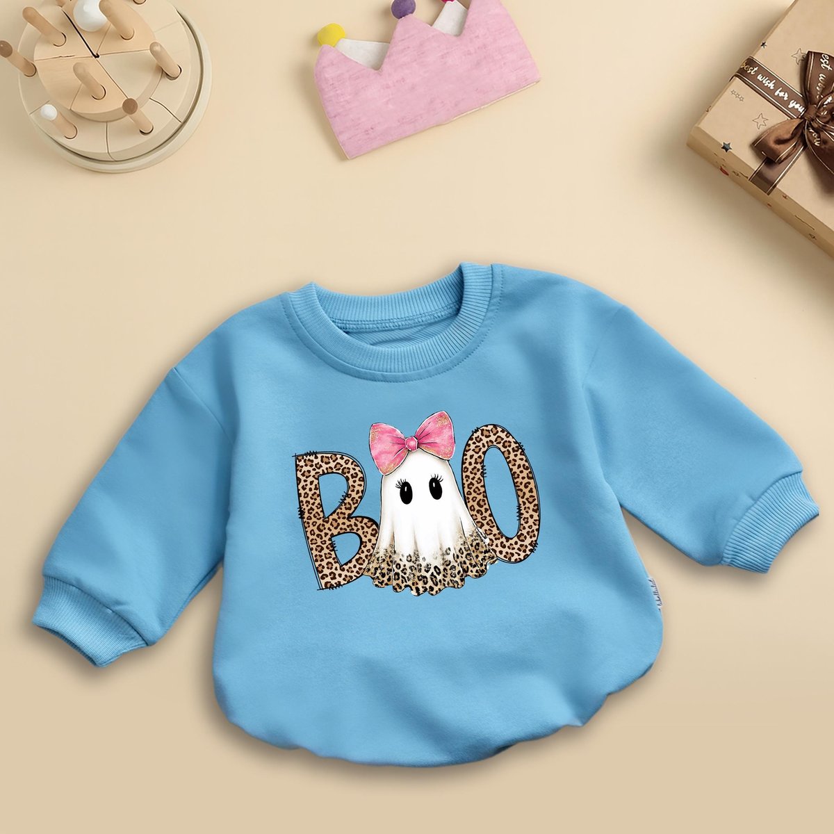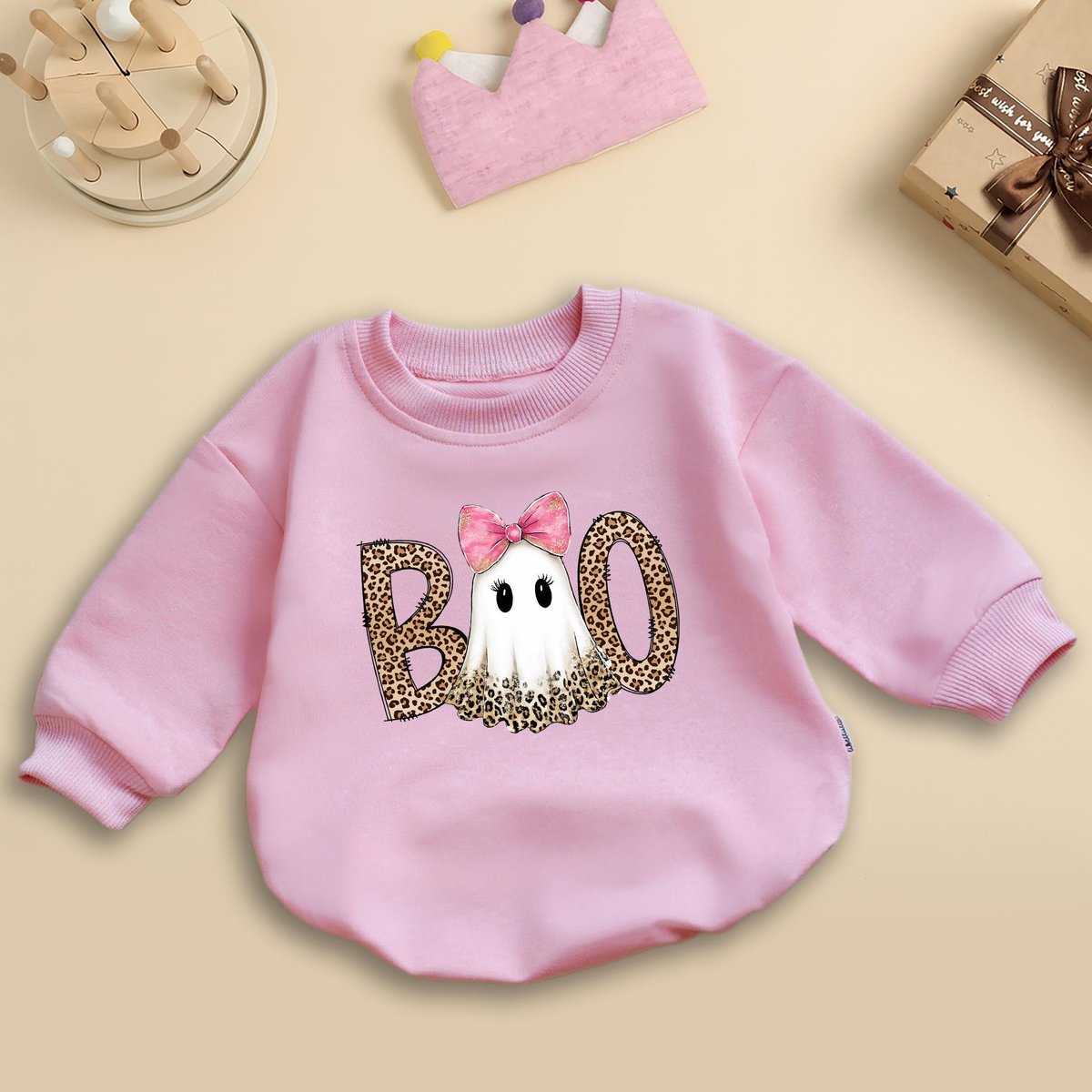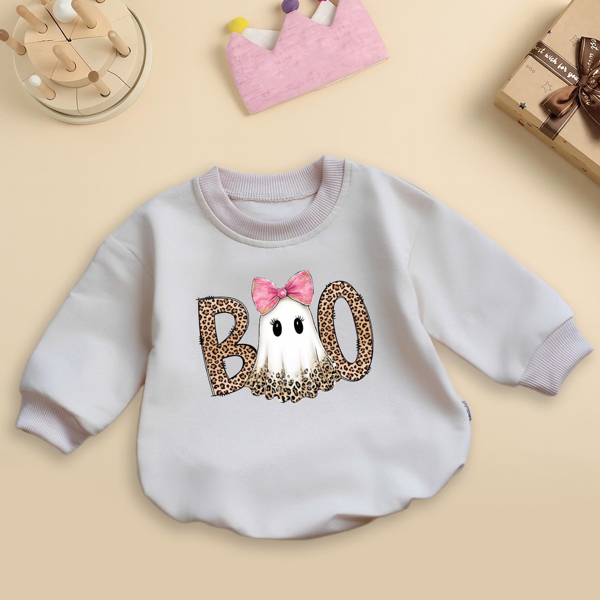 Preppy Ghost Boo Baby Romper Leopard Spooky Coquette Leopard Ghost Baby Outfit Halloween Baby Shower 437