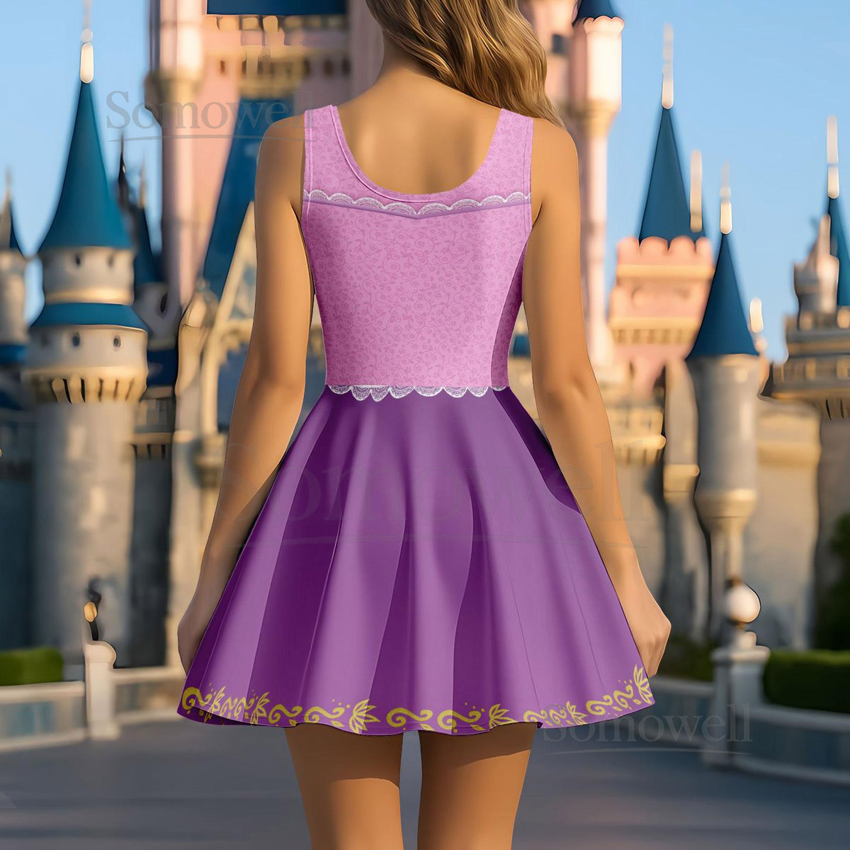 Princess Rapunzel Skater Dress Disney Tangled Women Dress Disneybound Cosplay Costume Halloween Party Princess Dress Gift For Her_155