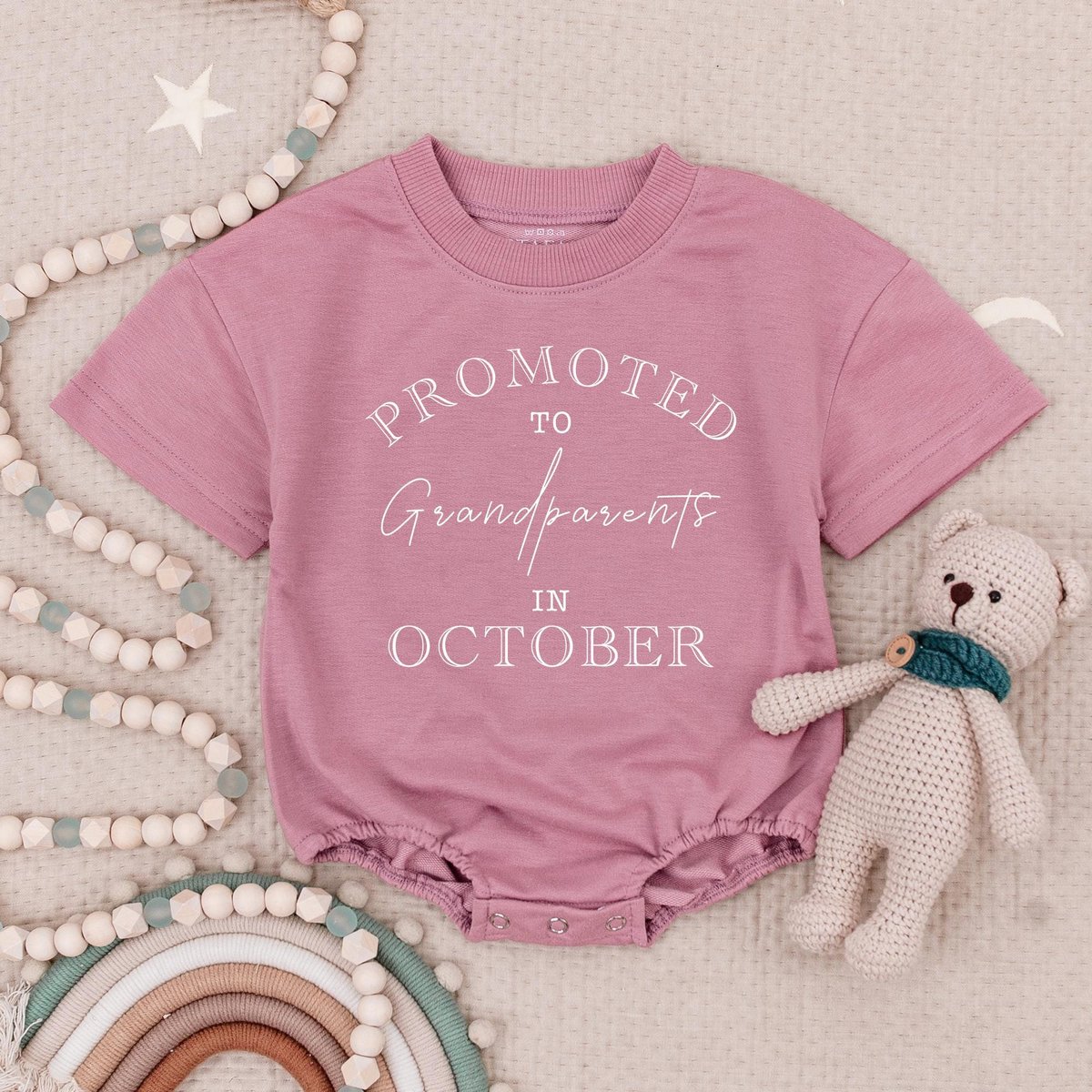 Promoted to Grandma Baby Romper Pregnancy Reveal to Grandparent BabygrowPregnancy Surprise Gift Gran