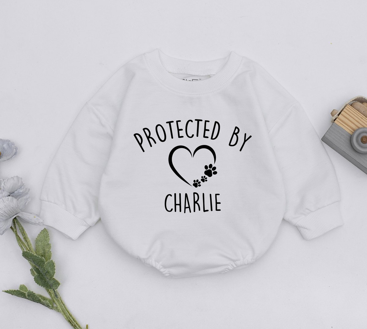 Protected By Dog Romper Dogs New Best Friend Baby Romper Personalized Dog Name Outfits Baby Shower G