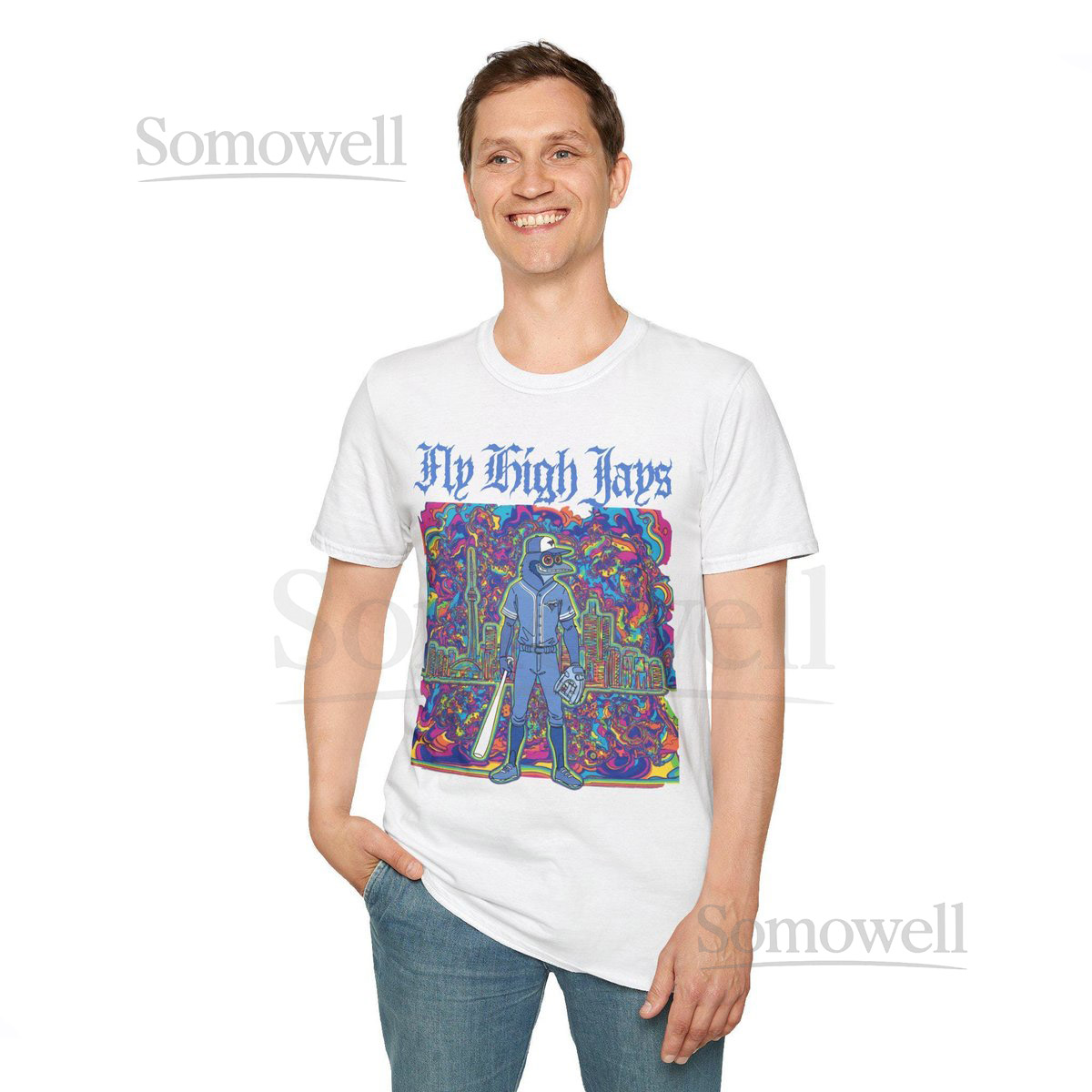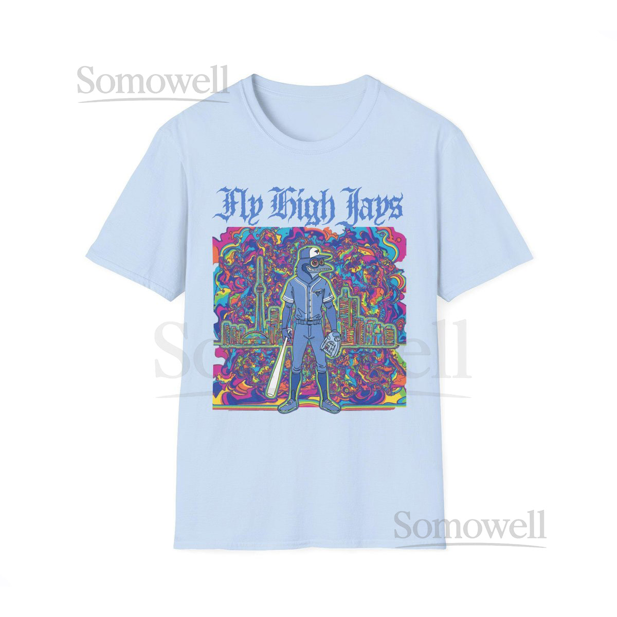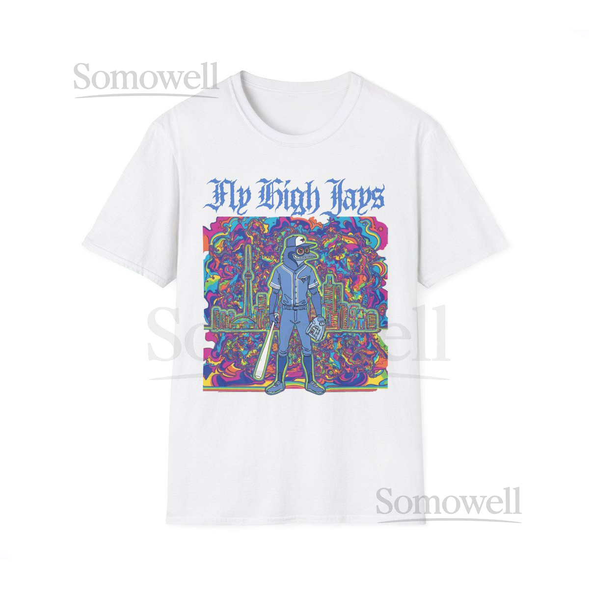 Psychedelic Blue Jays Unisex Softstyle T-Shirt Fly High Toronto Baseball_735