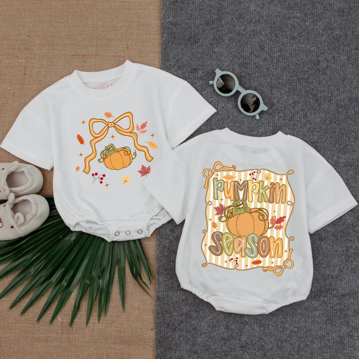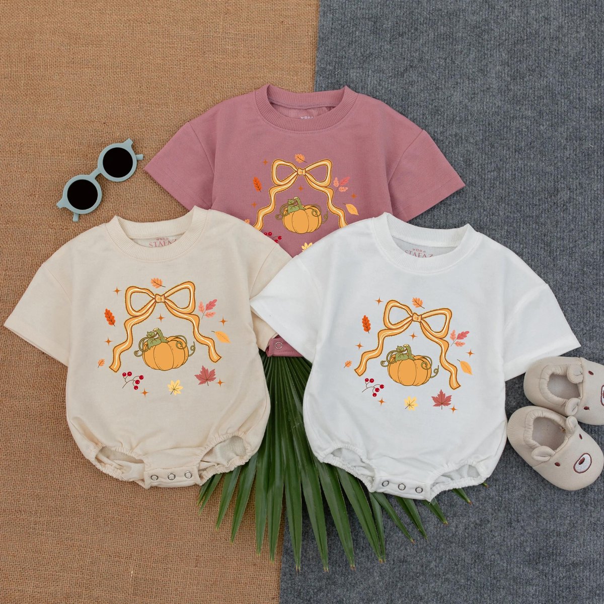 Pumpkin Season Thanksgiving Baby Romper Pumpkin Bow Bubble Romper Autumn Baby Girl Romper 1St Thanks 434