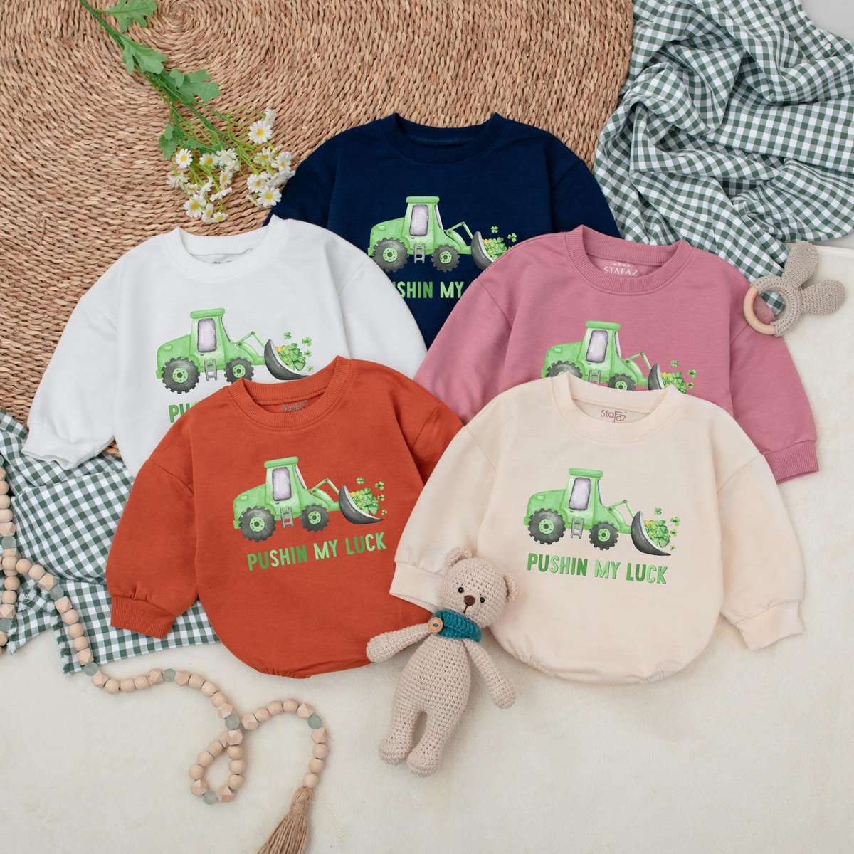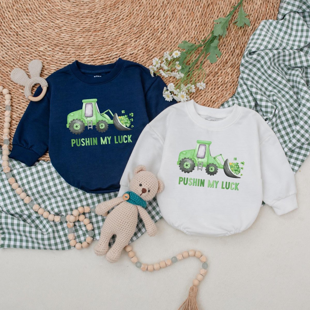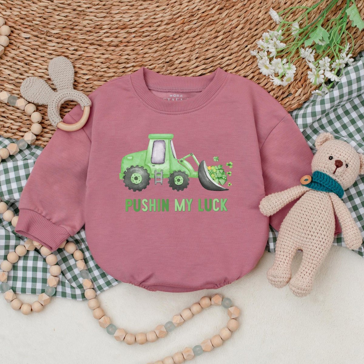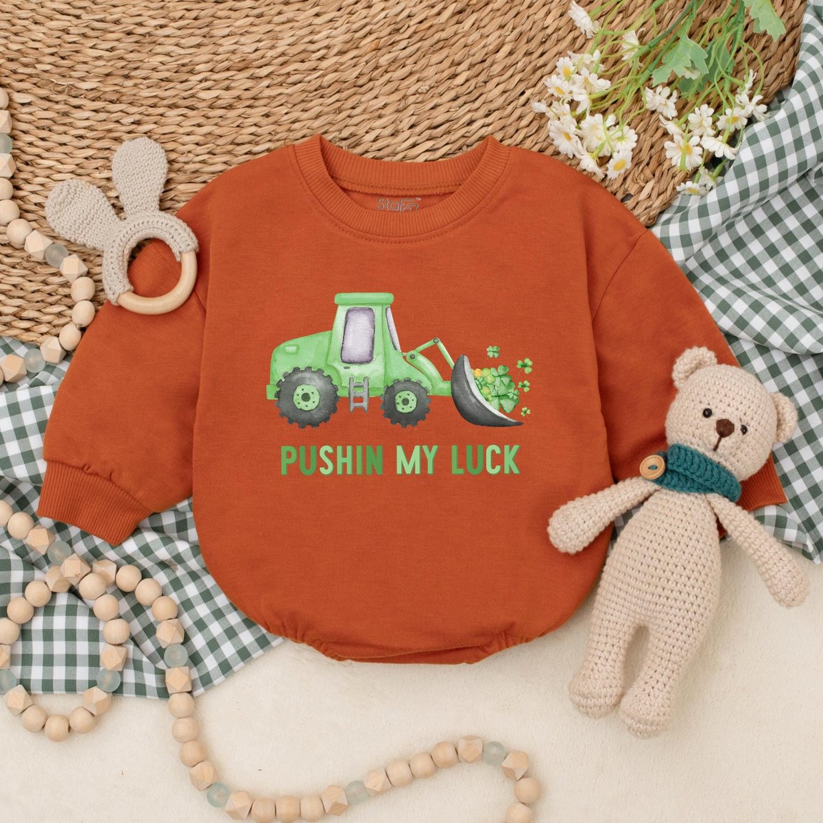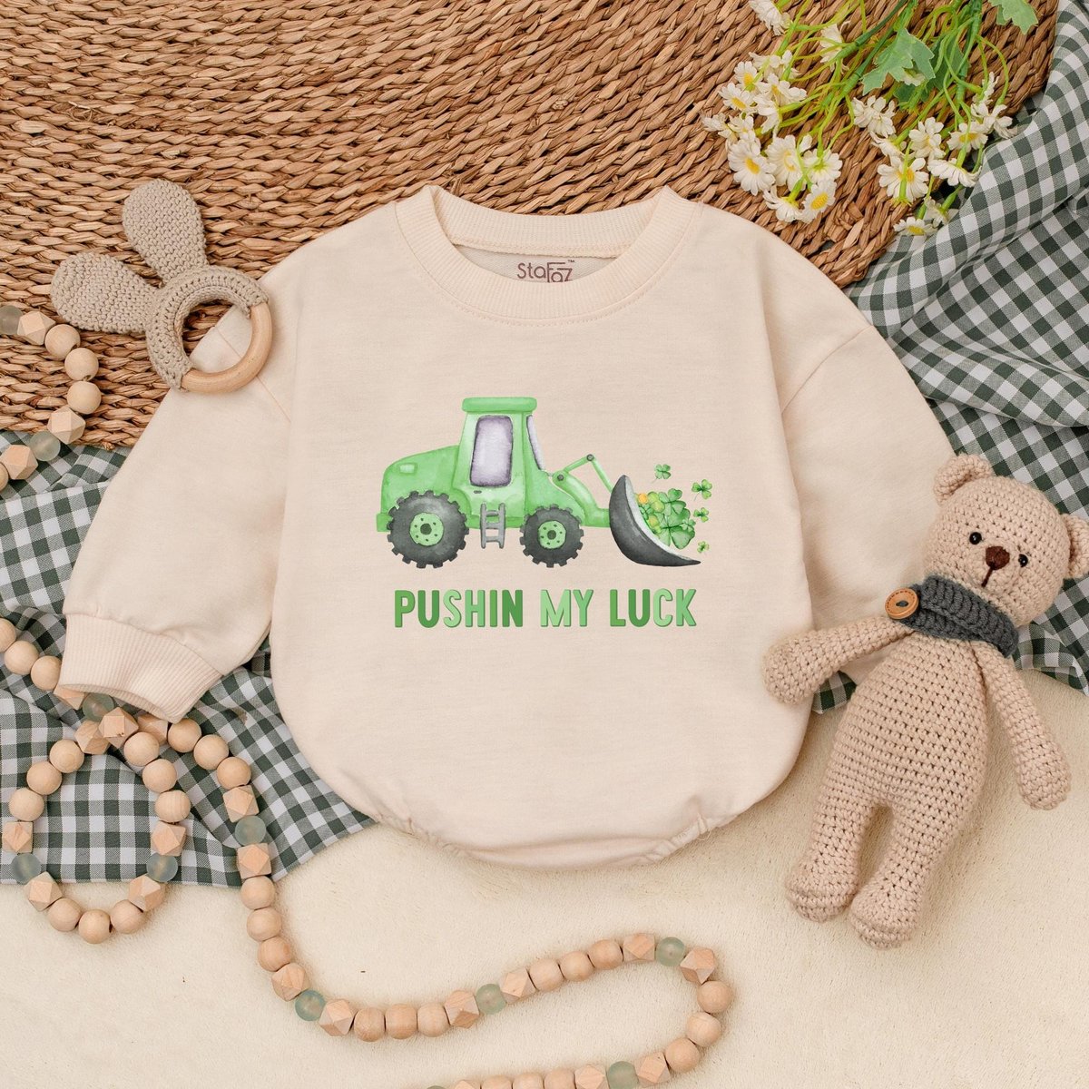 Pushing My Luck Construction Baby Bubble Romper St. Patrick’s Day Boys Bodysuit Baby Patrick’s Day 186