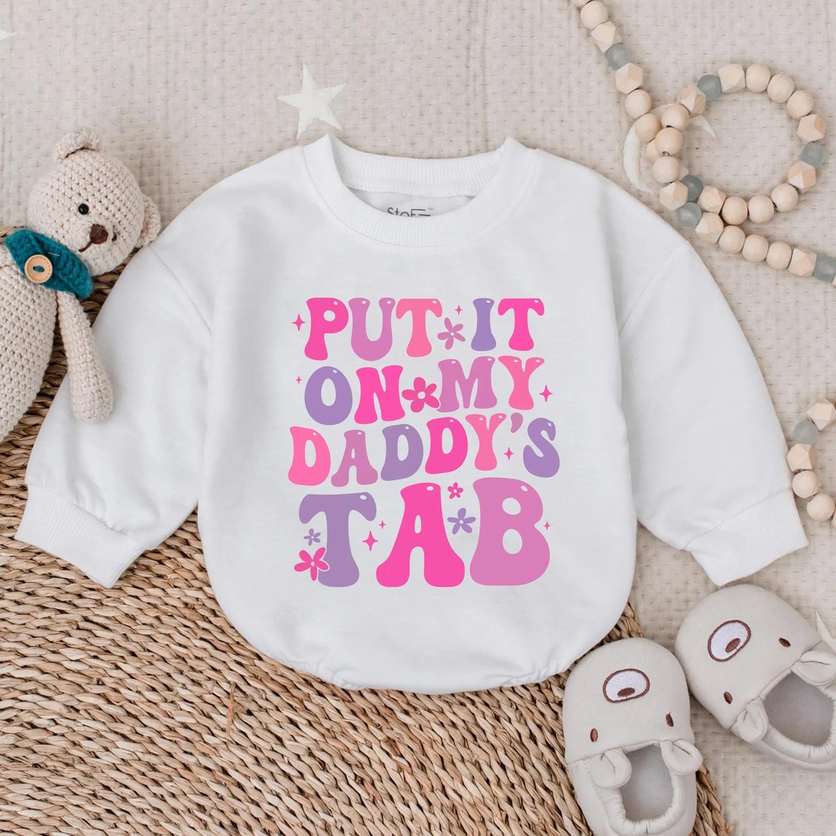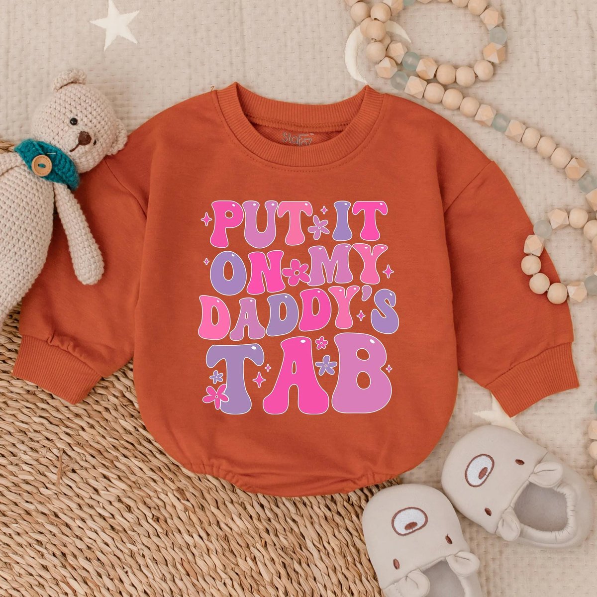 Put It On Daddys Tab Baby Romper Funny Fathers Day Outfit Newborn Gift for Dad Gift for New Dad Baby