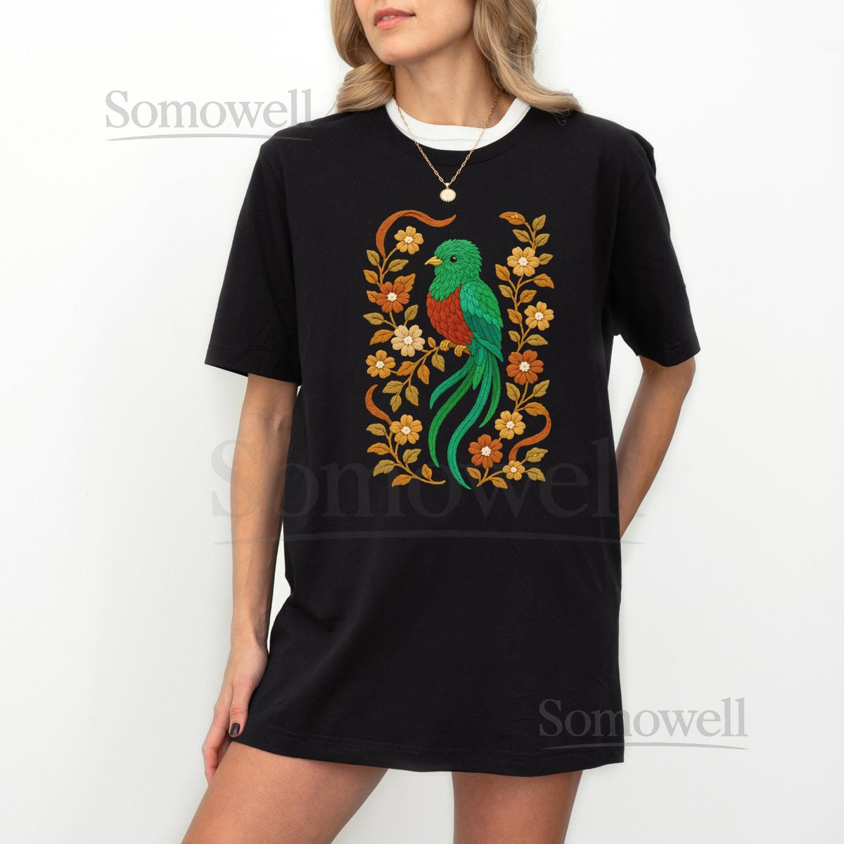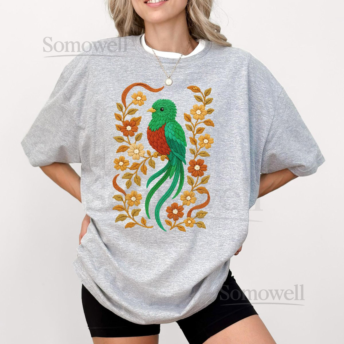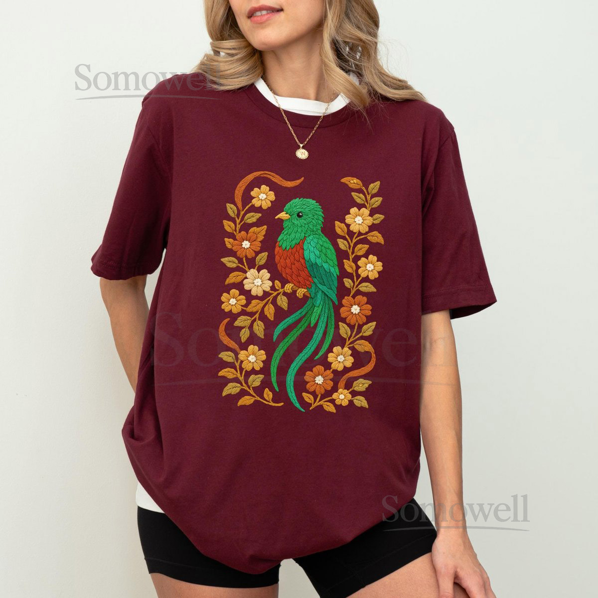 Quetzal Shirt Faux Embroidered Shirt Quetzal T-shirt Quetzal Lover Tee Floral Quetzal Gift Faux Crochet Quetzal Graphic Tee_155