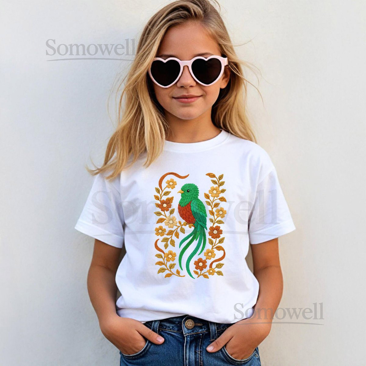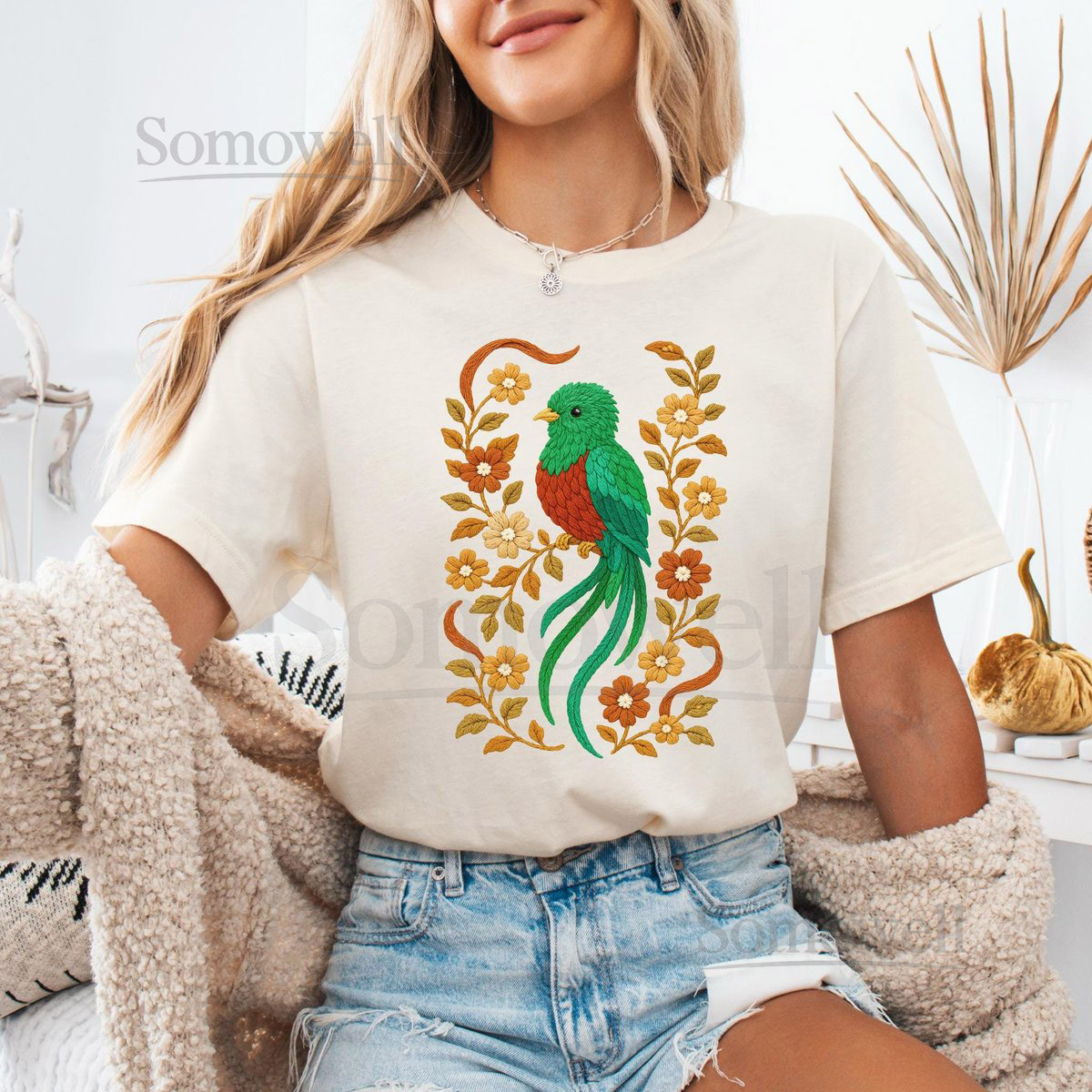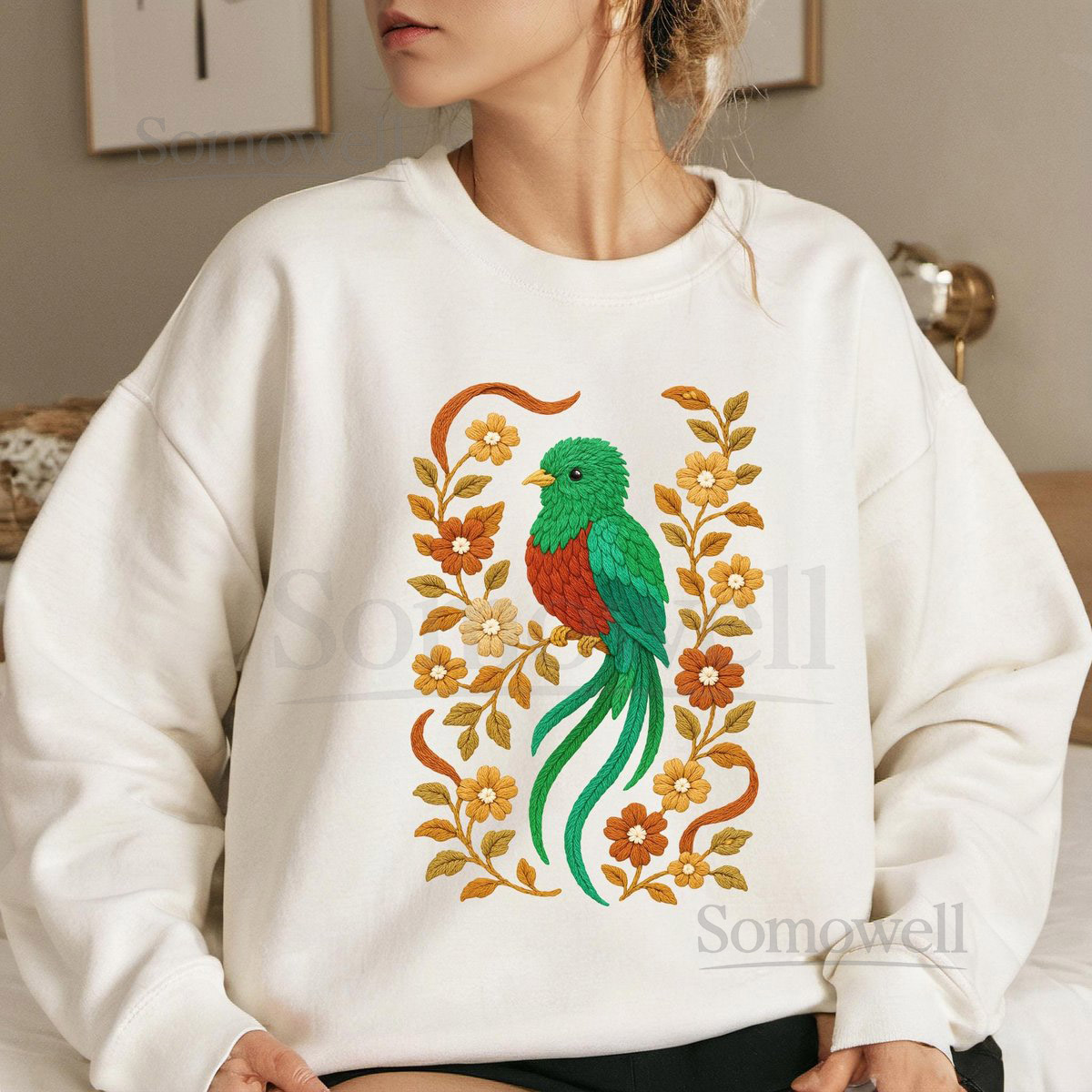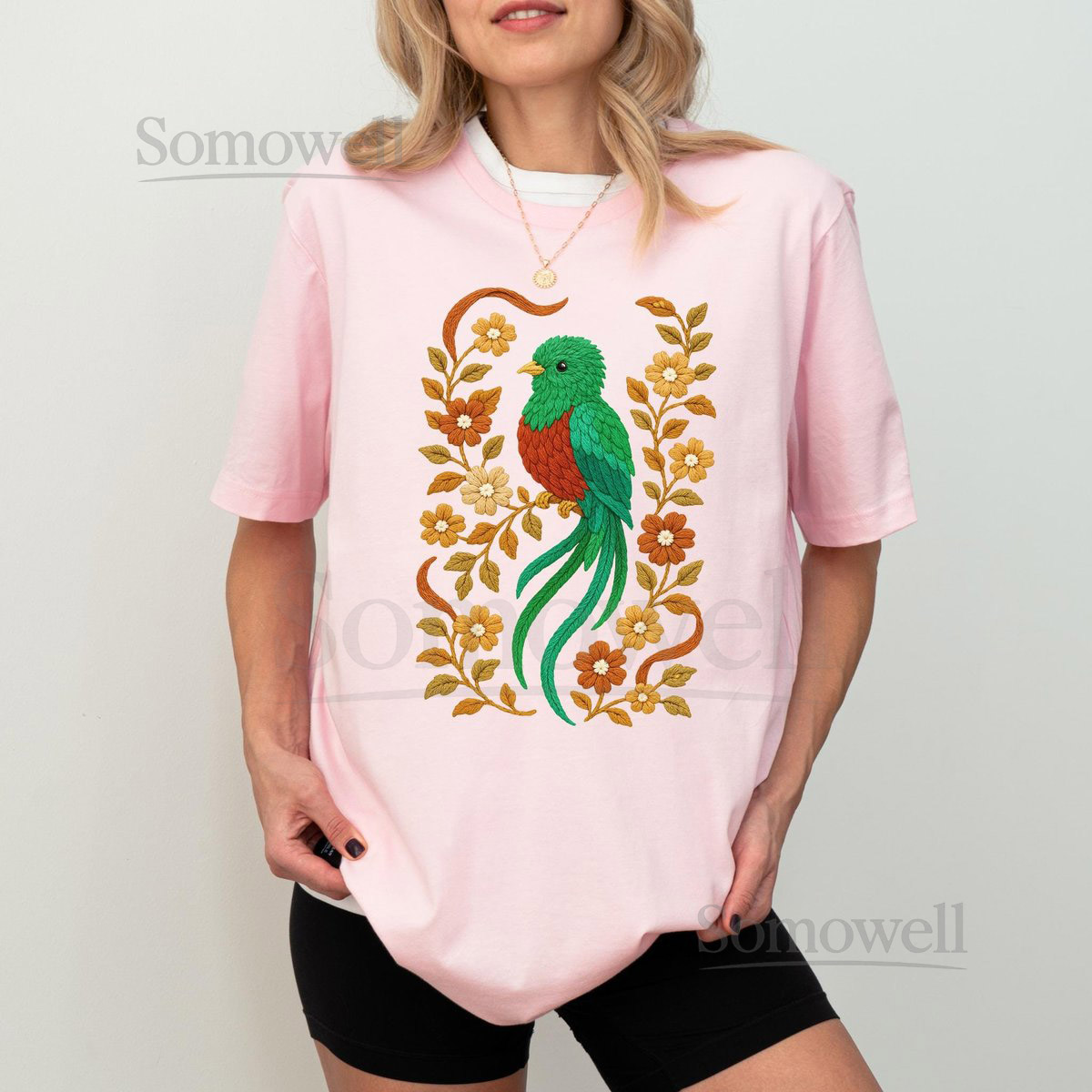 Quetzal Shirt Faux Embroidered Shirt Quetzal T-shirt Quetzal Lover Tee Floral Quetzal Gift Faux Crochet Quetzal Graphic Tee_155