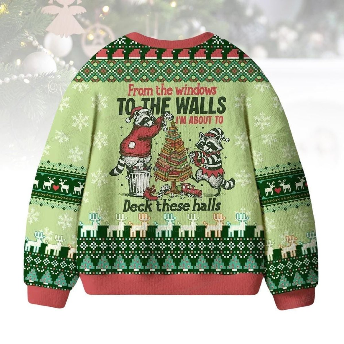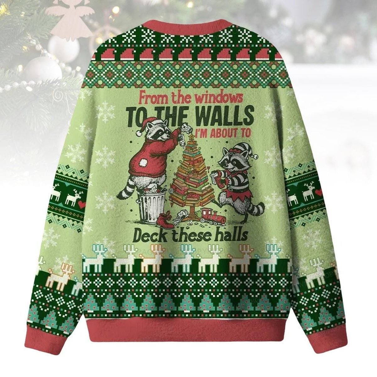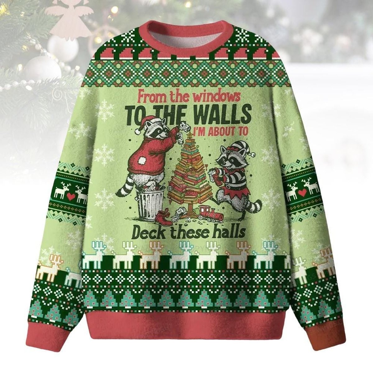 Raccoon Deck These Halls Ugly Christmas Sweater Funny Animal Holiday Pullover Gift for Book Lovers