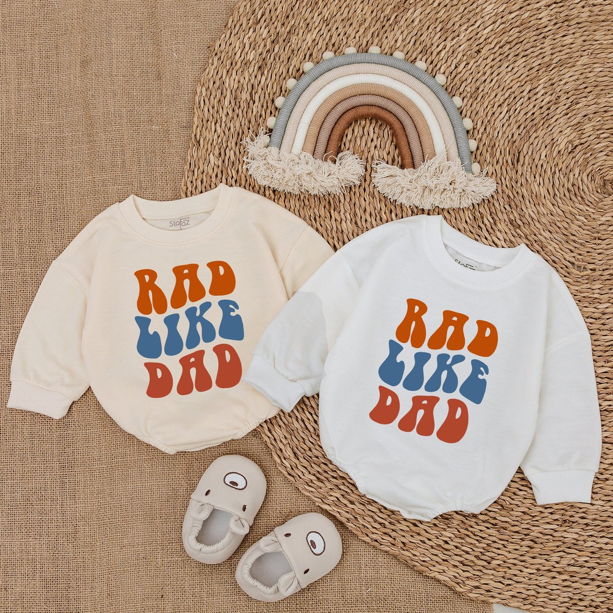Rad Like Dad Baby Romper Sweatshirt Bubble Romper Baby Boy Clothes Father’s Day Outfit Baby 169