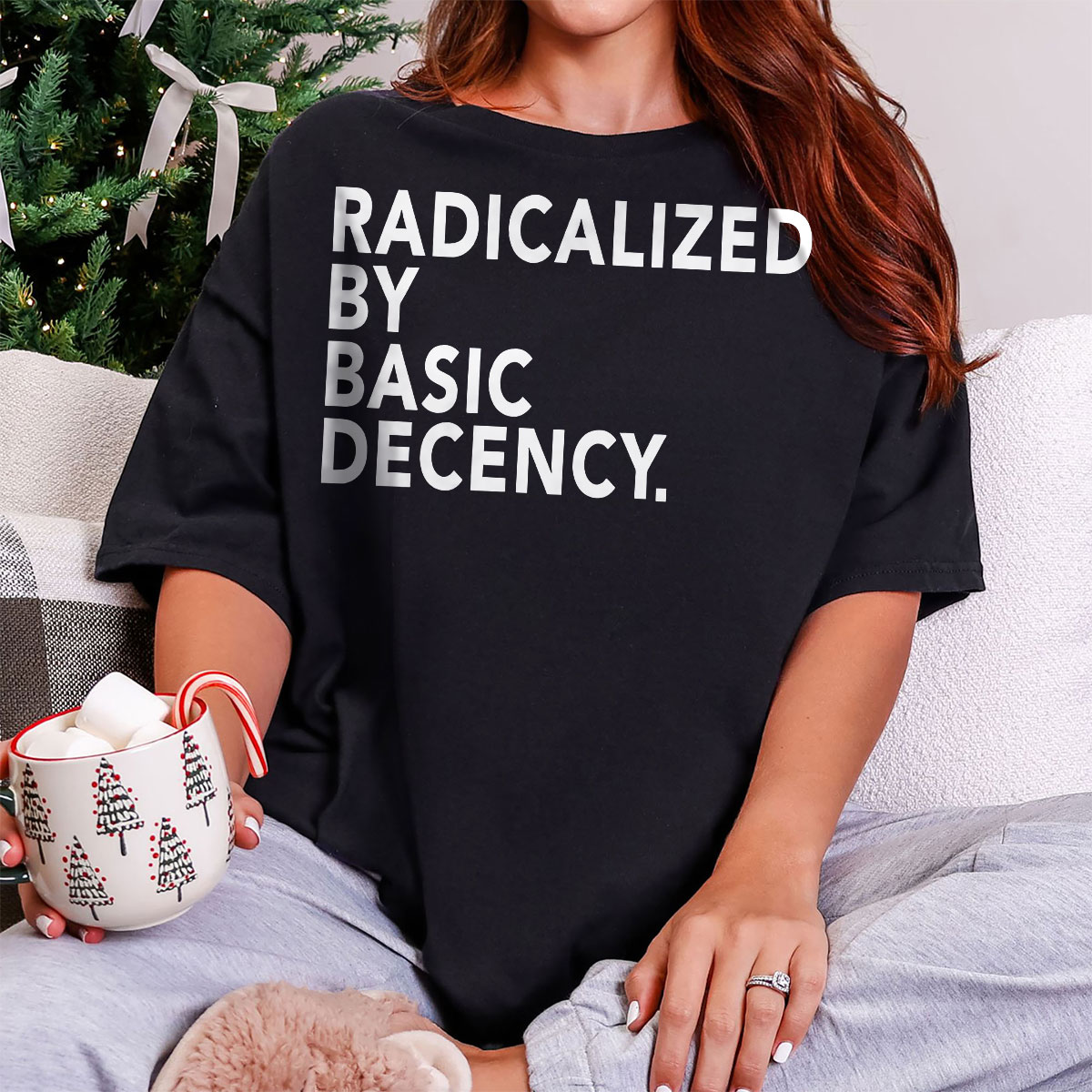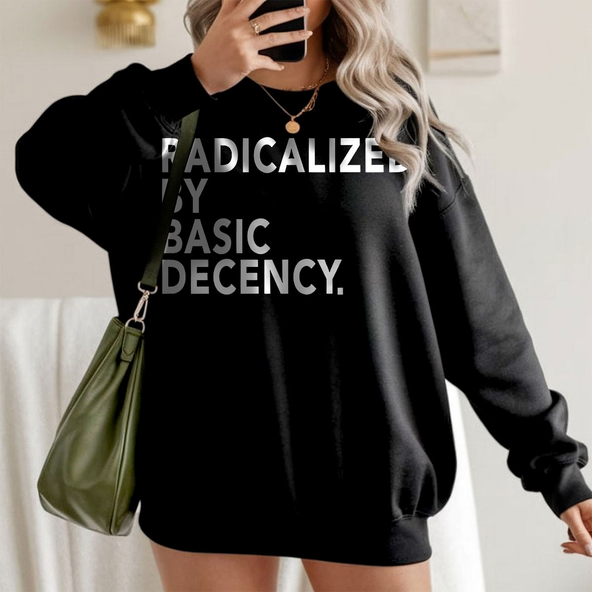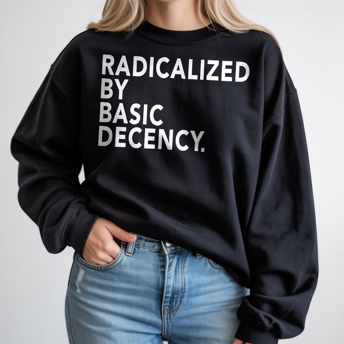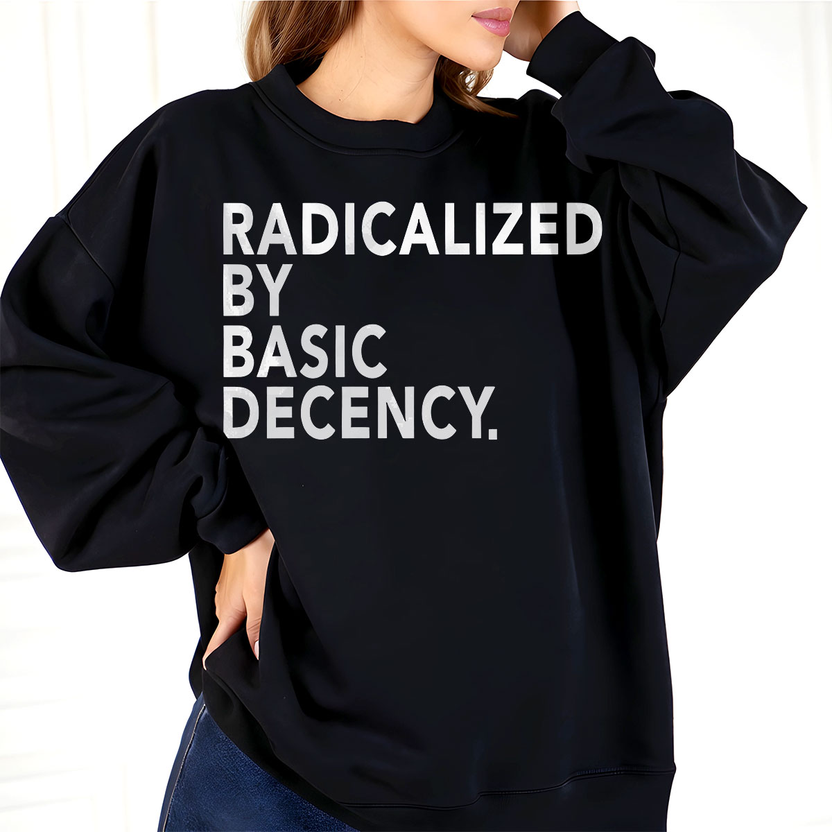 Radicalized by Basic Decency Graphic Sweatshirt, Empowerment Quote Pullover, Social Awareness Statement Tee, Unisex Activist Apparel, T-Shirt, Hoodie & Sweatshirt