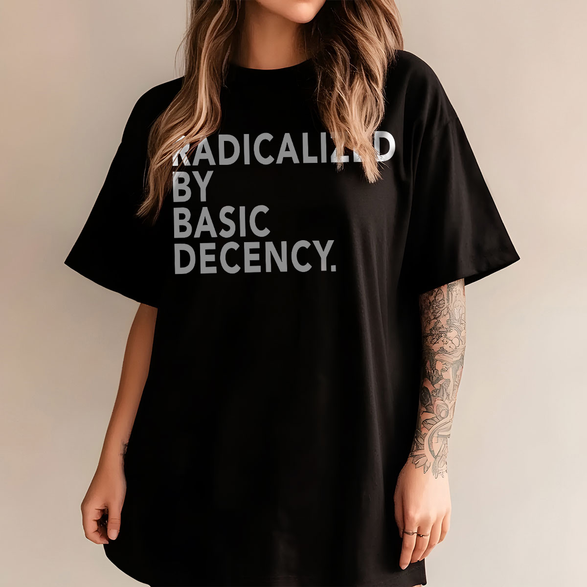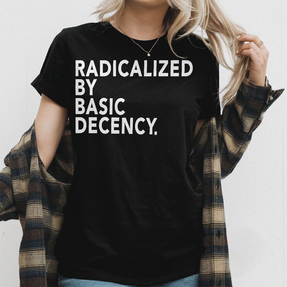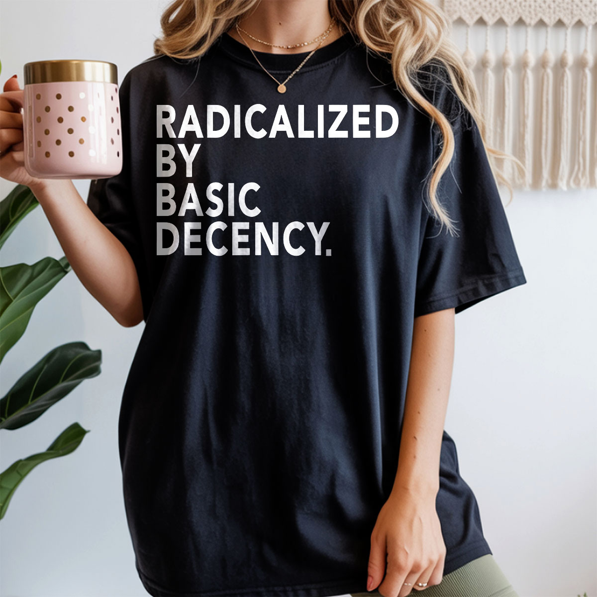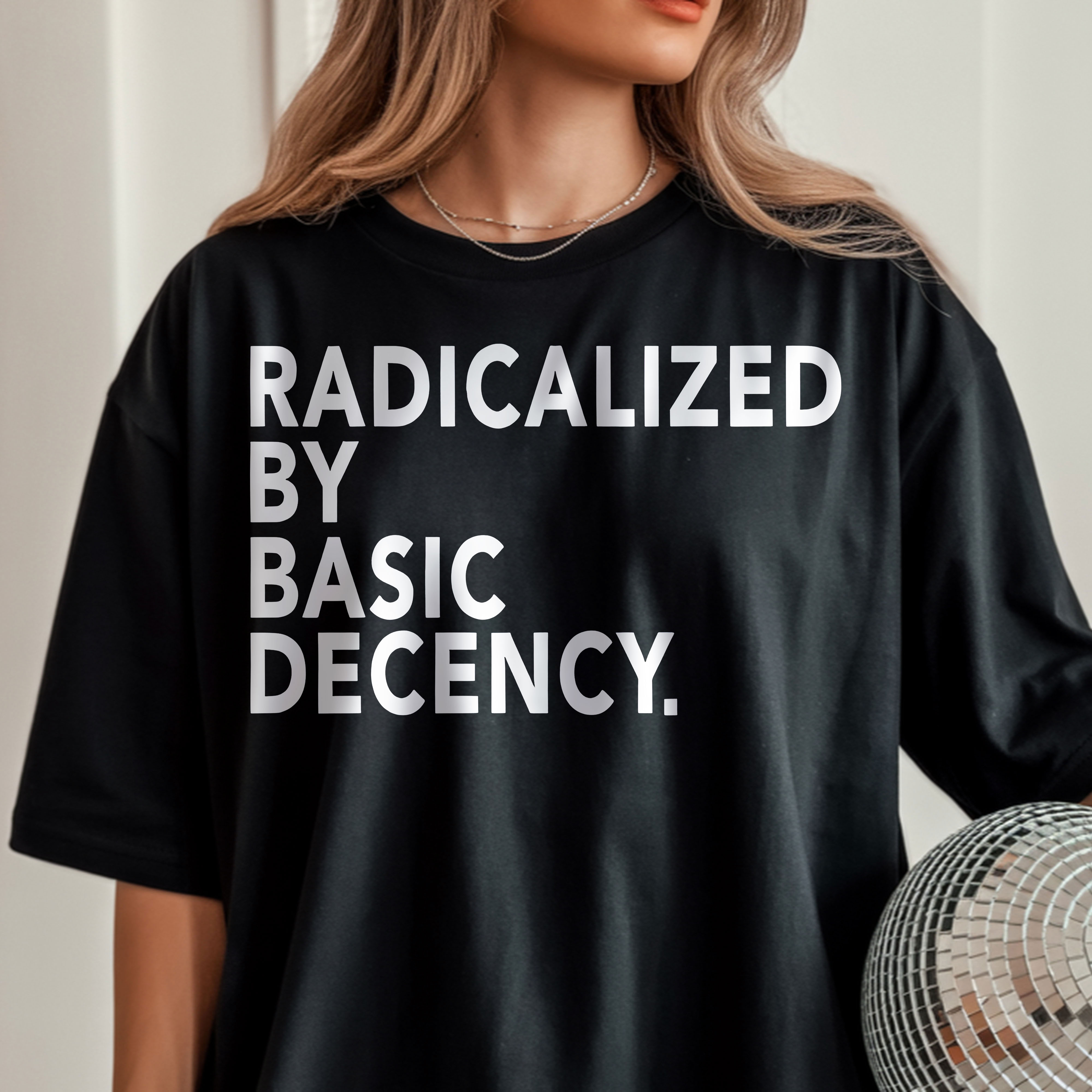 Radicalized by Basic Decency Graphic Sweatshirt, Empowerment Quote Pullover, Social Awareness Statement Tee, Unisex Activist Apparel, T-Shirt, Hoodie & Sweatshirt