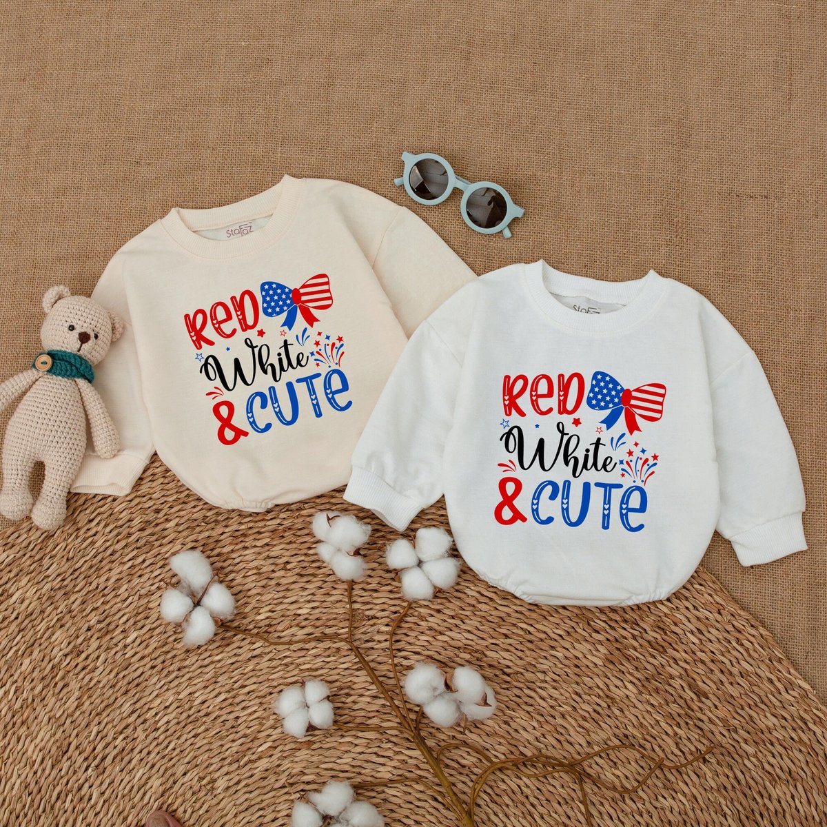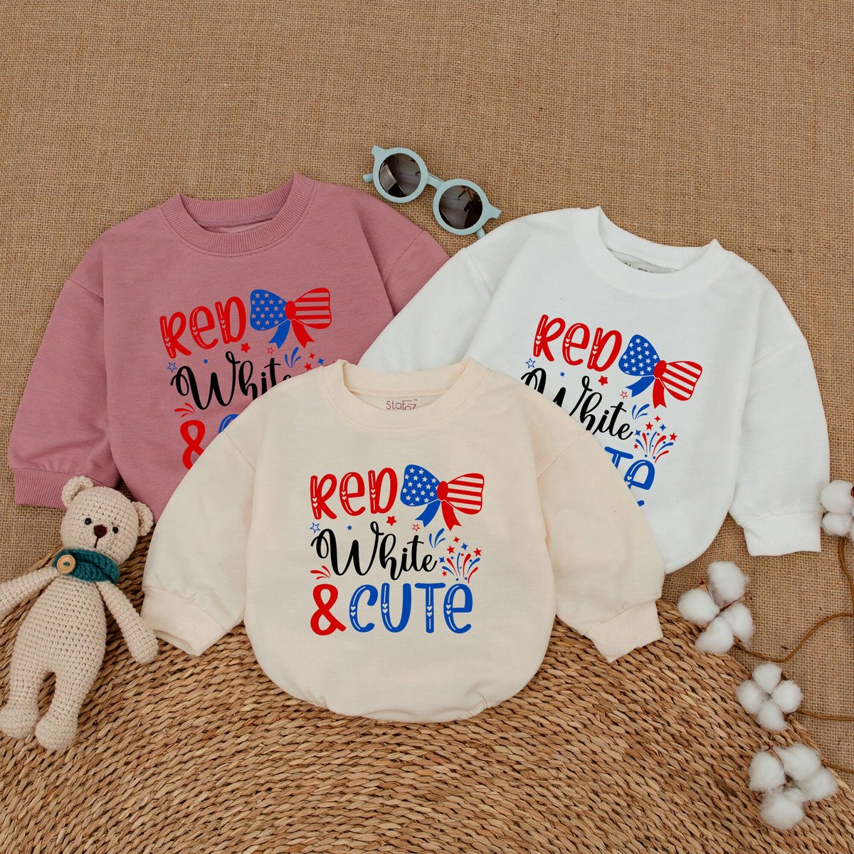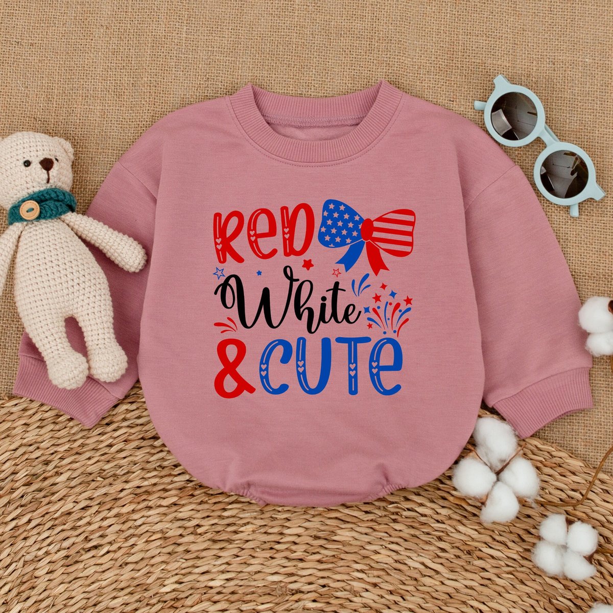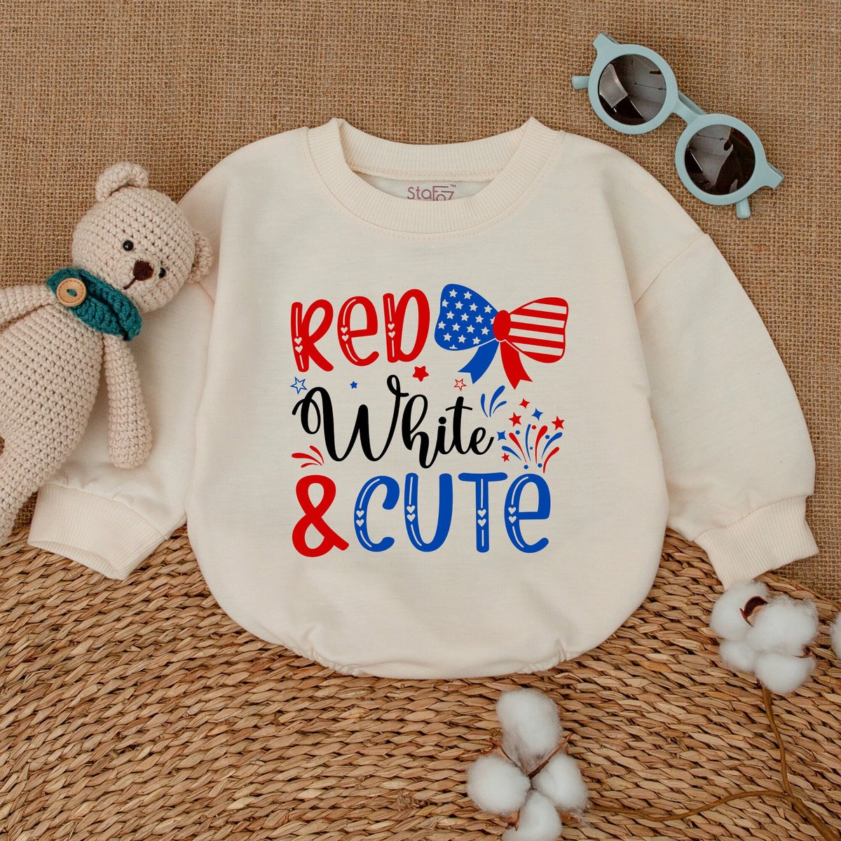 Red White and Cute Baby Romper American Bow Baby Bodysuit 4th of July Clothes Patriotic Independence 171
