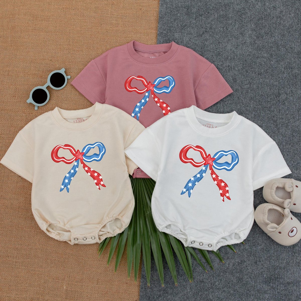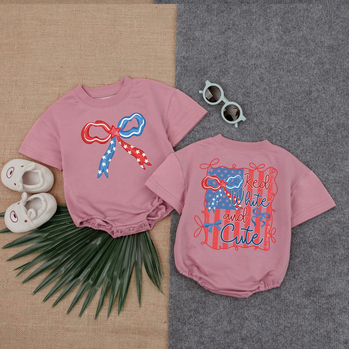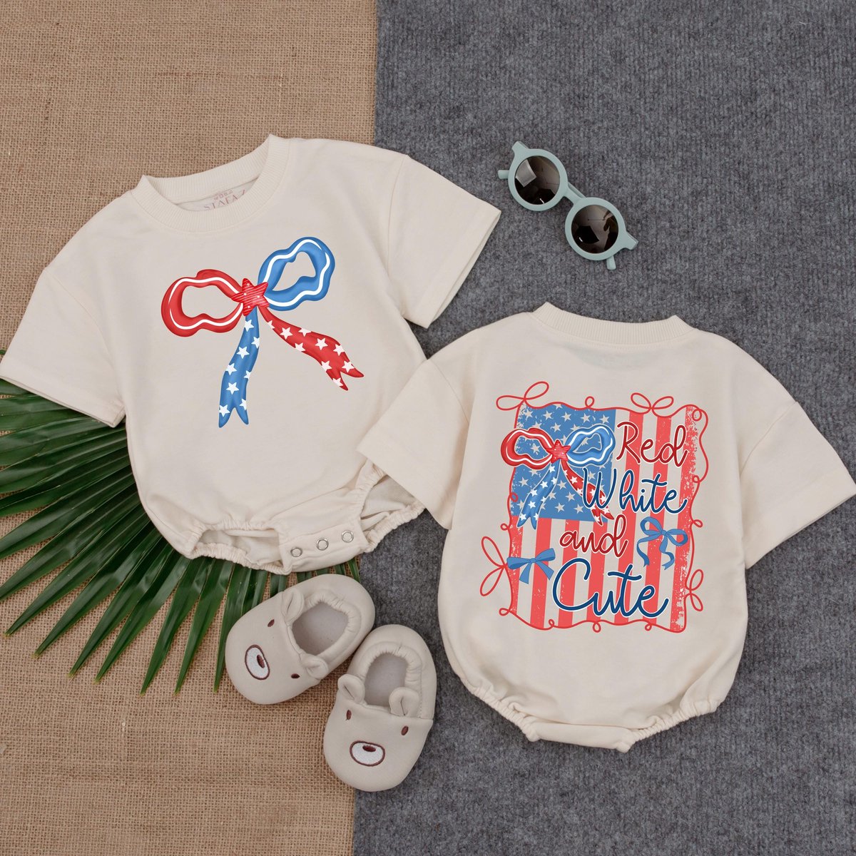 Red White and Cute Bubble Romper Baby Outfit 1st Birthday Memorial Day Trendy Red White Blue Baby Sh 431