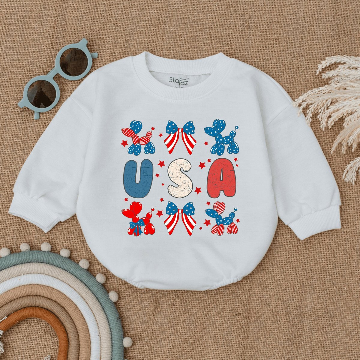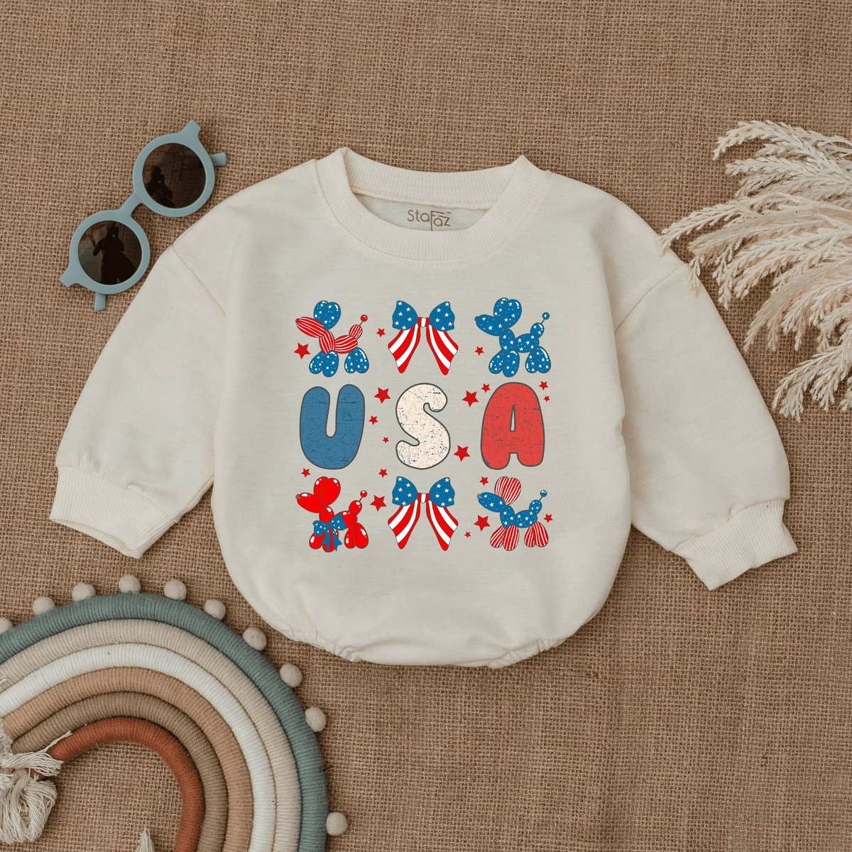 Retro 4TH OF JULY Bubble Romper Retro Patriotic Bodysuit Cute Fourth of July Baby Baby Clothing USA 173
