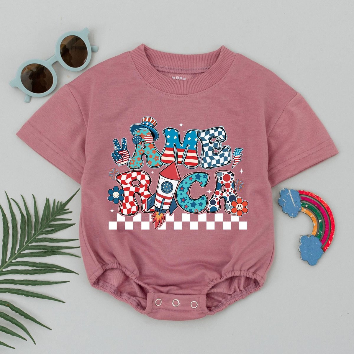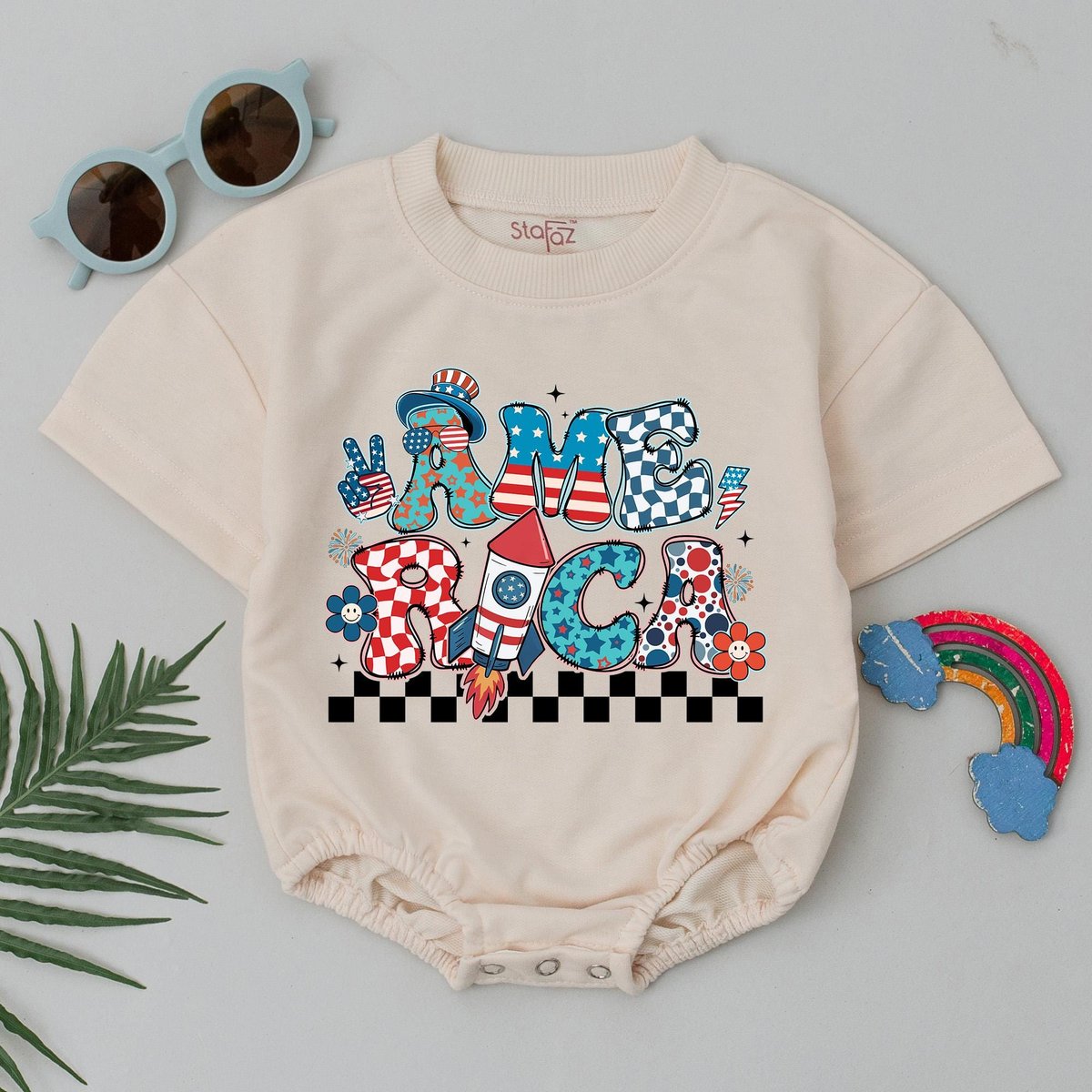 Retro America Baby Romper 4th of July Patriotic Infant Bodysuit Red White Blue Boy Girl Outfit Indep