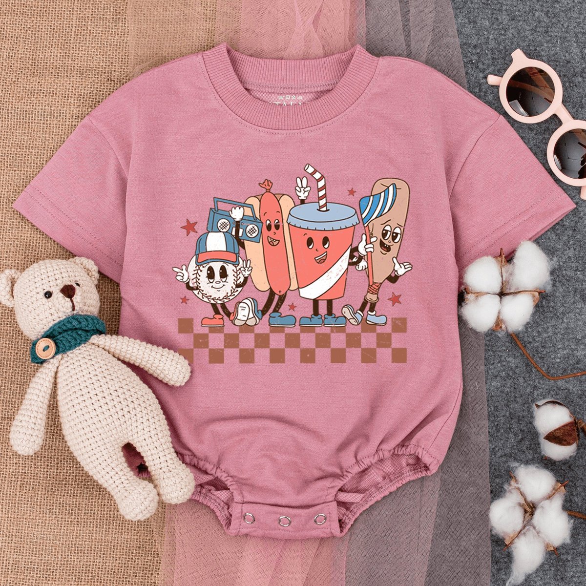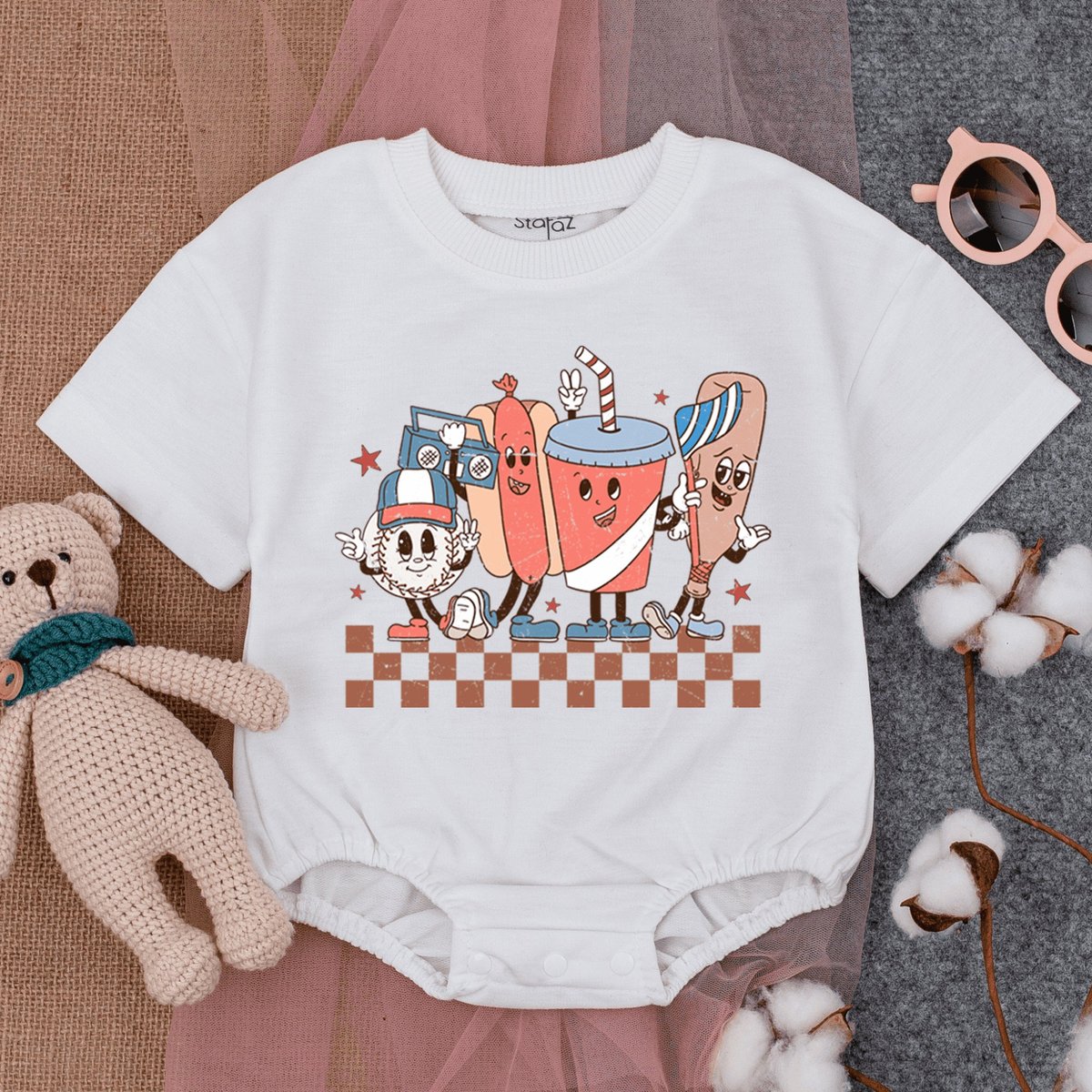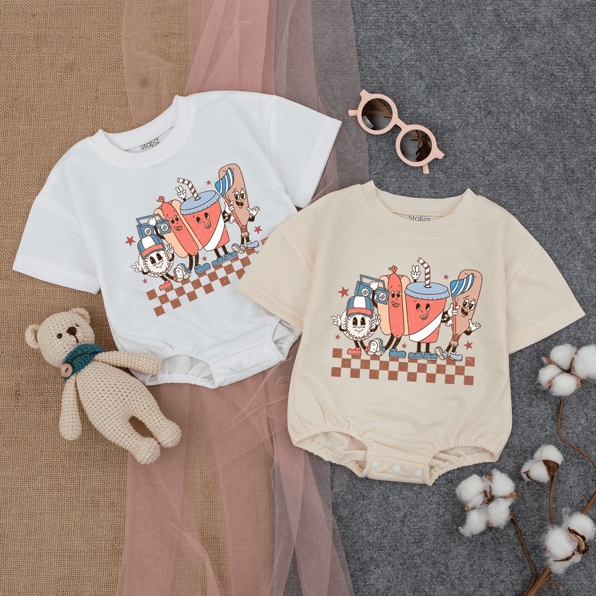 Retro Baseball Game Romper Short Sleeve Groovy Baseball Baseball Game Day Gameday Outfit Bubble Ro 169