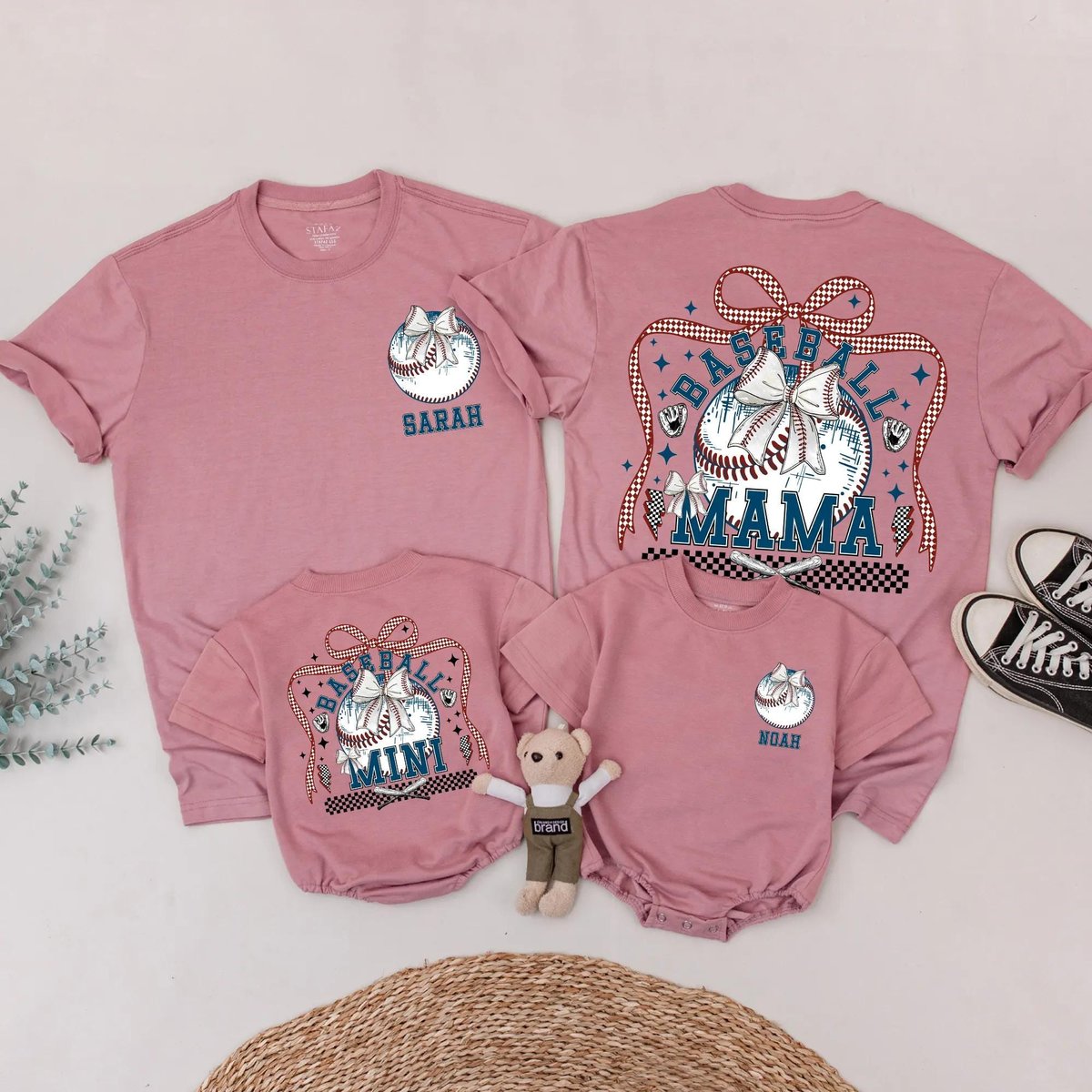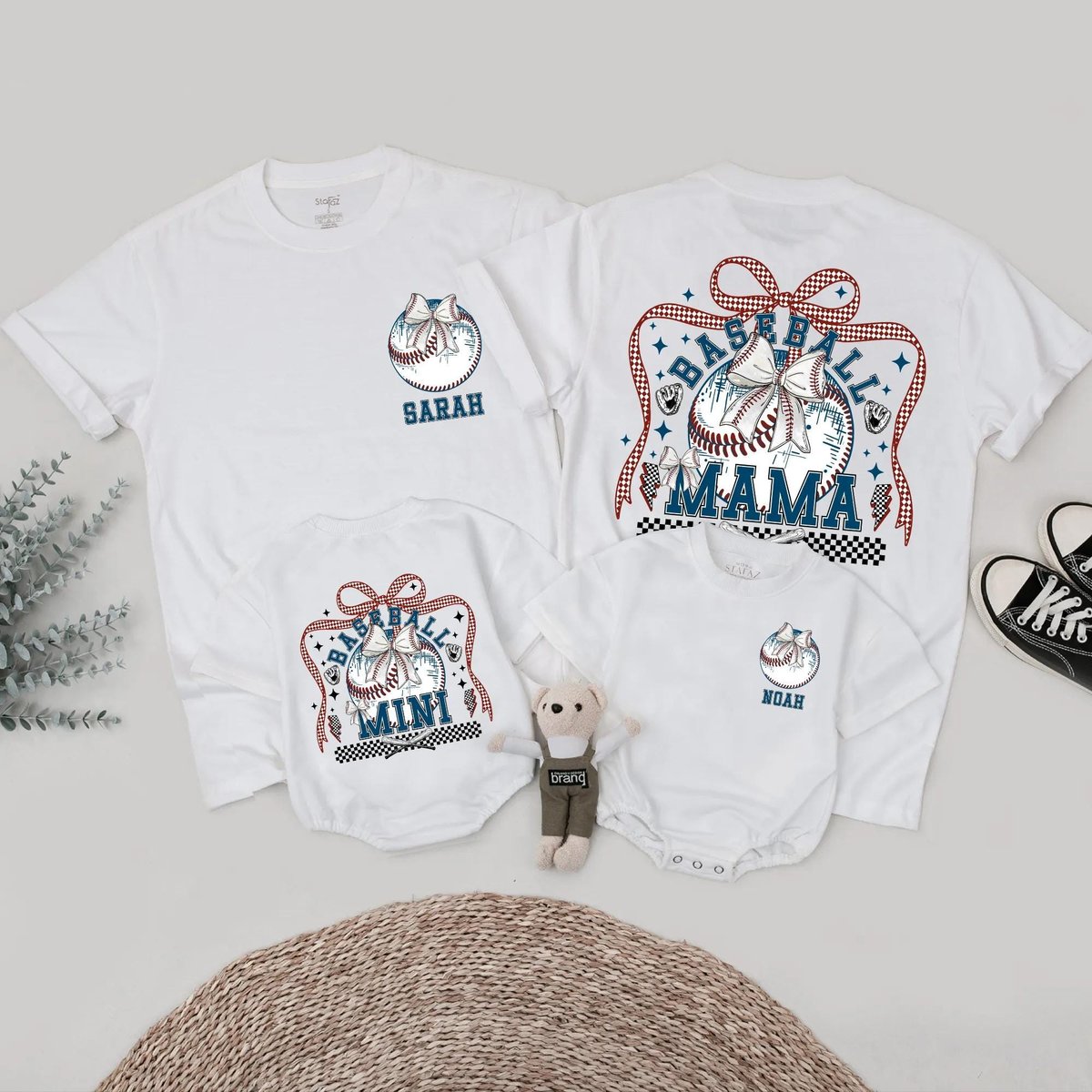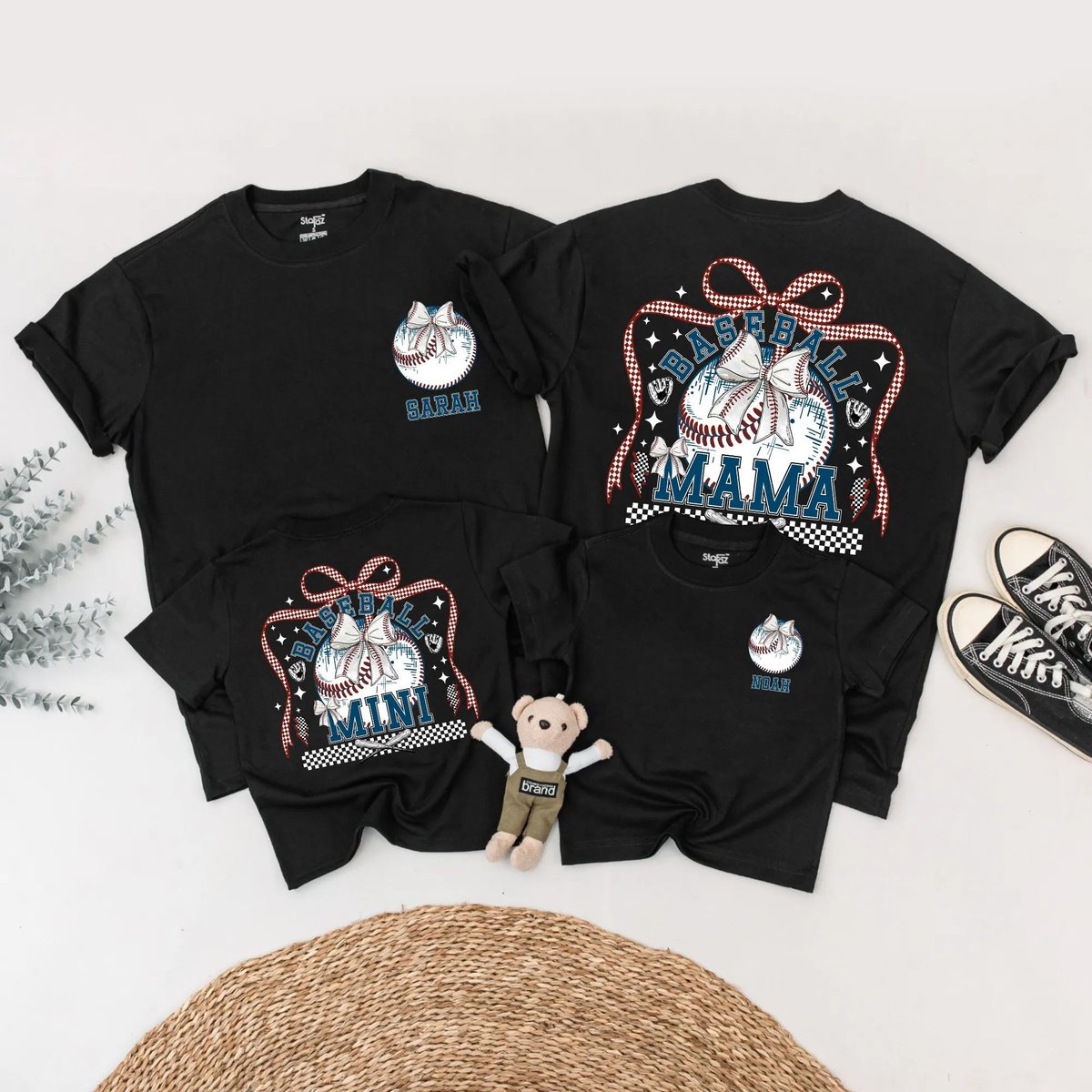 Retro Baseball Mama And Mini Shirt Trendy Baseball Bow Shirt Matching Family Baseball Shirt Custom B 430
