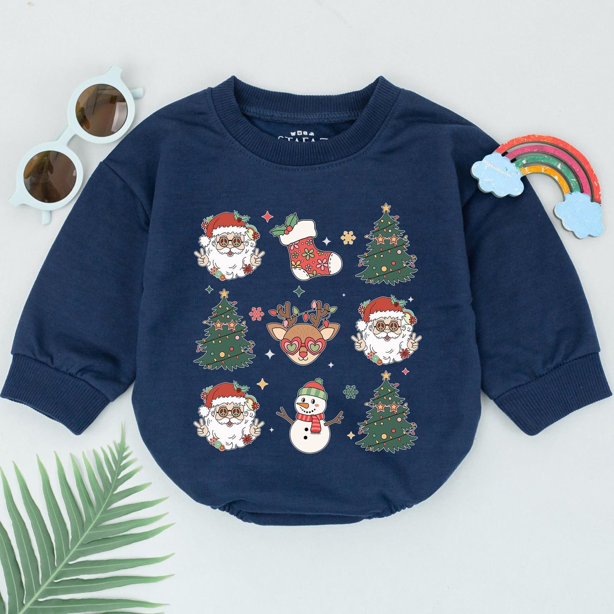 Retro Christmas Bubble Romper Christmas Santa Outfit 1st Christmas Baby Romper Baby Shower Gift Newb