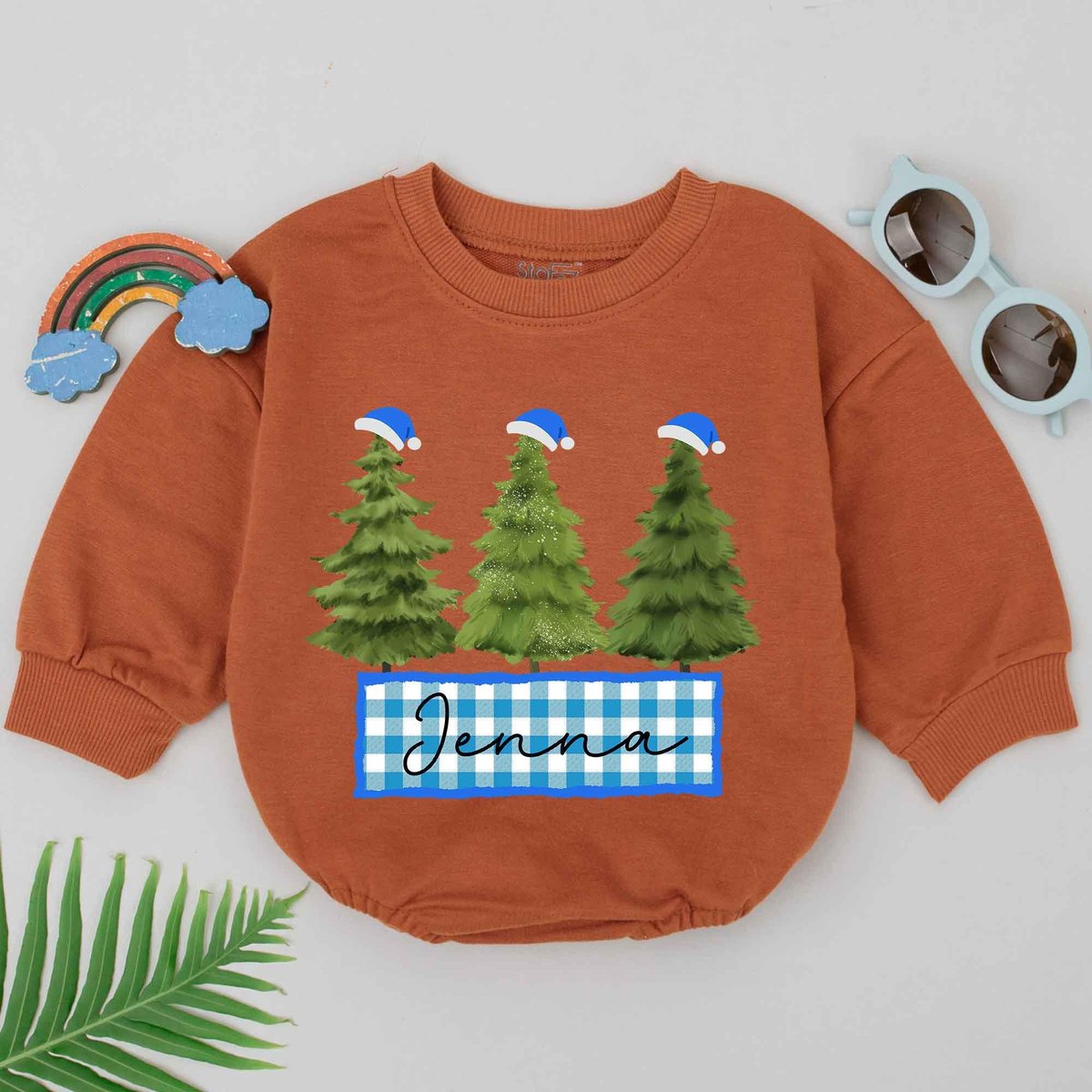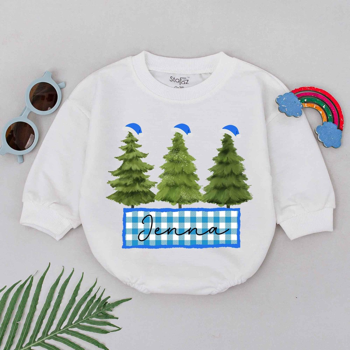 Retro Christmas Tree Romper 1st Christmas Baby Bubble Romper Christmas Clothes Baby Shower Natural N