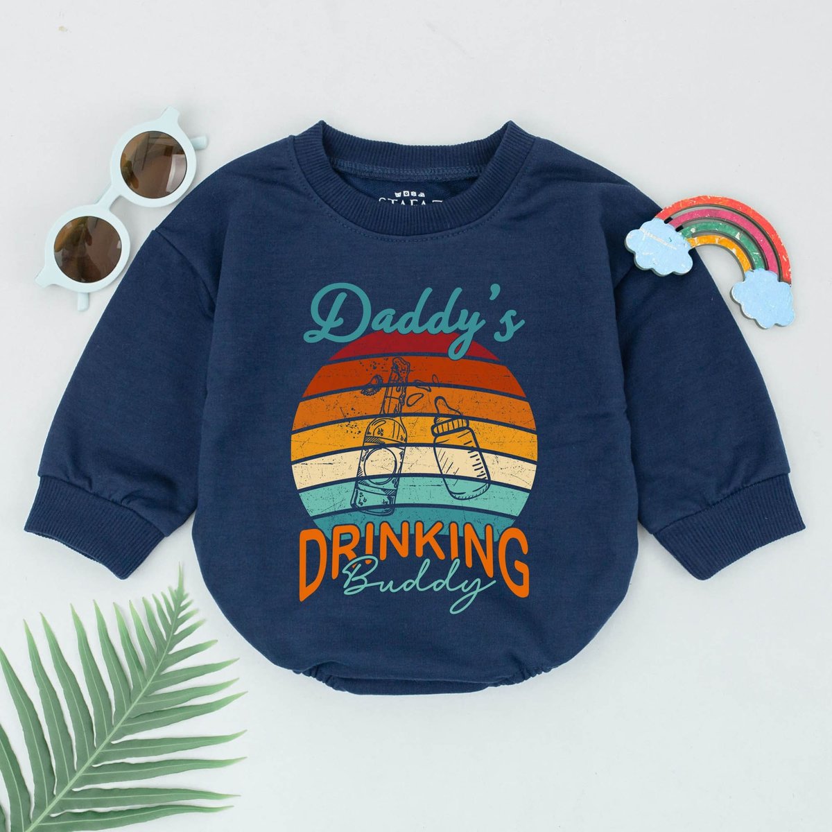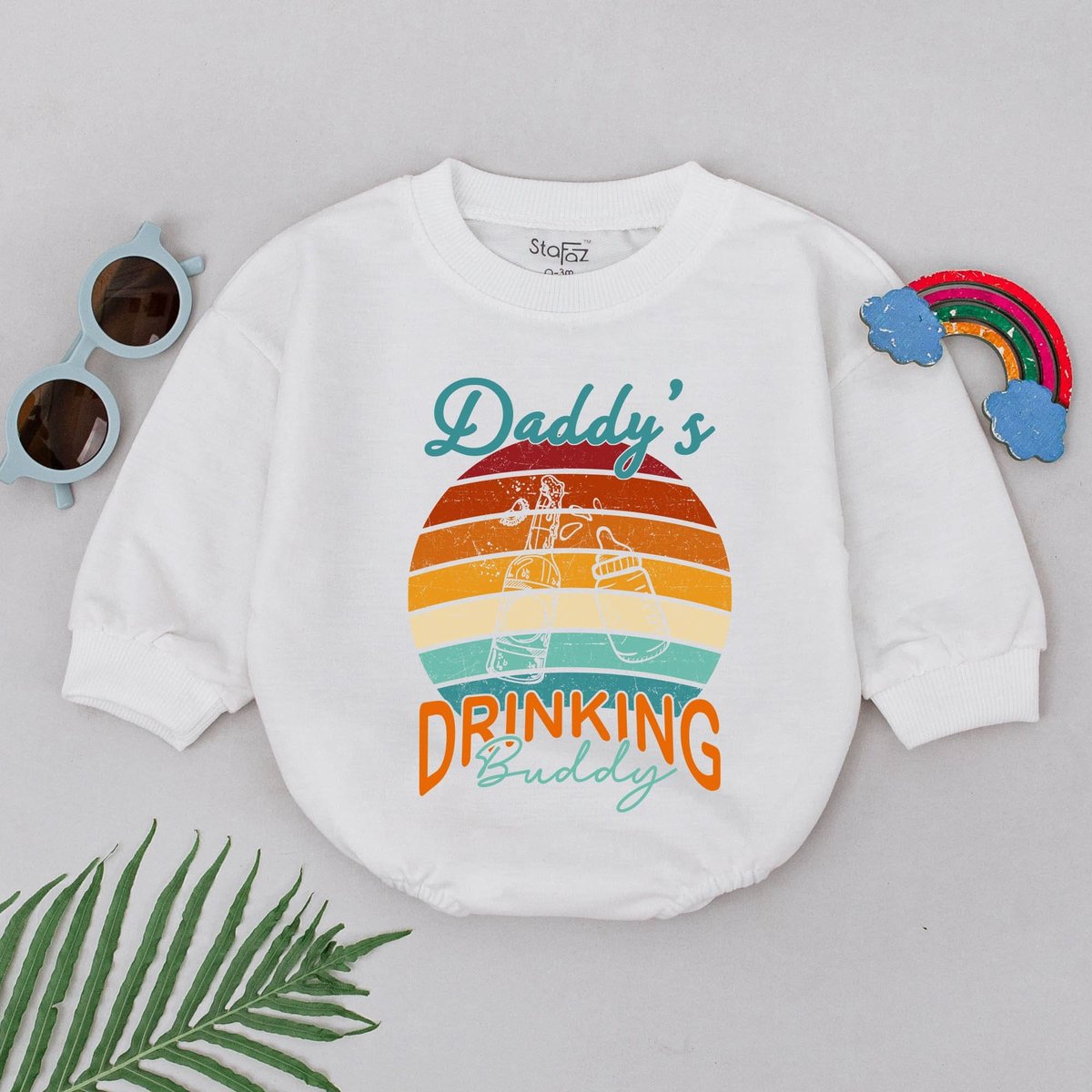 Retro Daddy’s Drinking Buddy Romper Vintage Drinking Buddy Bodysuit 1st Father’s Day Outfit Baby B