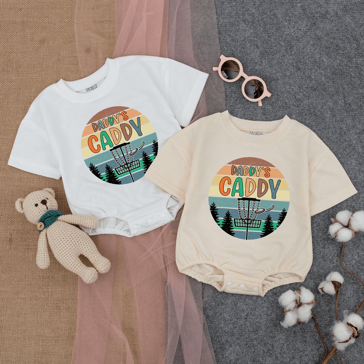 Retro Disc Golf Daddy’s Caddy Baby Romper Gameday Outfit Newborn Outfit Frisbee Par Bodysuit Baby b 170