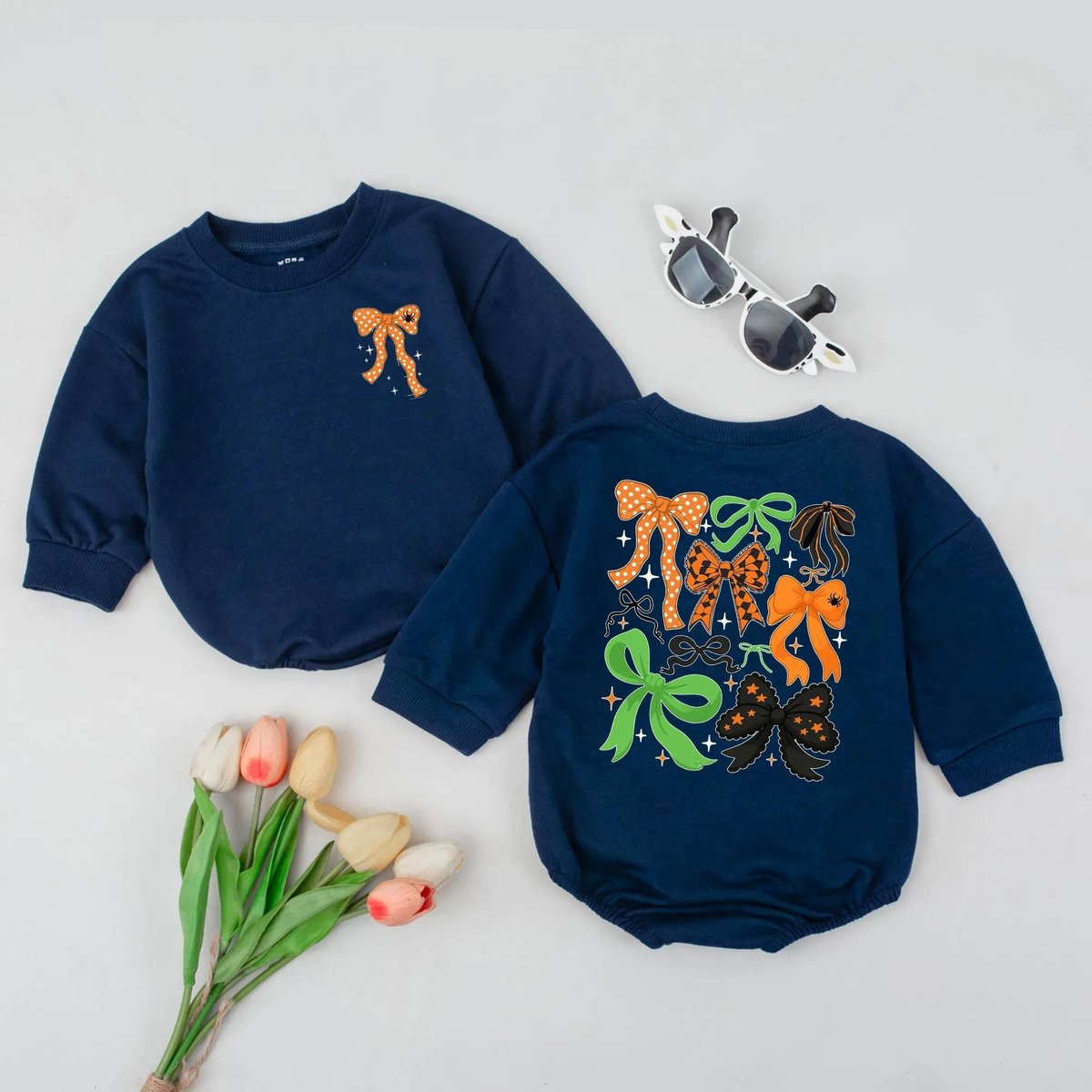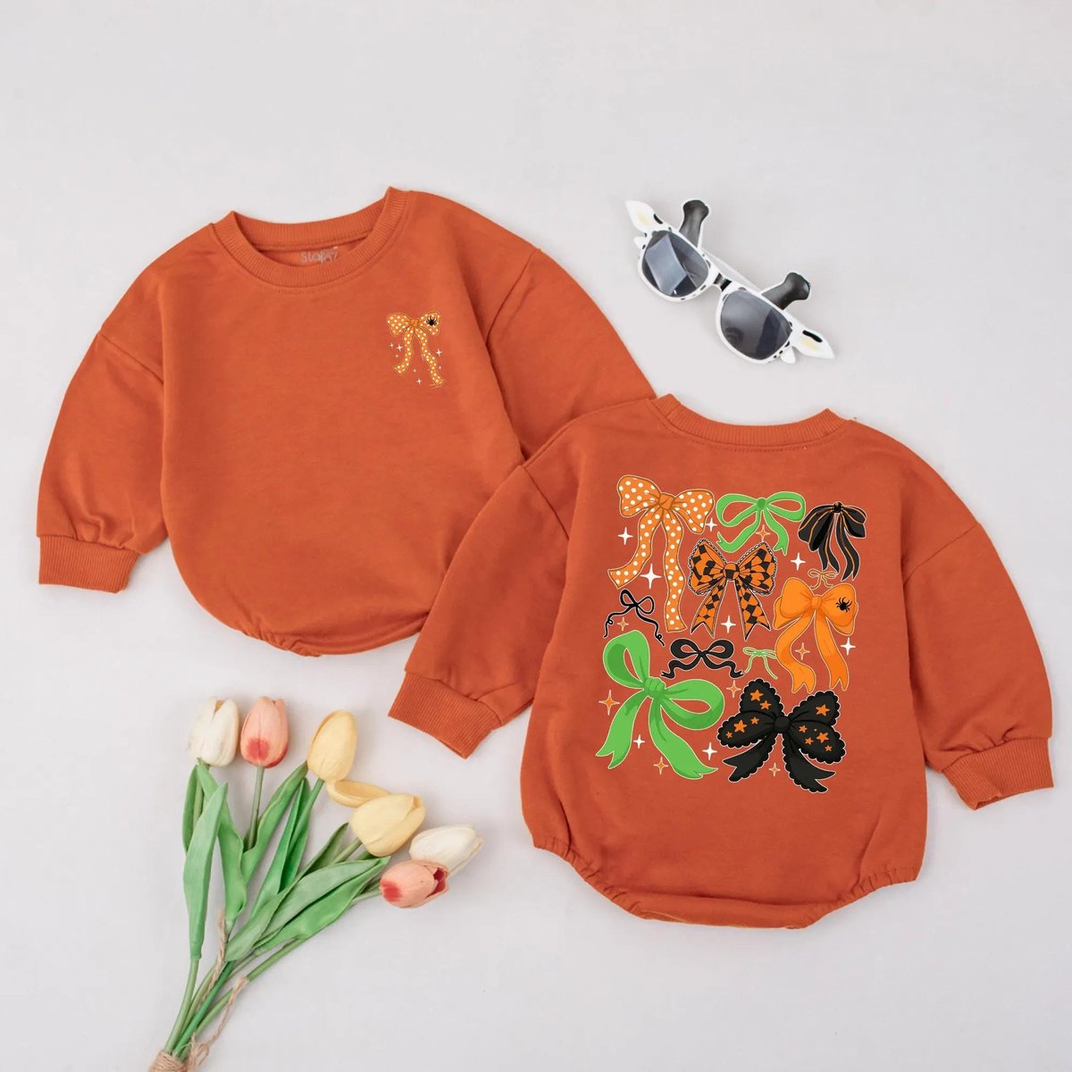 Retro Halloween Bow Bubble Romper Spooky Season Baby Outfit with Bows Cute Halloween Baby Clothes fo 434