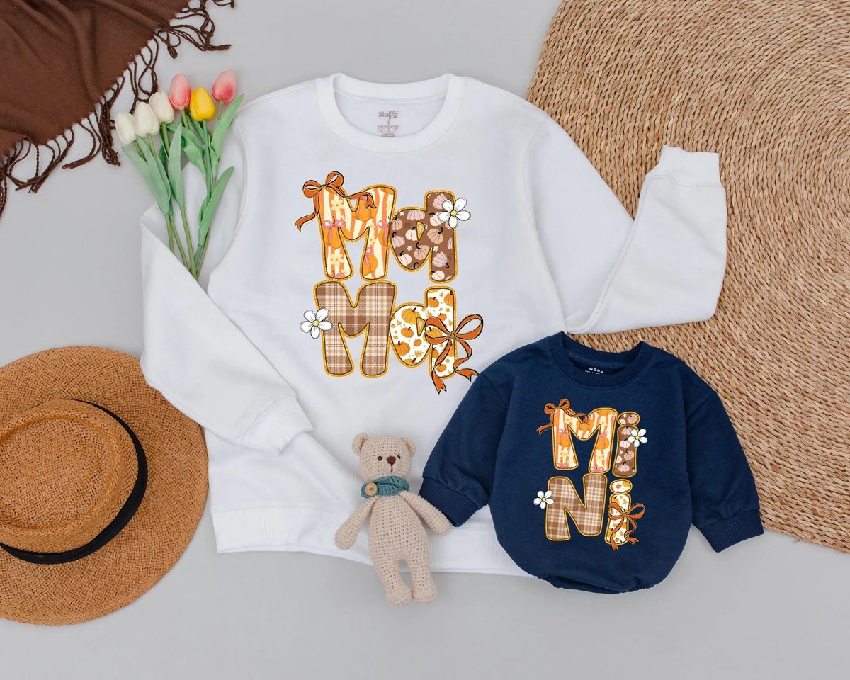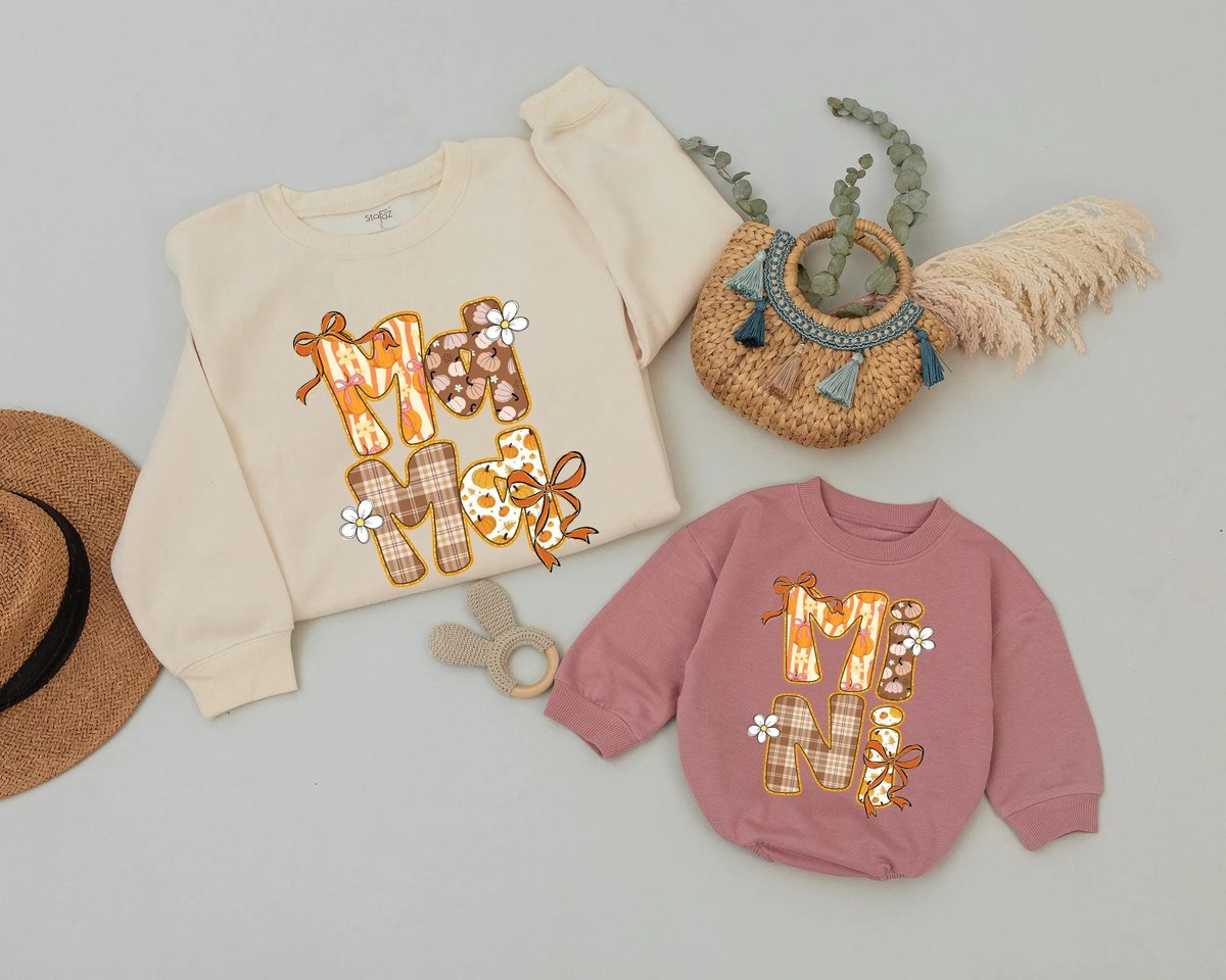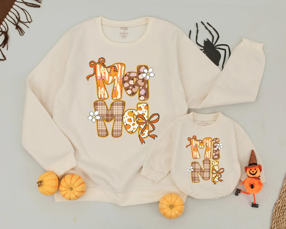Retro Halloween Bow Mama and Mini Sweatshirt Cute Pumpkin Patch Family Sweater Mom and Baby Outfit M 434