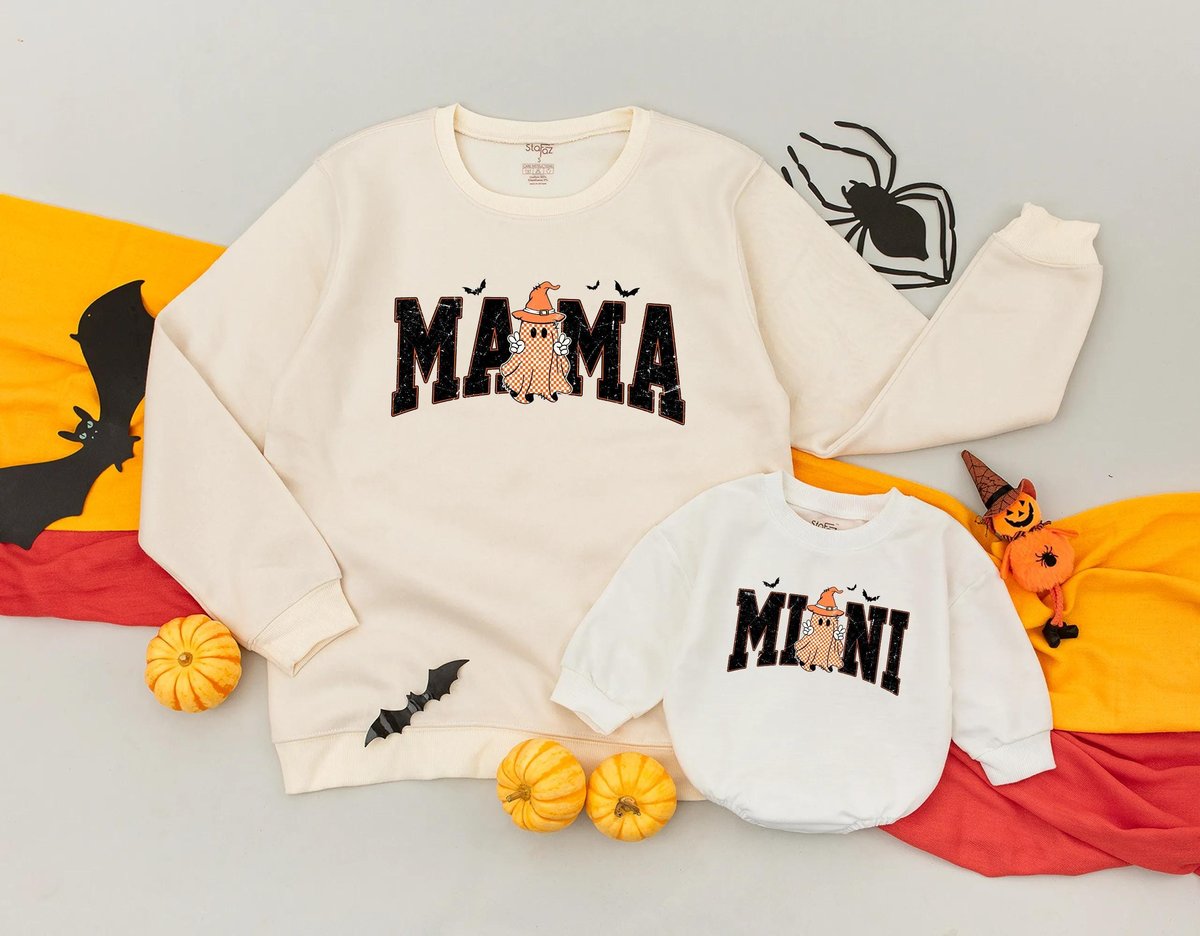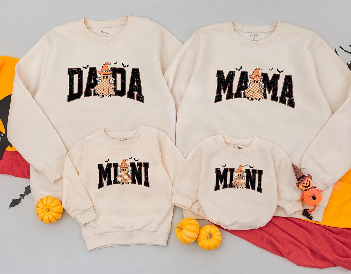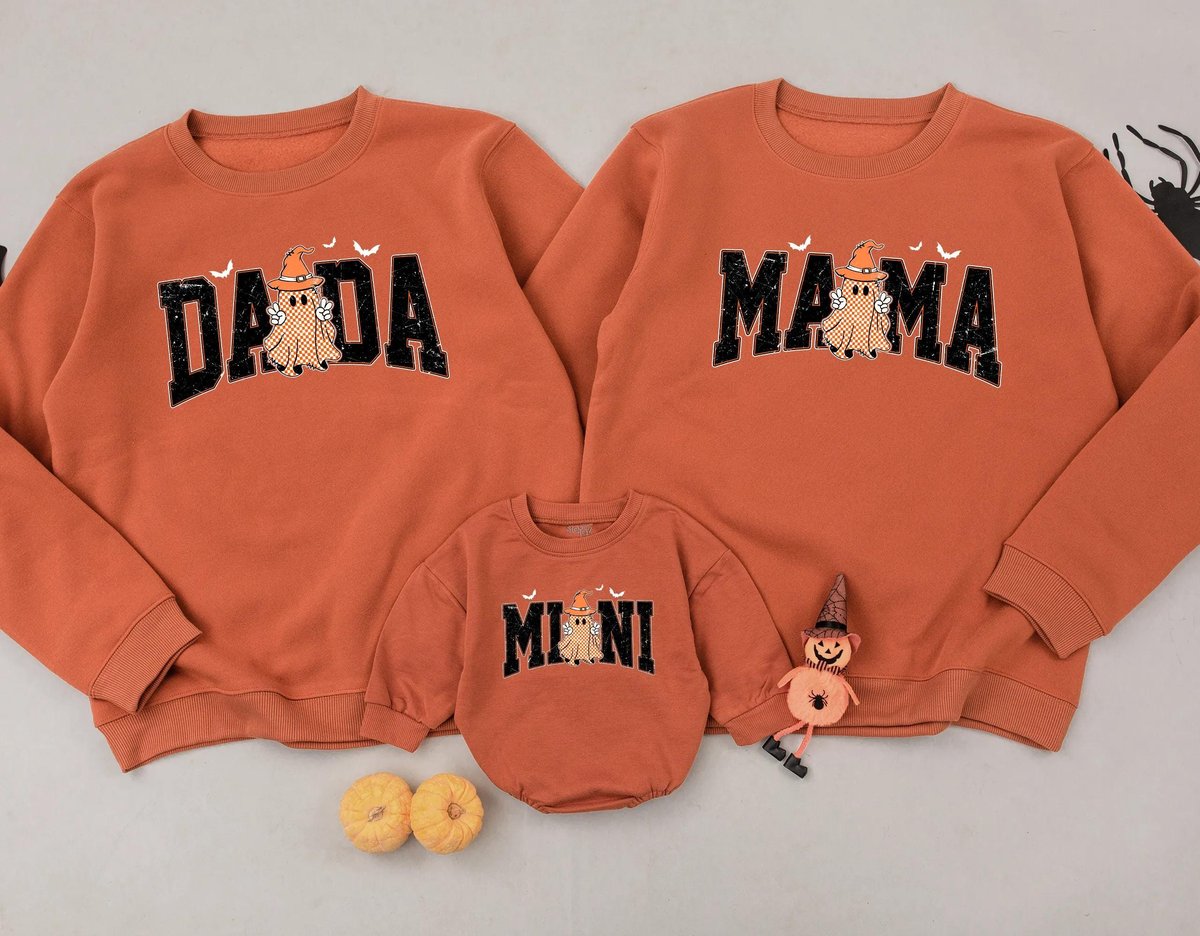 Retro Halloween Family Matching Sweatshirt Ghost Sweaters Mommy and Me Shirt My 1st Halloween Family 434